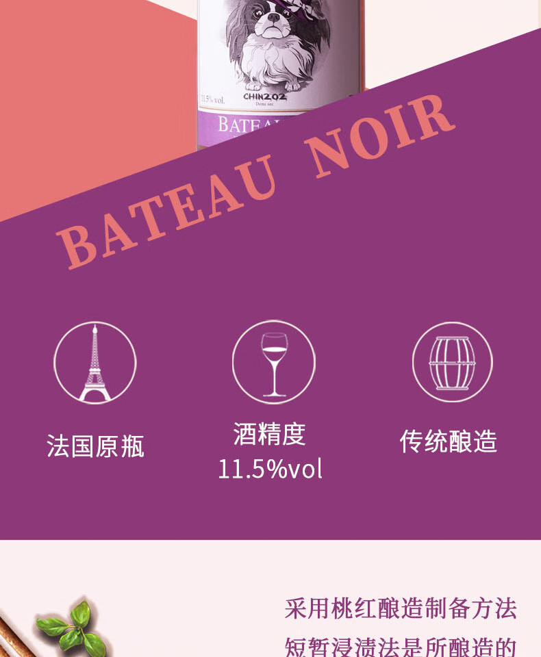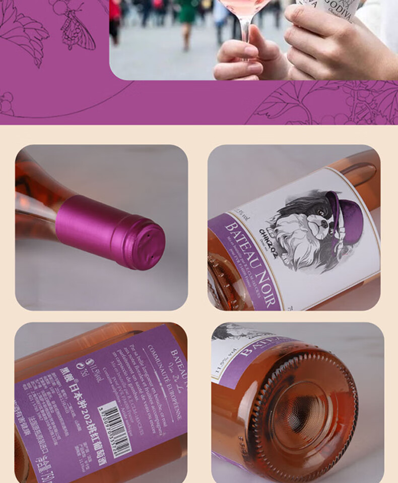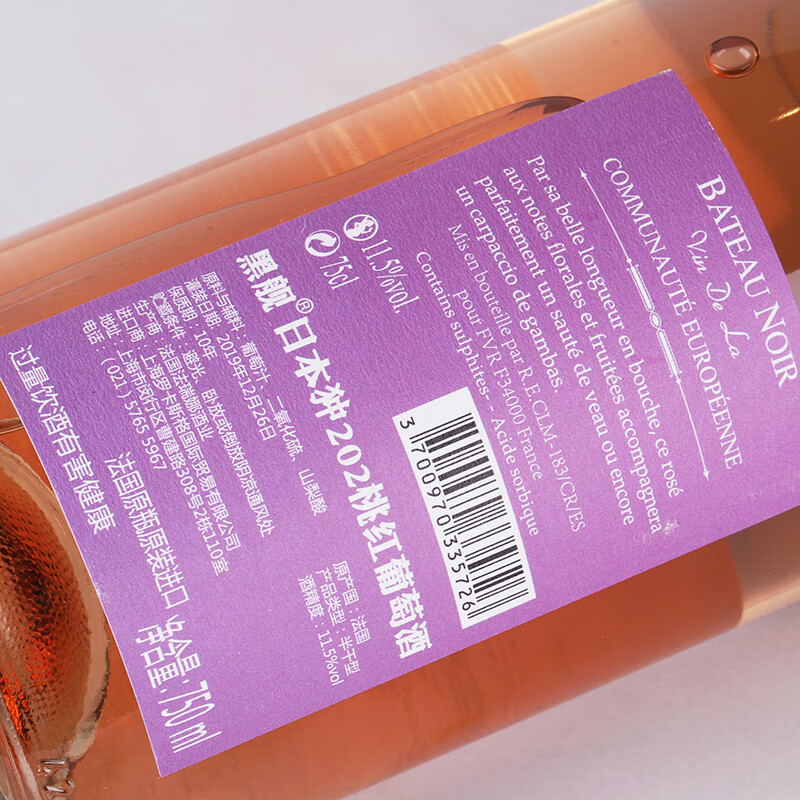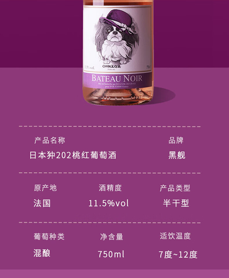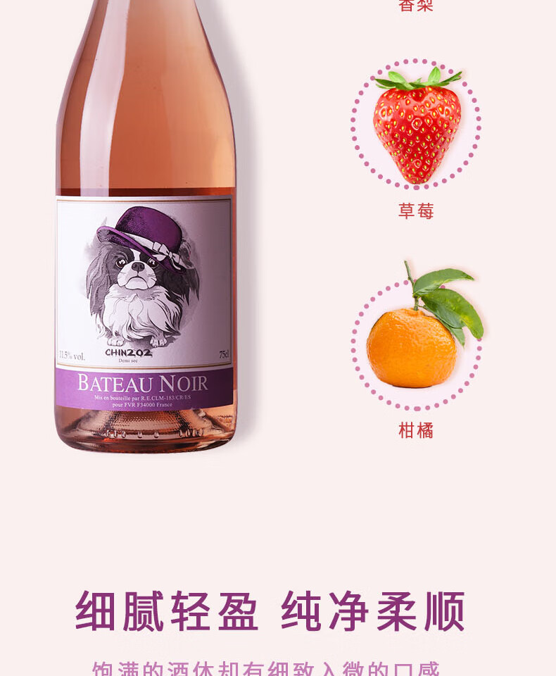 黑舰法国朗格多克原瓶进口202日本狆女士半干型桃红葡萄酒11.5度750ml