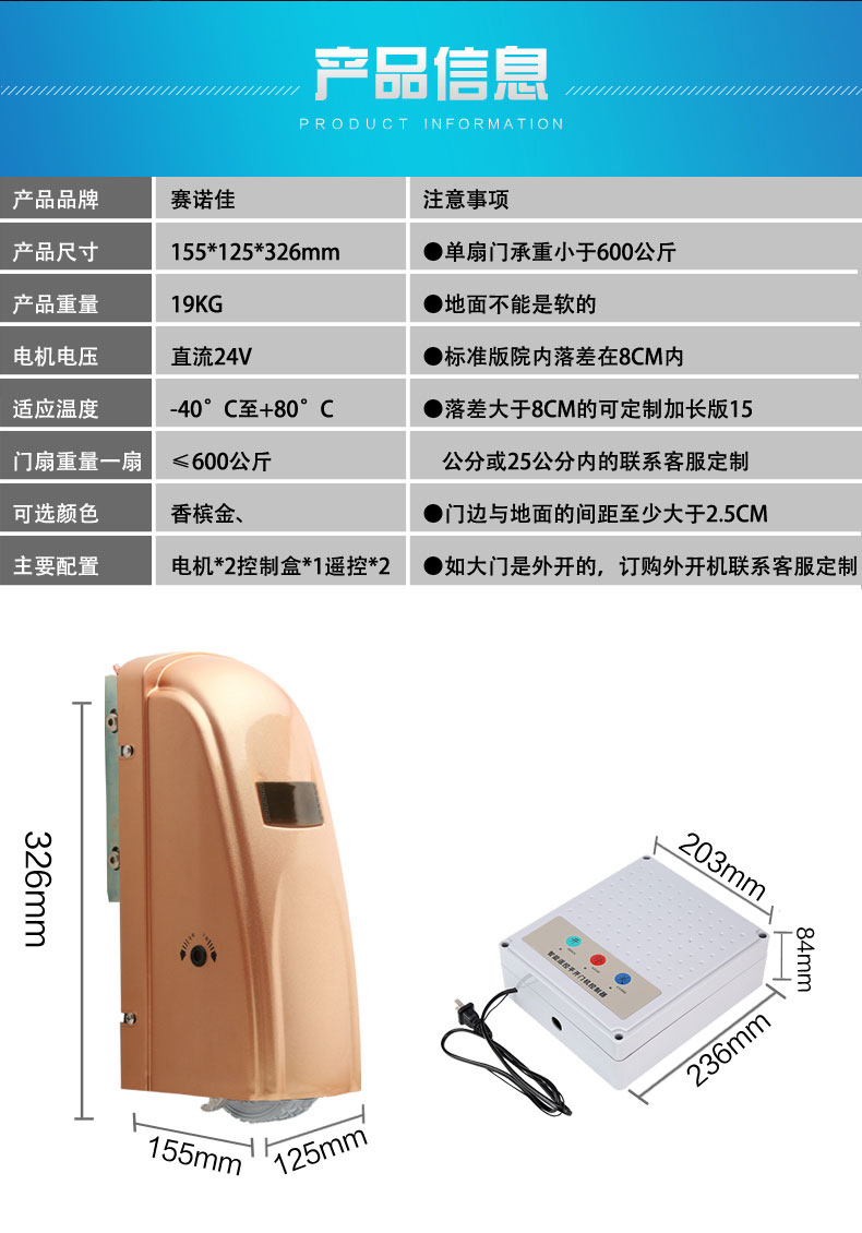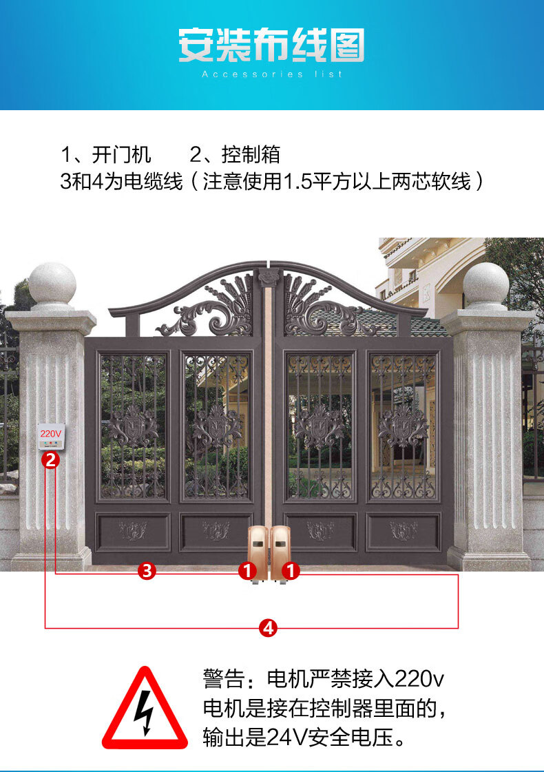 赛诺佳电动八字平开门电机自动庭院开门机双开闭门器遥控大门别墅滚轮机 防风款(标配+手机远程)