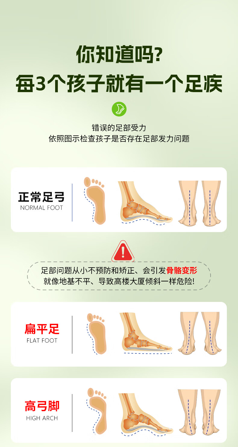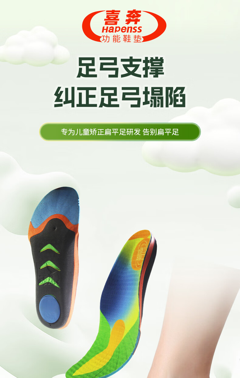 喜奔儿童扁平足矫正鞋垫足弓垫内外翻内八副舟骨纠正平足成人足弓支撑 扁平足矫正足弓鞋垫 33码 内长215mm