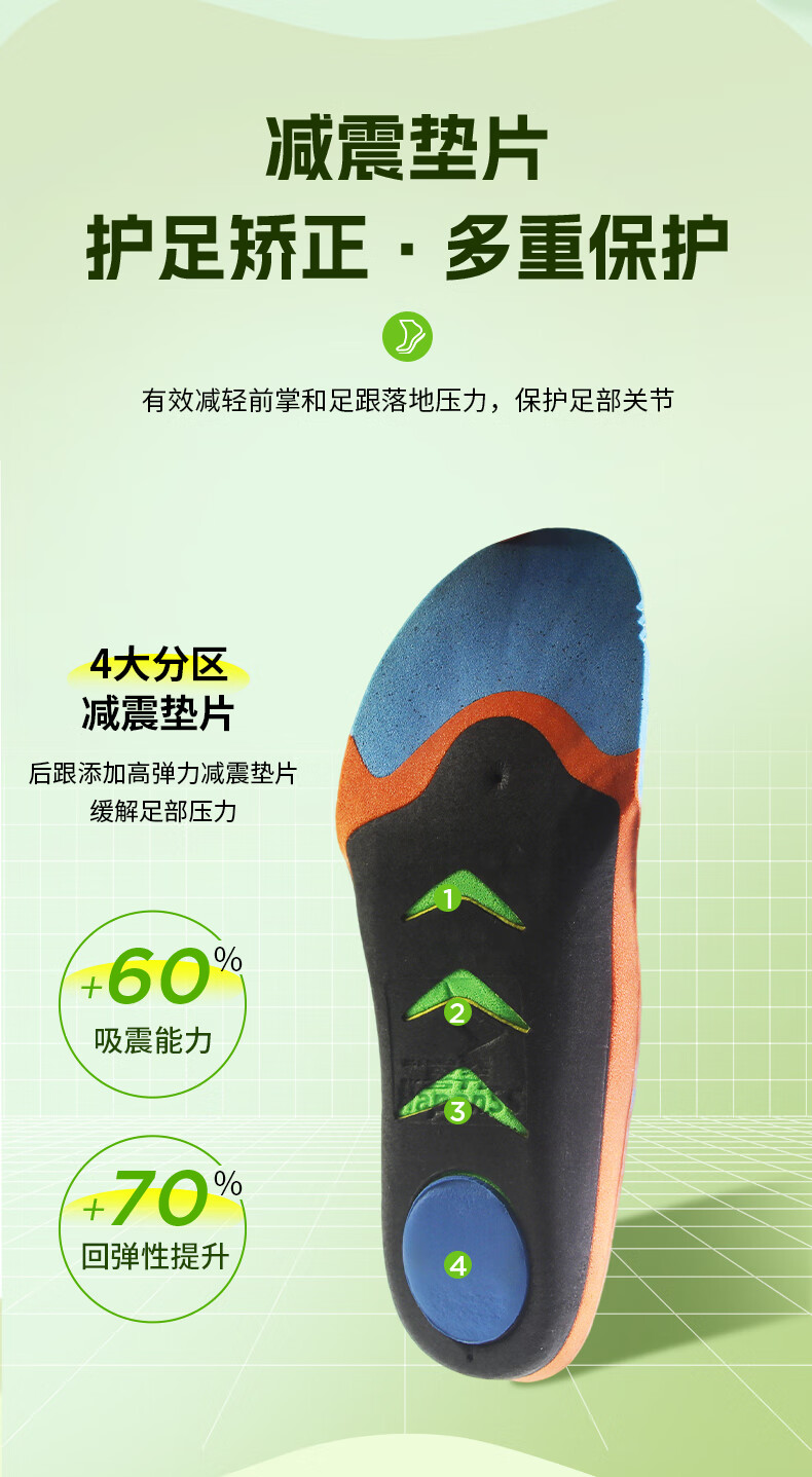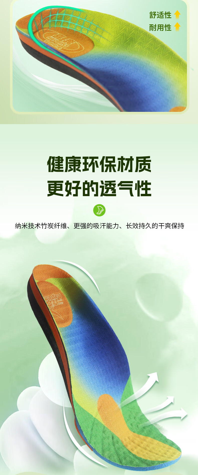 步云鞋垫男软弹站久不累吸汗防臭透气抗菌防脚痛运动踩屎感高弹鞋垫子 站久不累黑面绿底-2双装 43-44