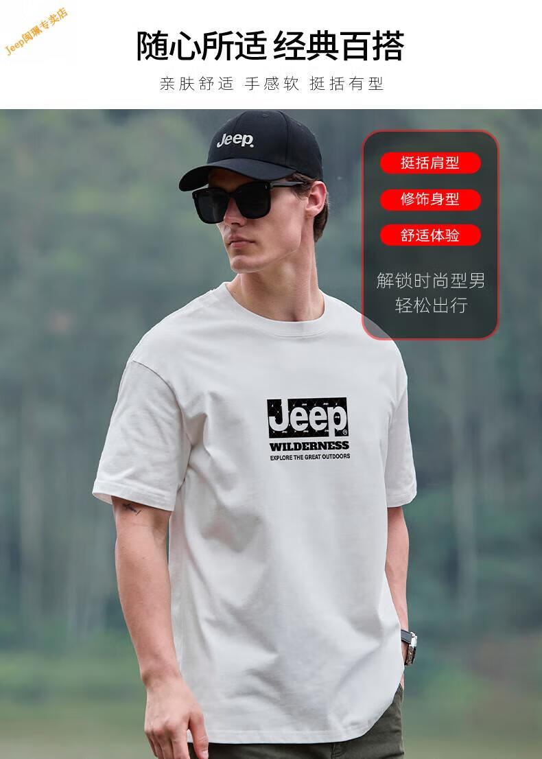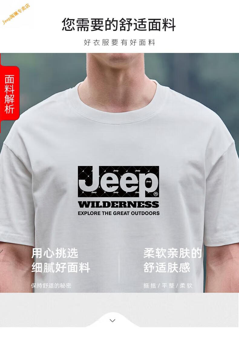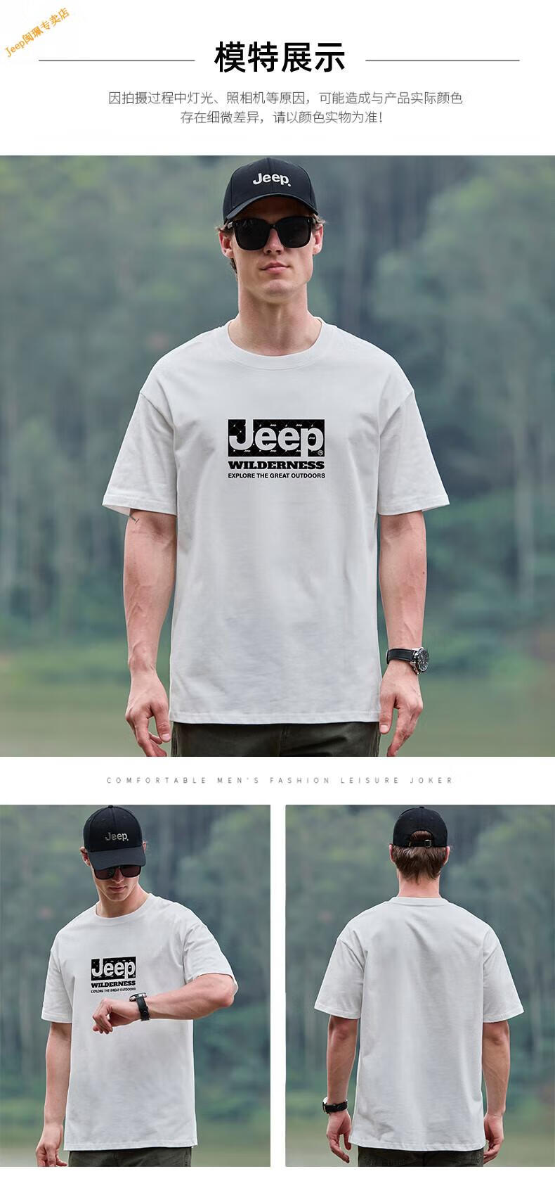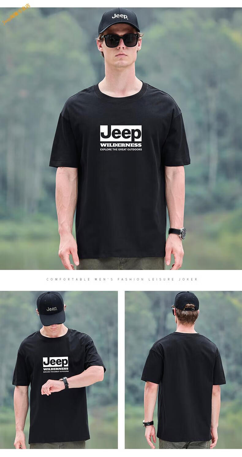 吉普(JEEP)美式高端男士重磅t恤男纯棉短袖男夏季体恤2025新款大码男装夏装 黑色 【专柜正品】 M