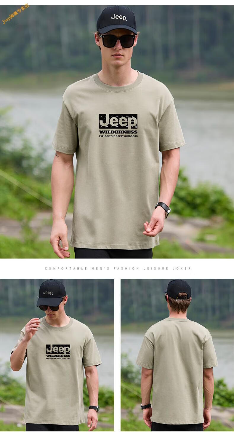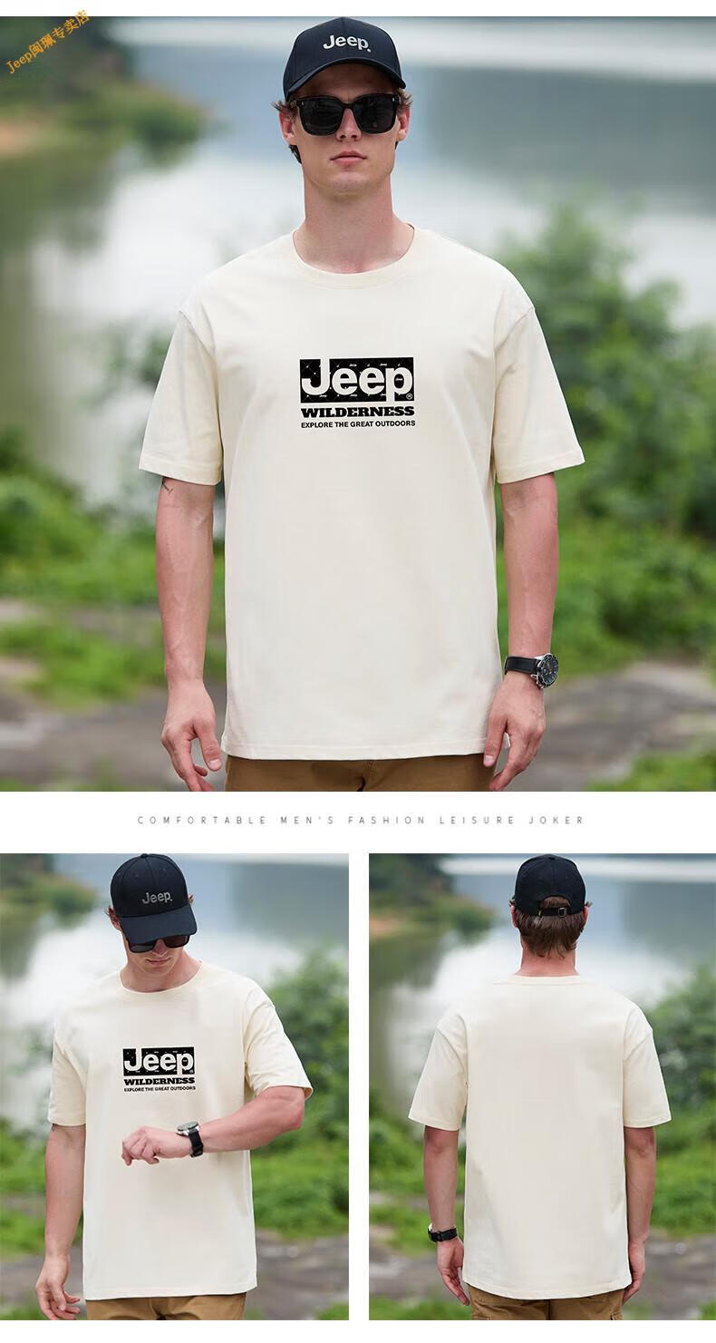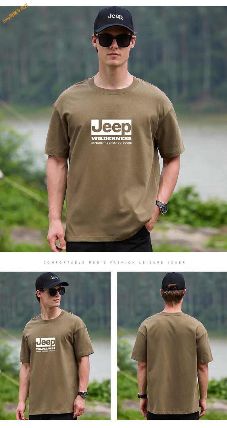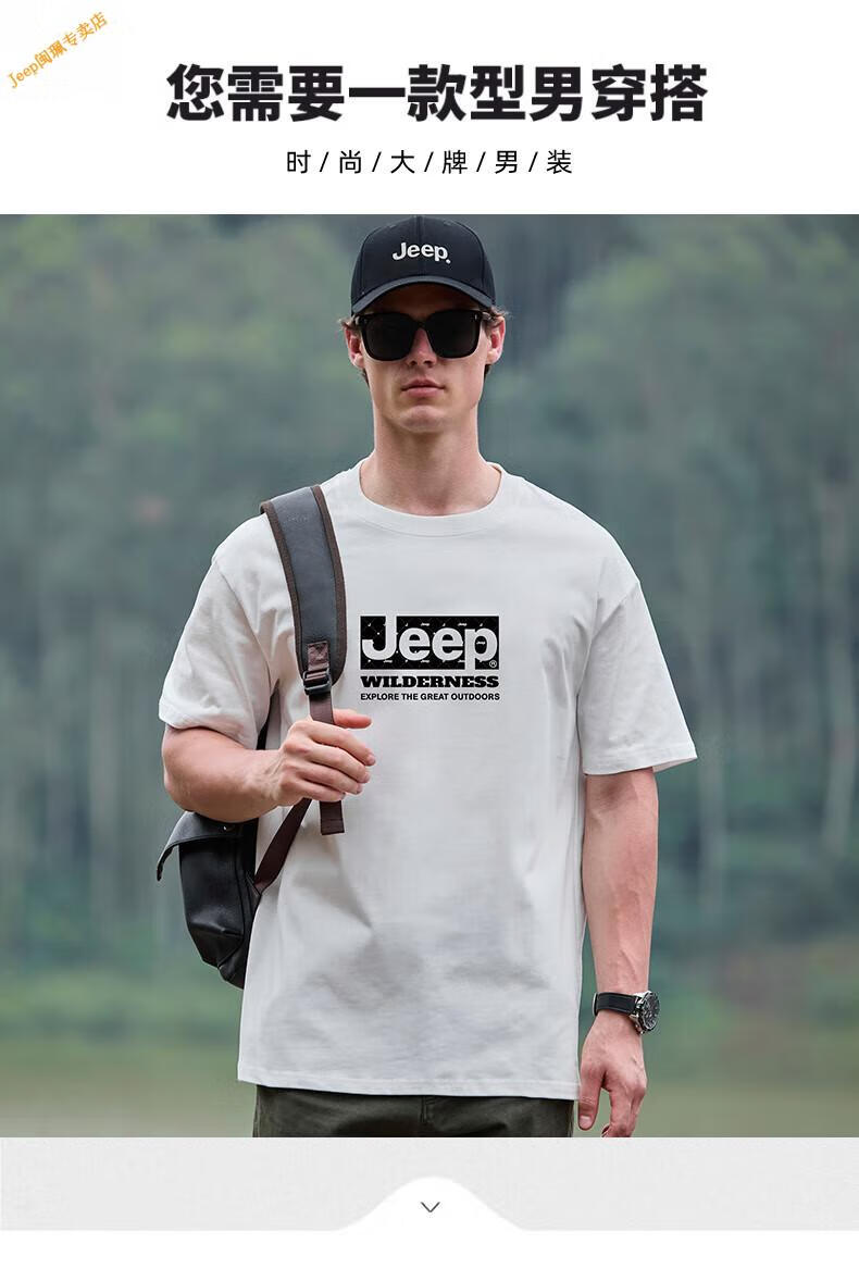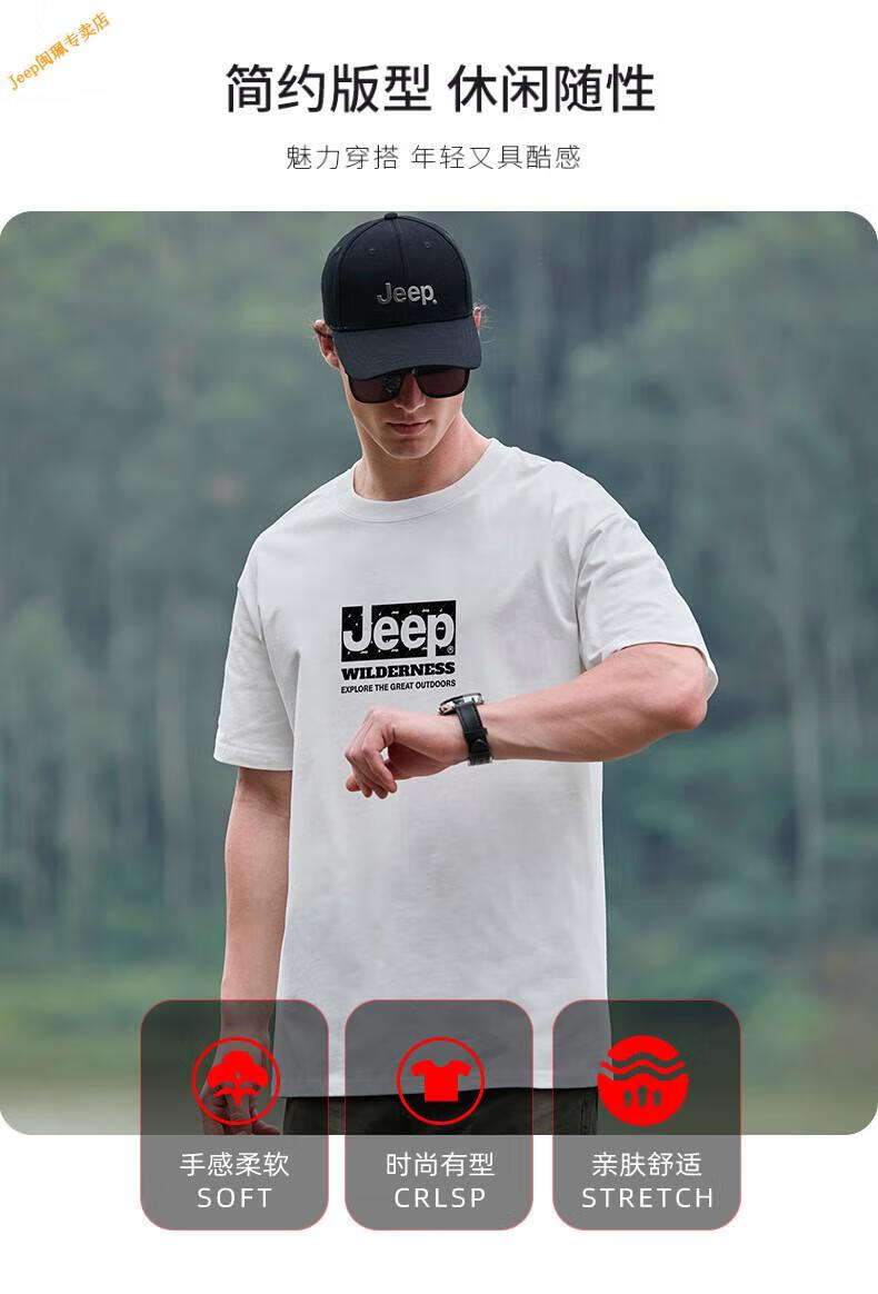 吉普(JEEP)美式高端男士重磅t恤男纯棉短袖男夏季体恤2025新款大码男装夏装 黑色 【专柜正品】 M