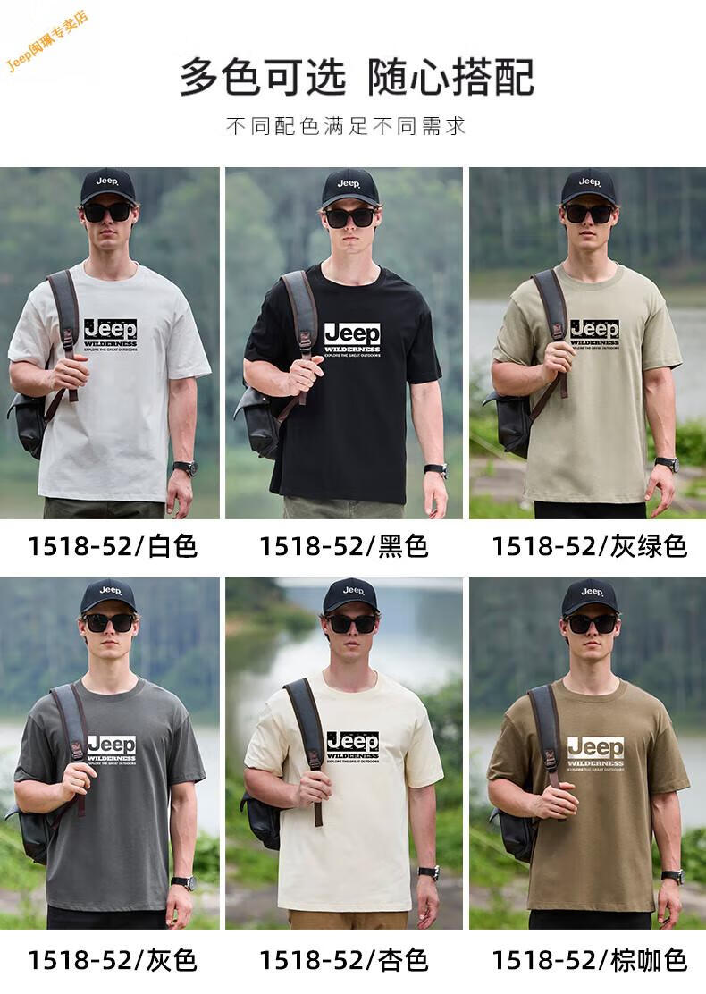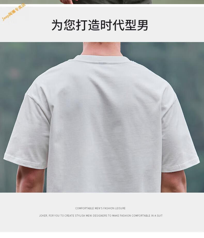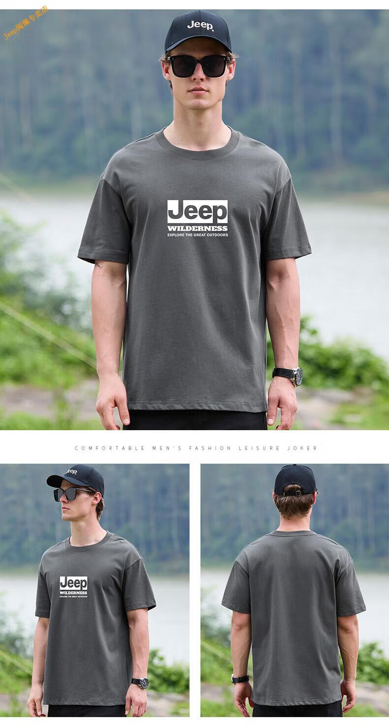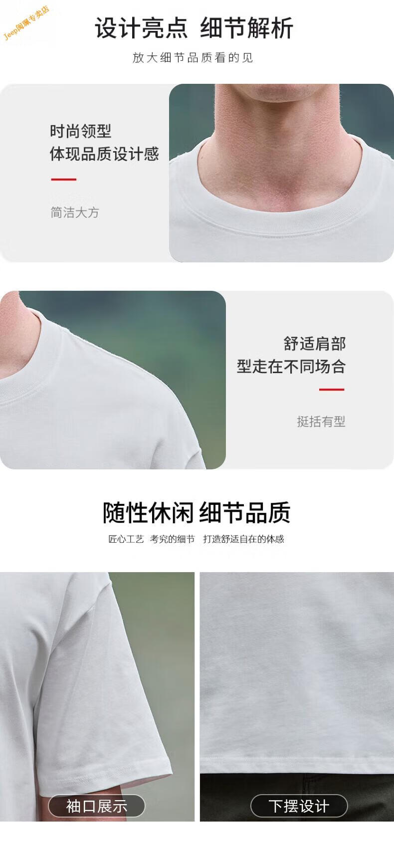 吉普(JEEP)美式高端男士重磅t恤男纯棉短袖男夏季体恤2025新款大码男装夏装 黑色 【专柜正品】 M