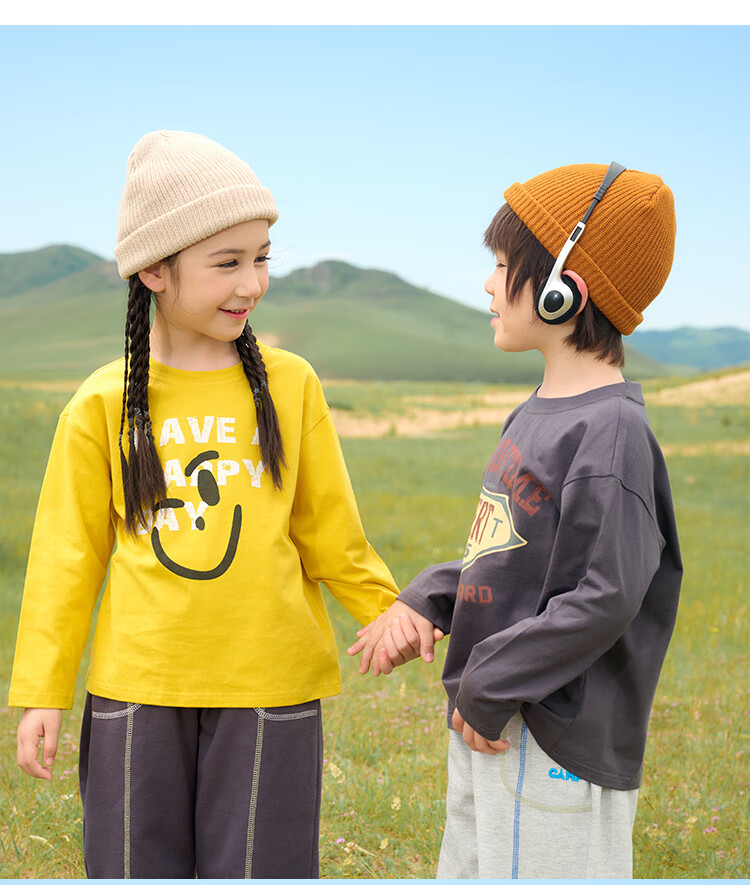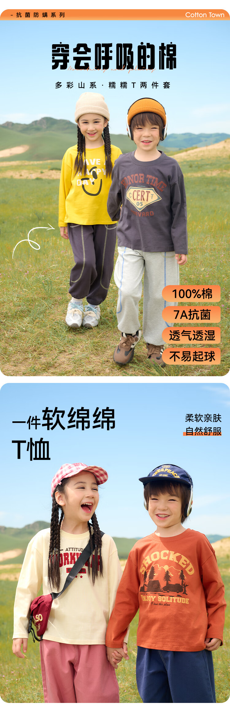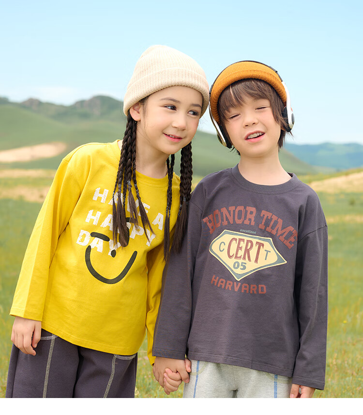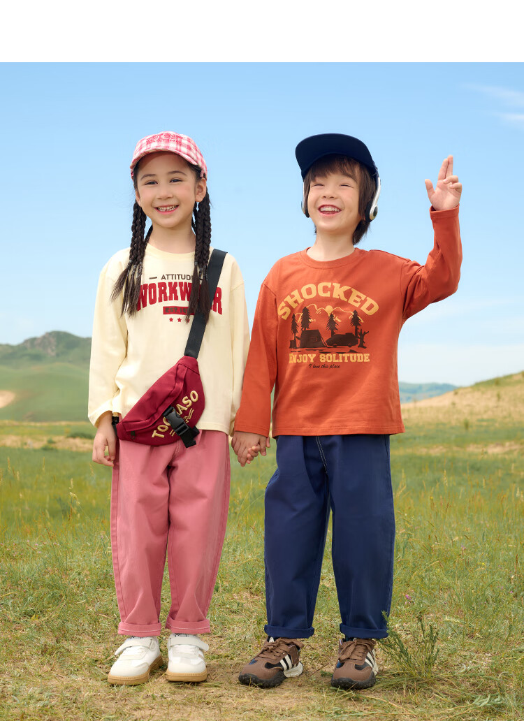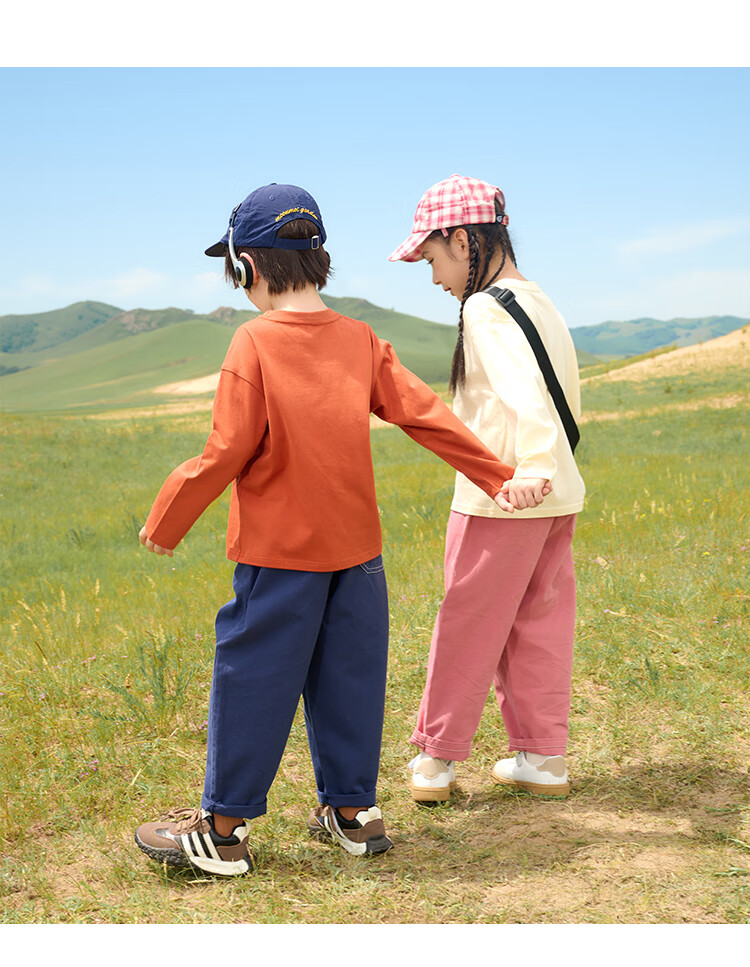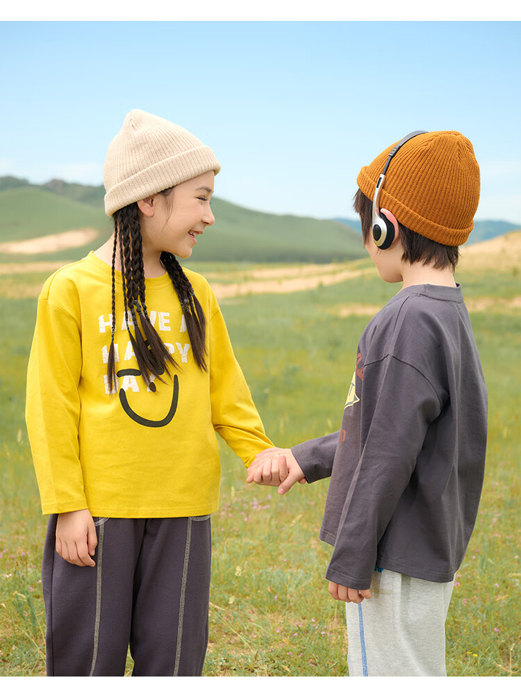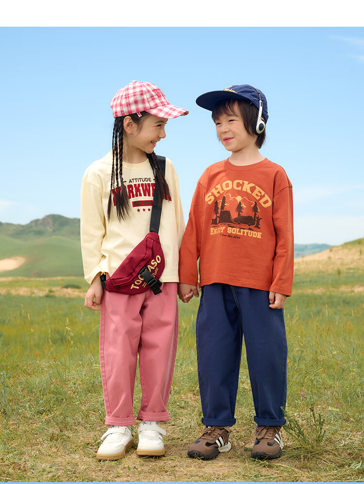棉花堂【100%棉】儿童长袖T恤女童打底衫男童上衣宝宝衣服抗菌2件xx 组合一:砖红,米色 140