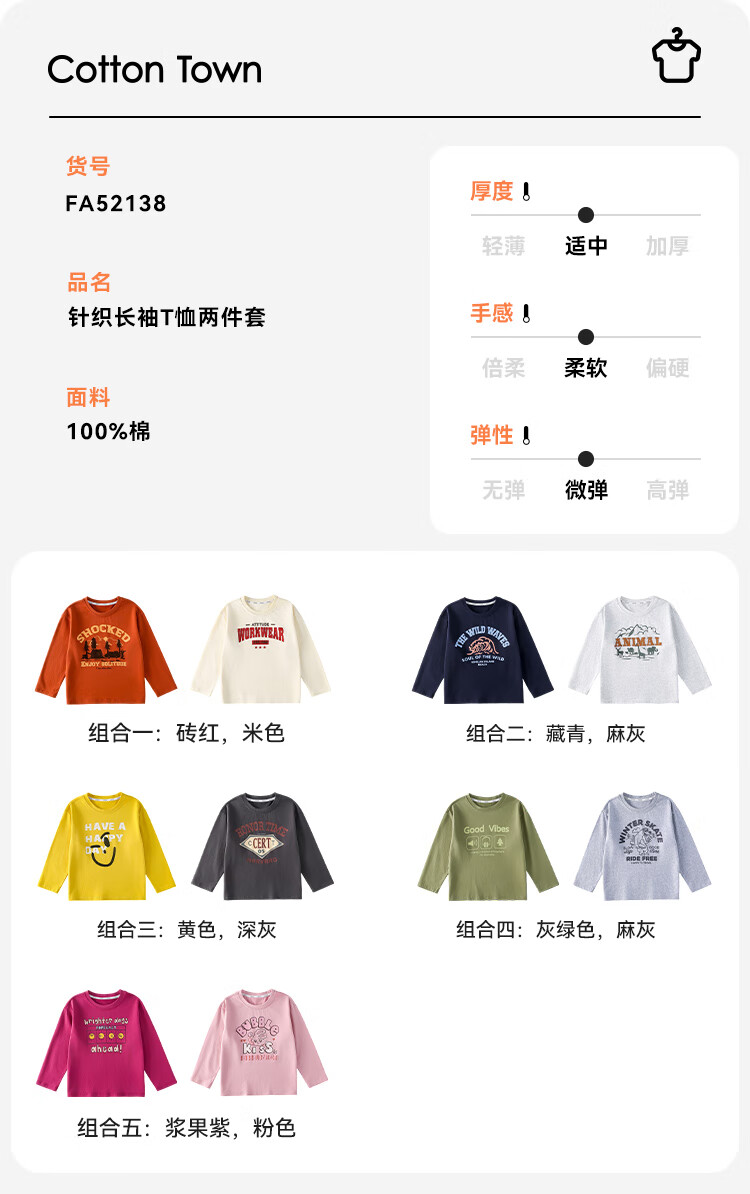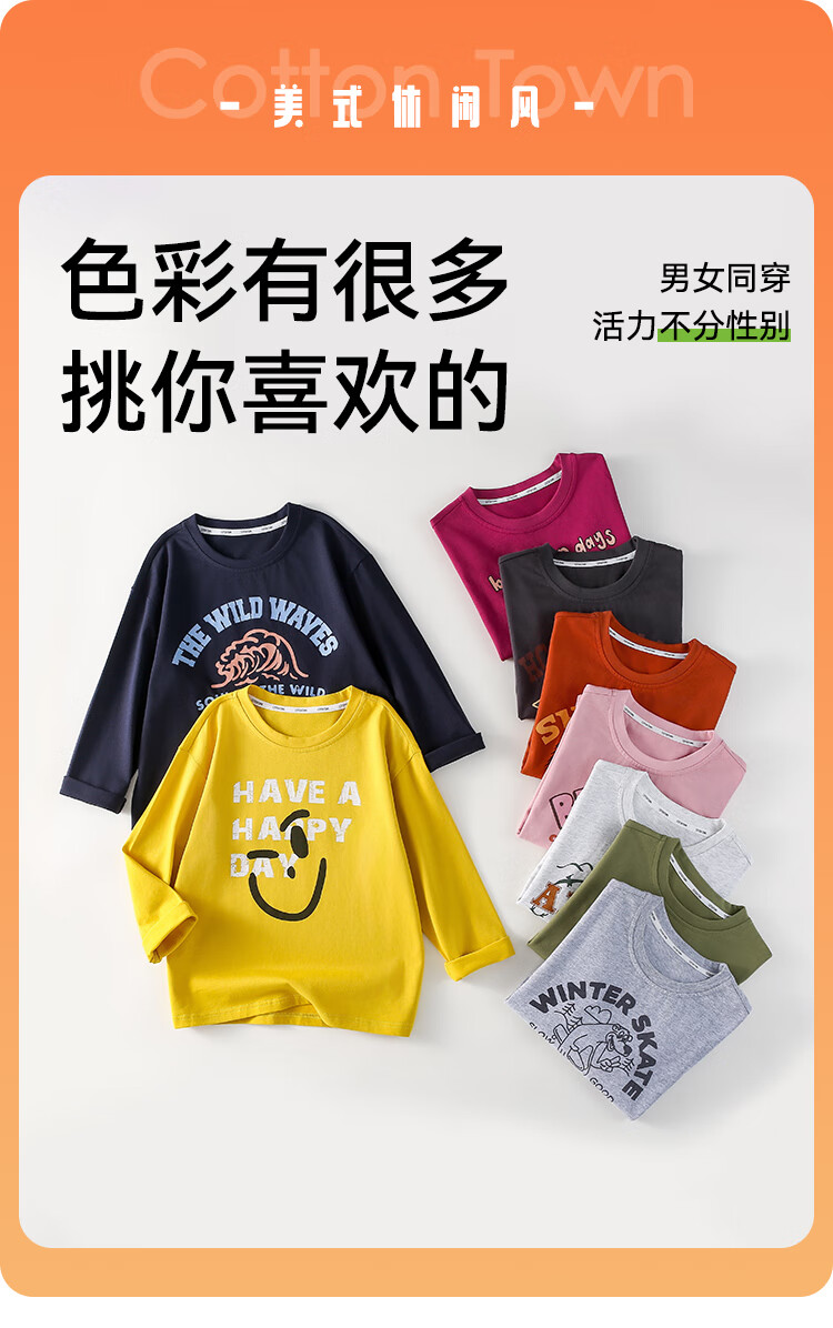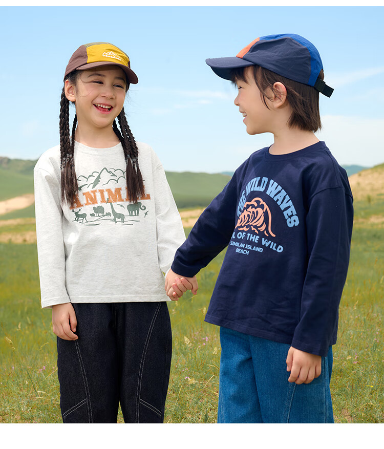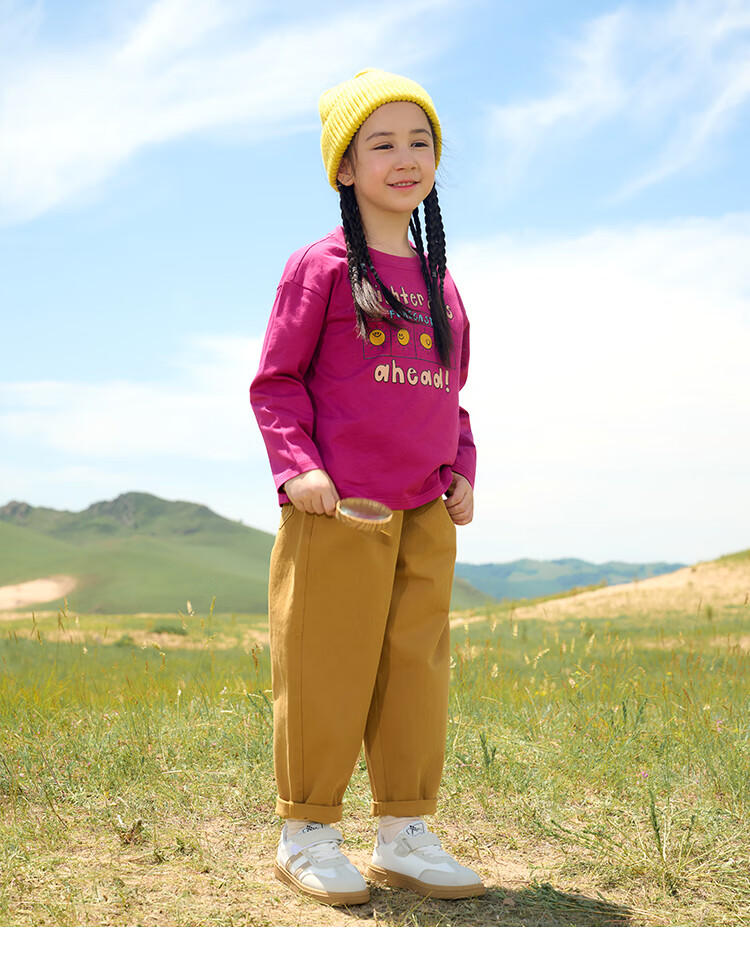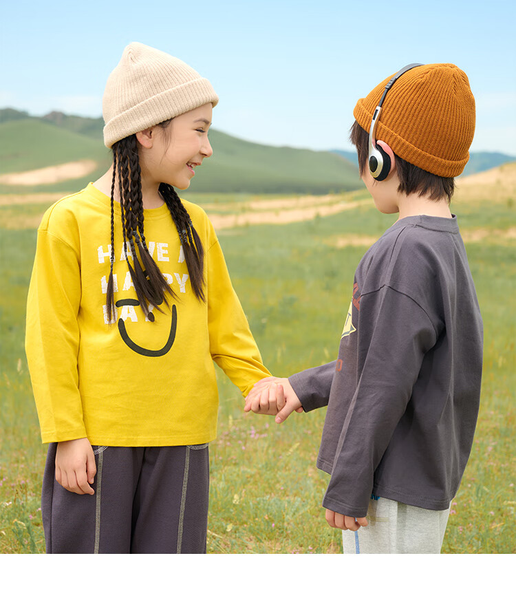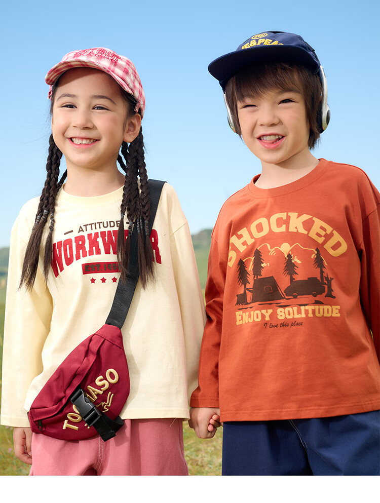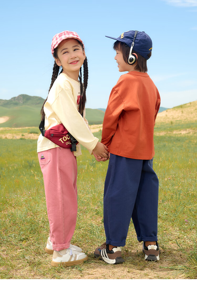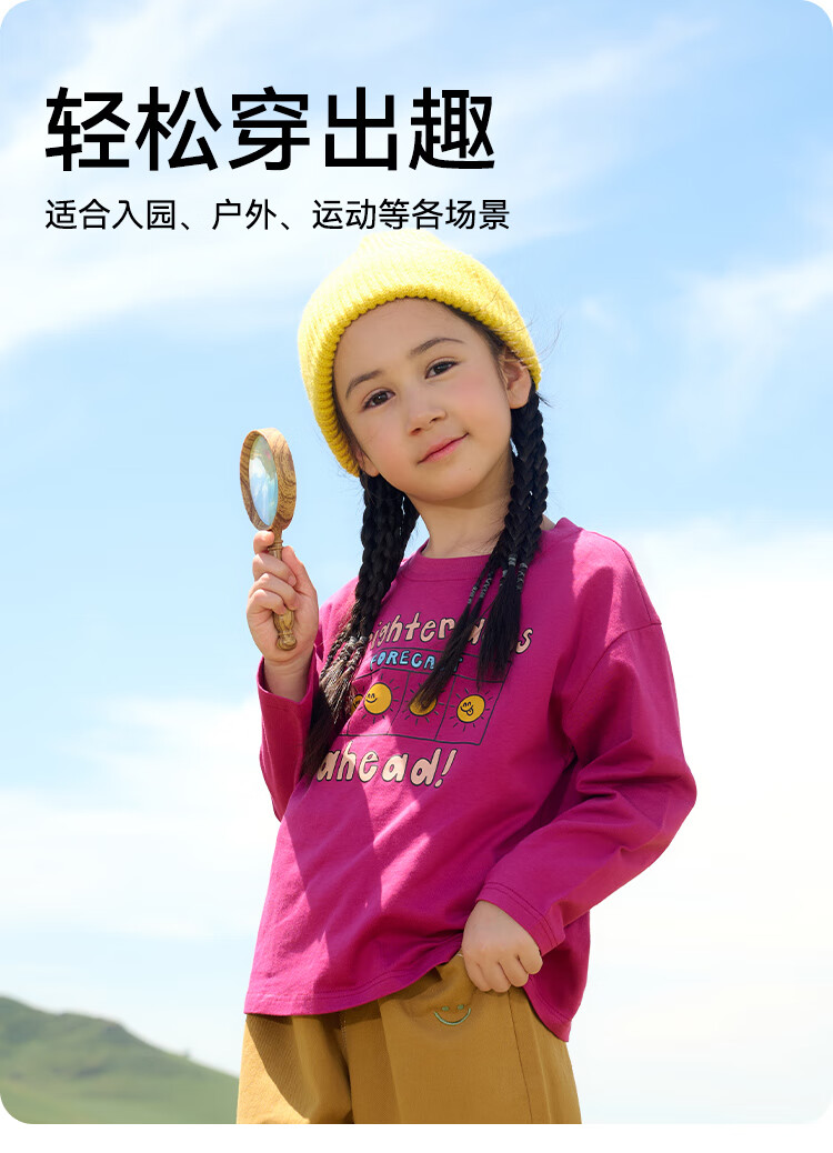 棉花堂【100%棉】儿童长袖T恤女童打底衫男童上衣宝宝衣服抗菌2件xx 组合一:砖红,米色 140