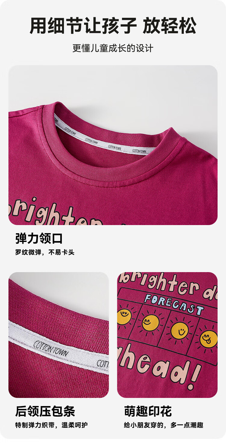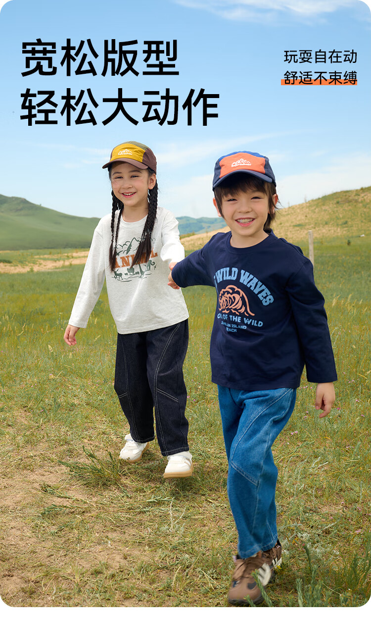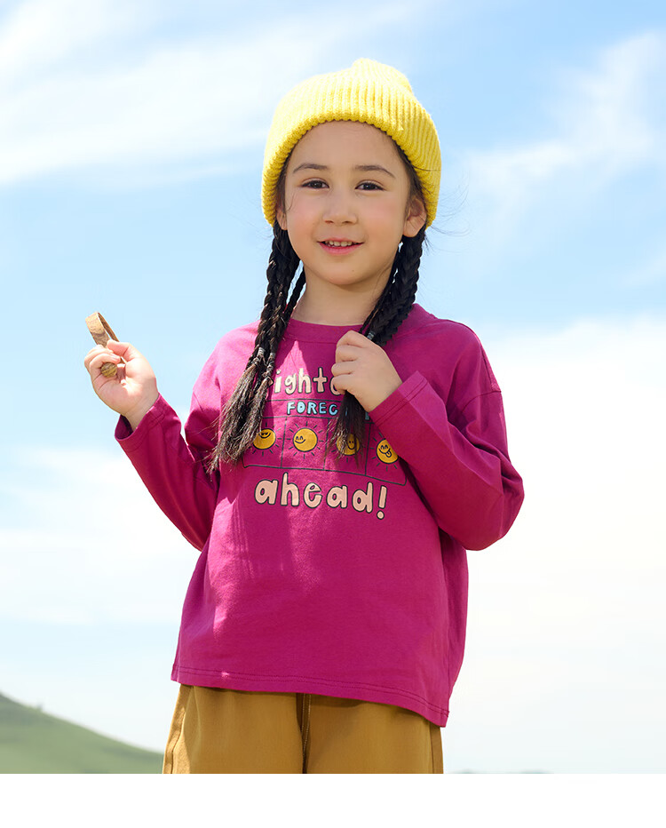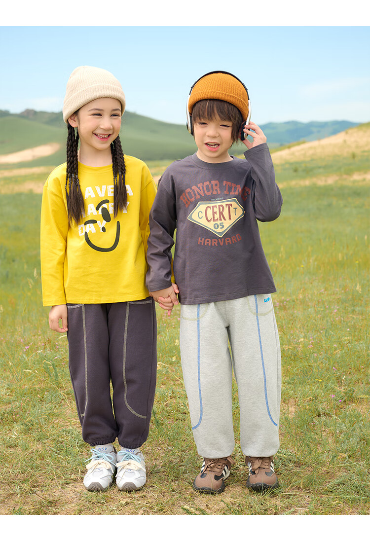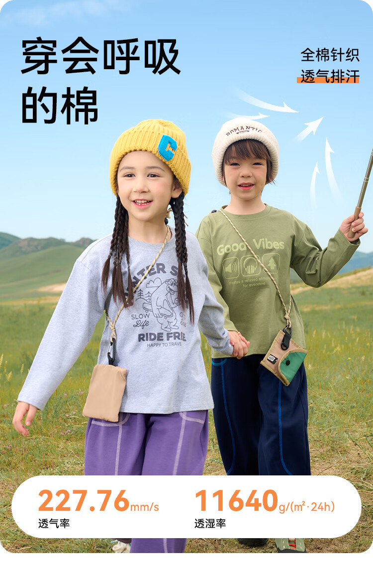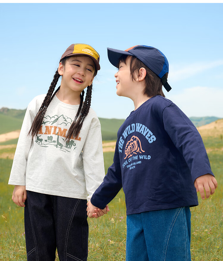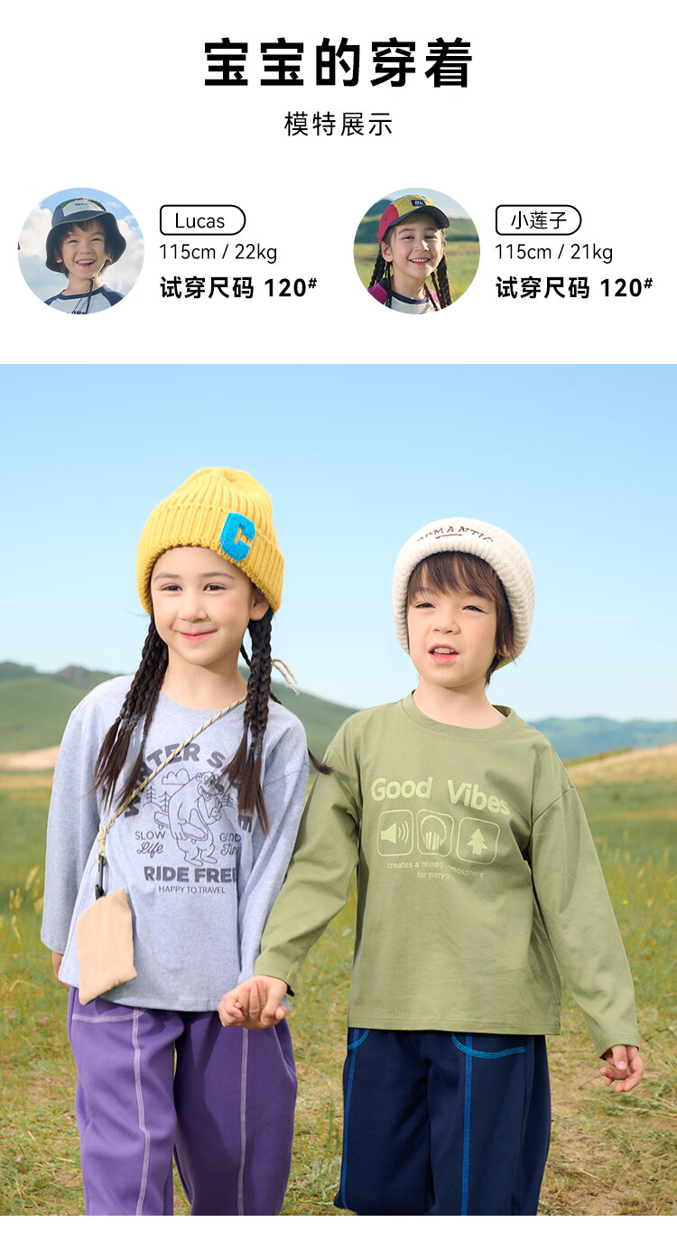棉花堂【100%棉】儿童长袖T恤女童打底衫男童上衣宝宝衣服抗菌2件xx 组合一:砖红,米色 140