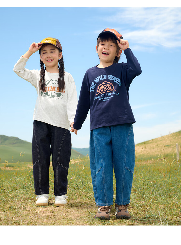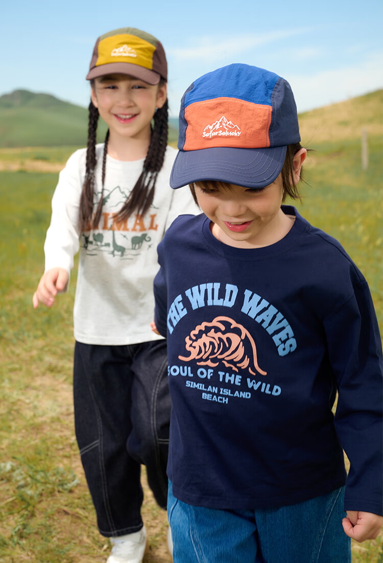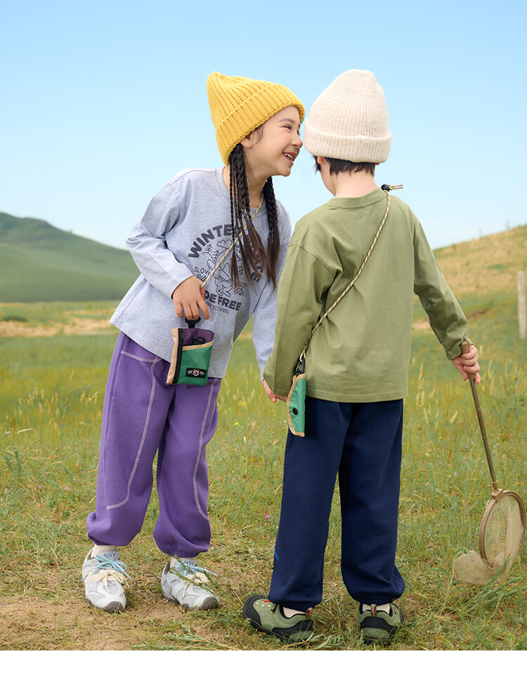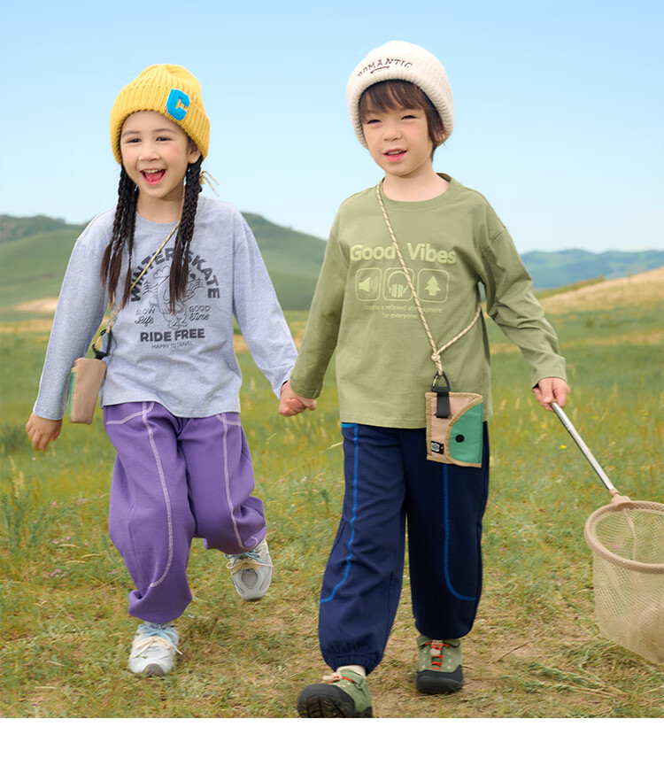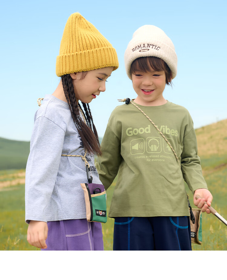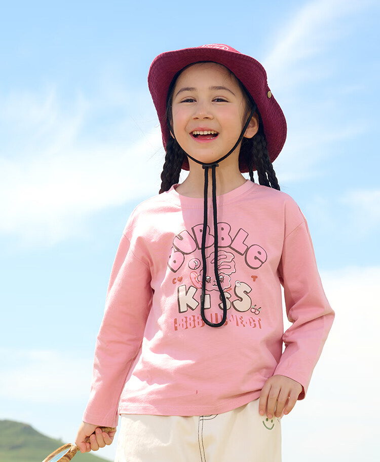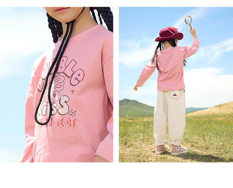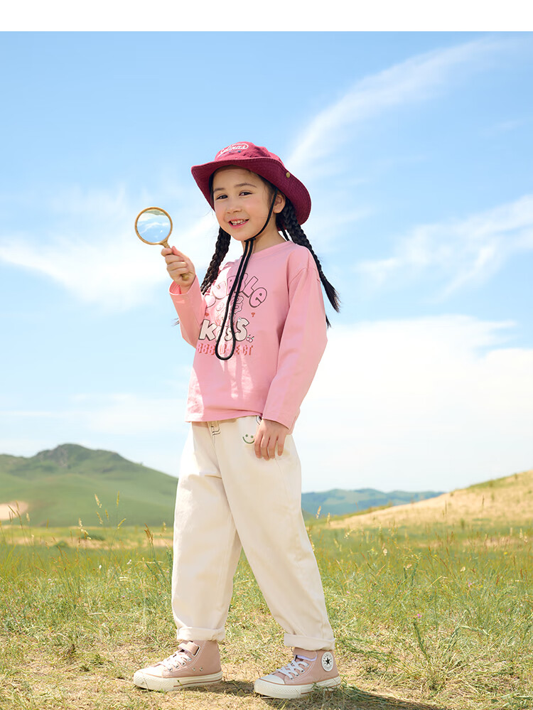 棉花堂【100%棉】儿童长袖T恤女童打底衫男童上衣宝宝衣服抗菌2件xx 组合一:砖红,米色 140