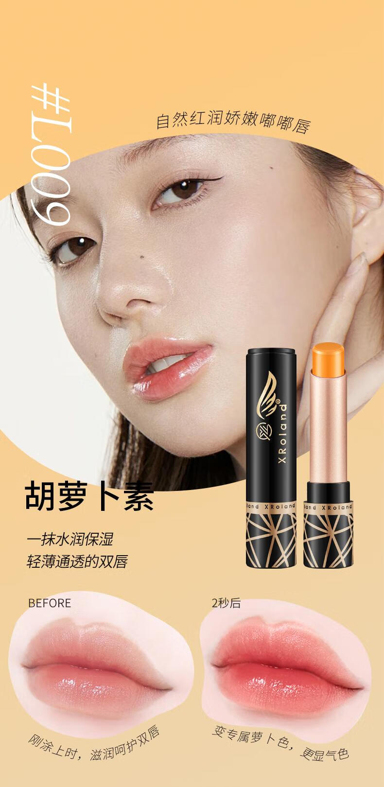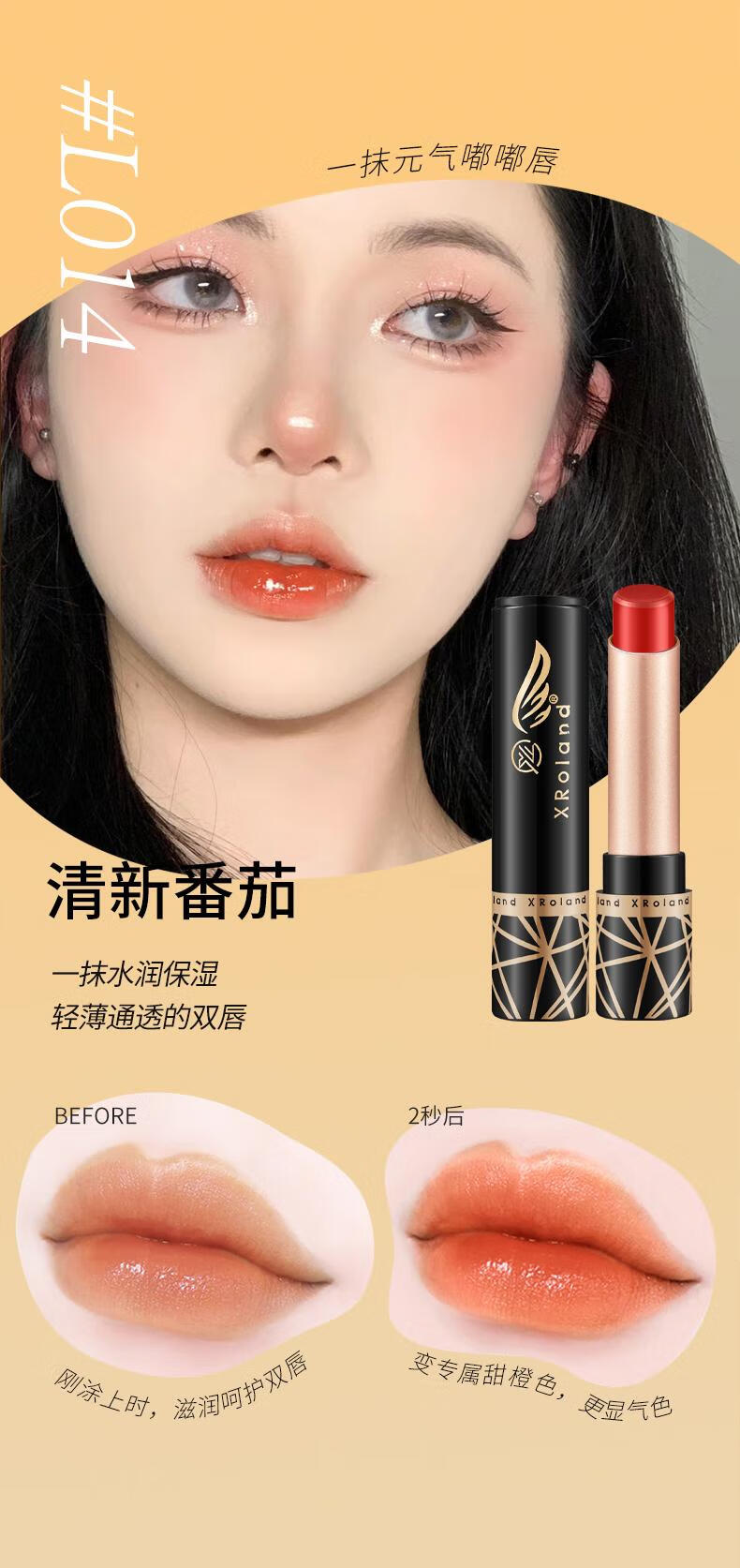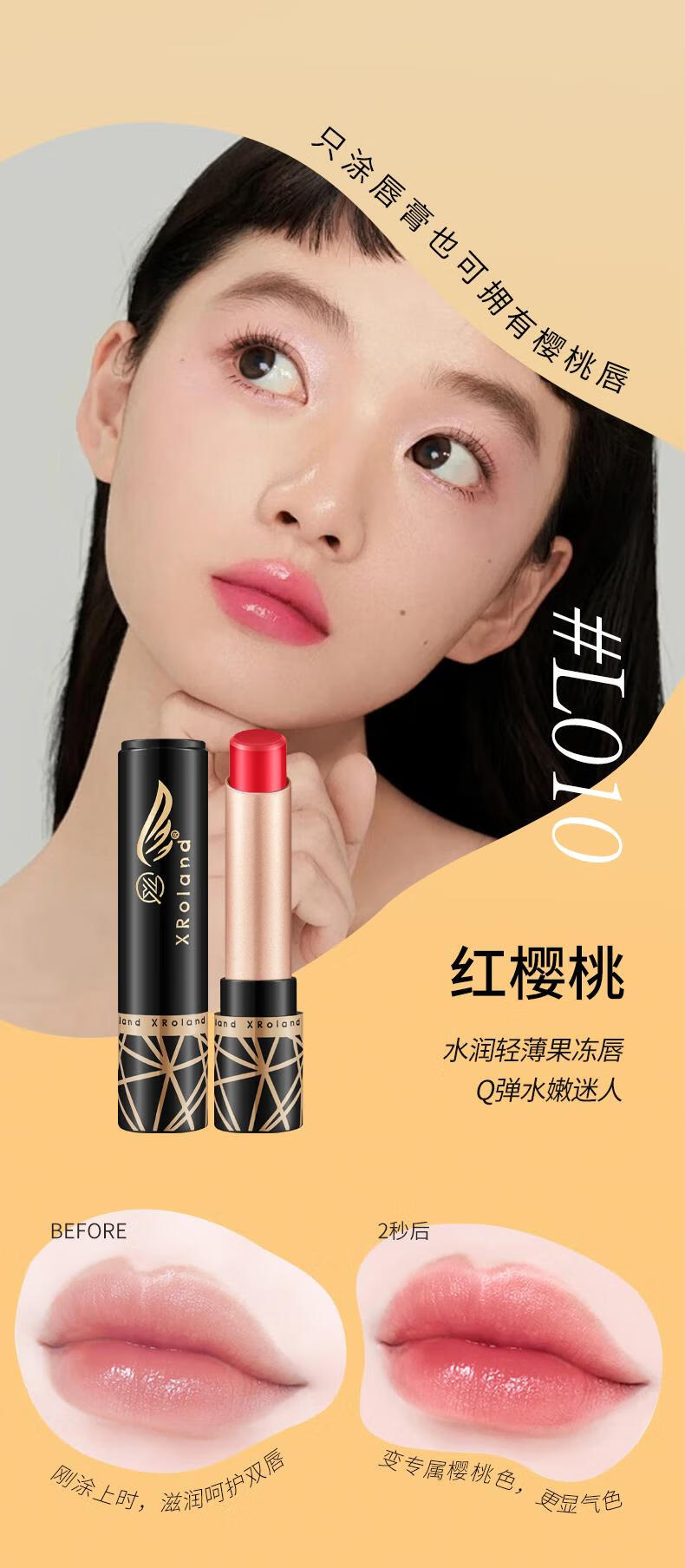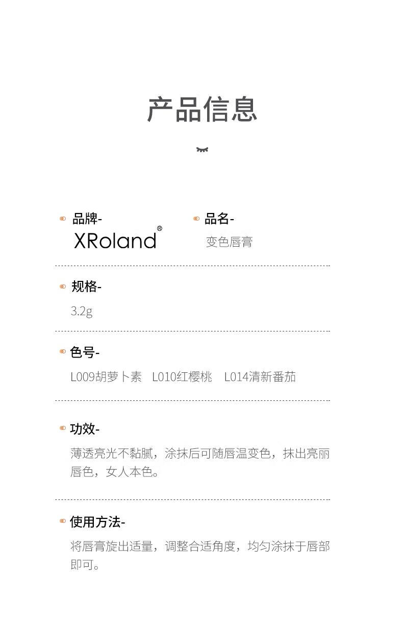 XRoland胡萝卜素变色唇膏保湿补水口红不沾杯防干裂润唇膏直播批发 红樱桃1支+清新番茄一支