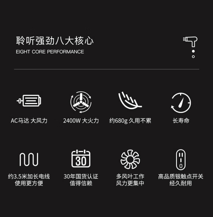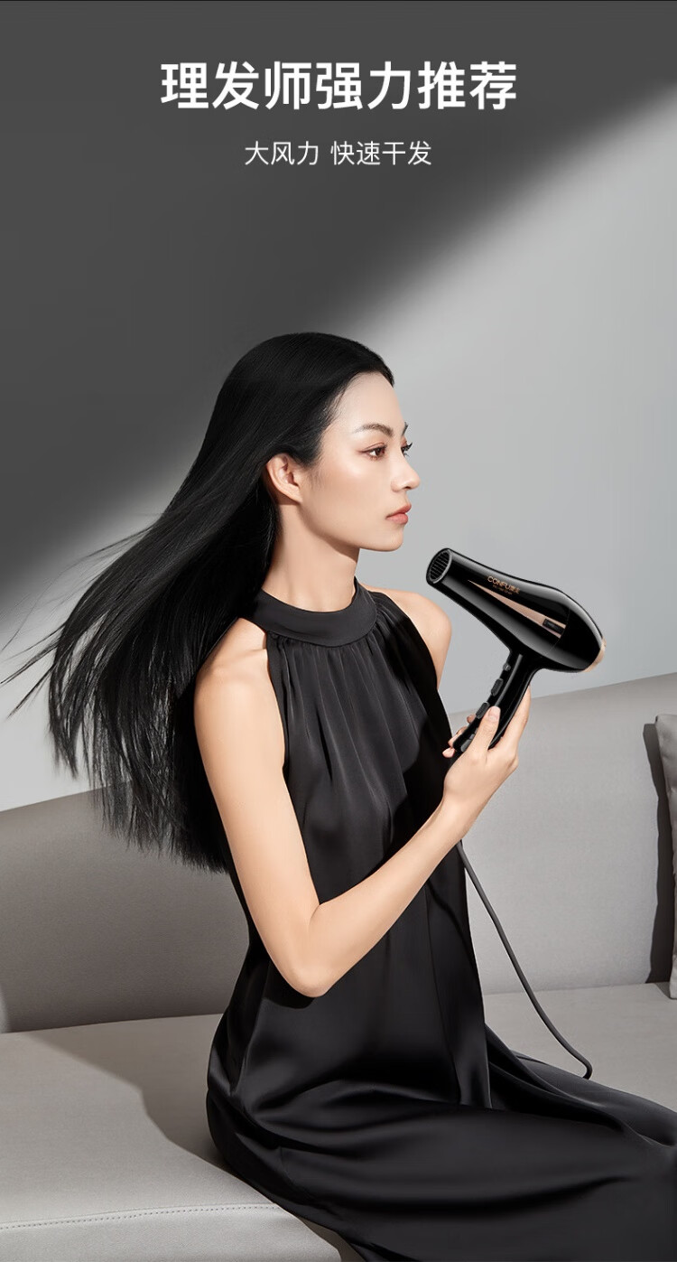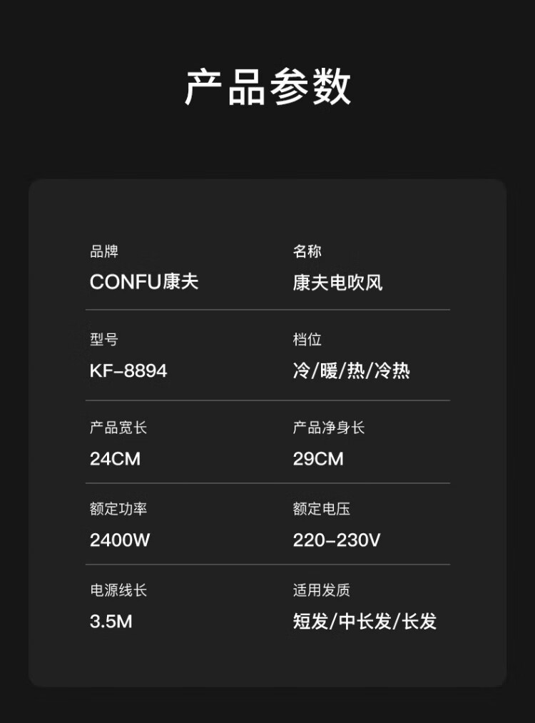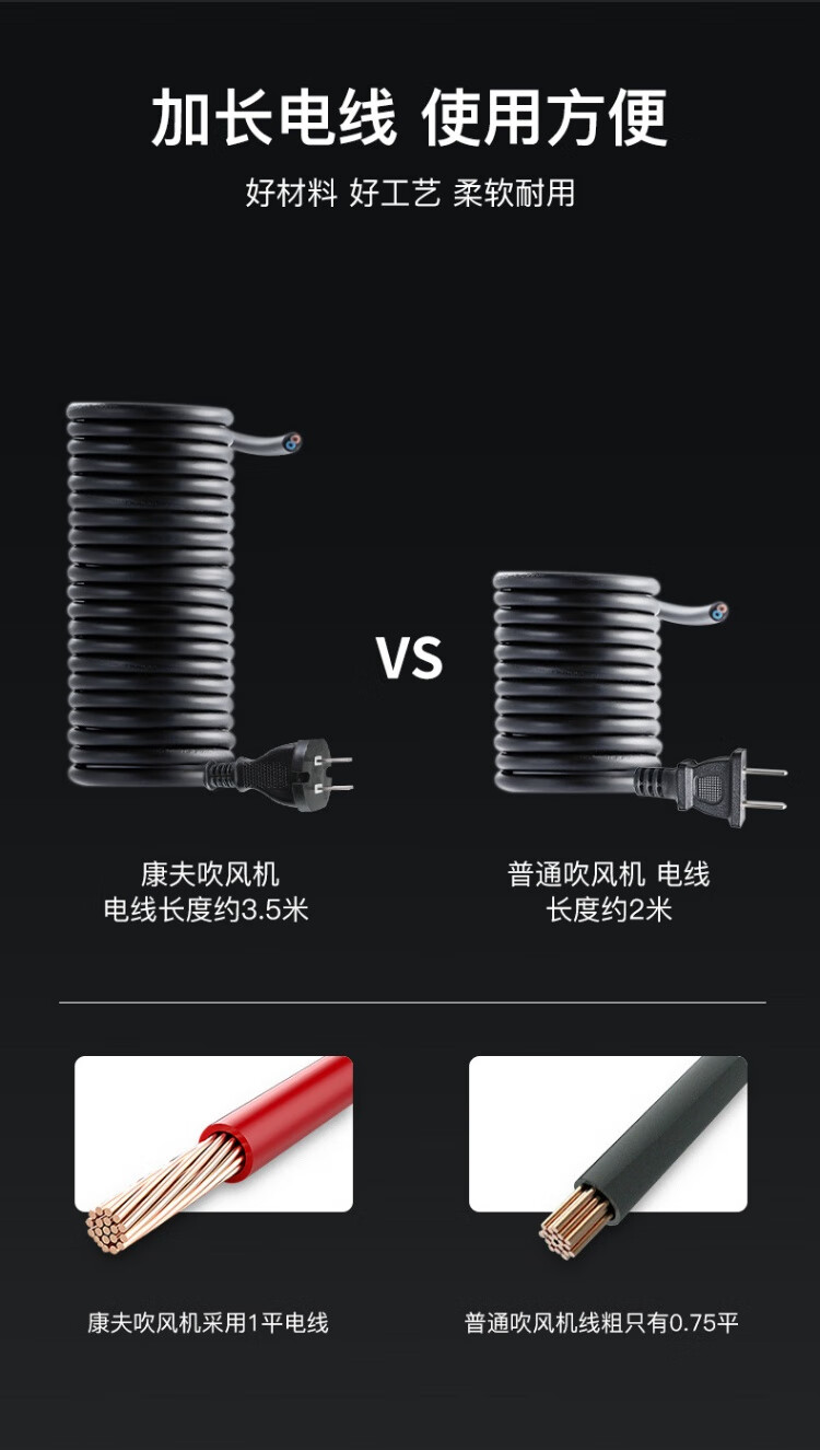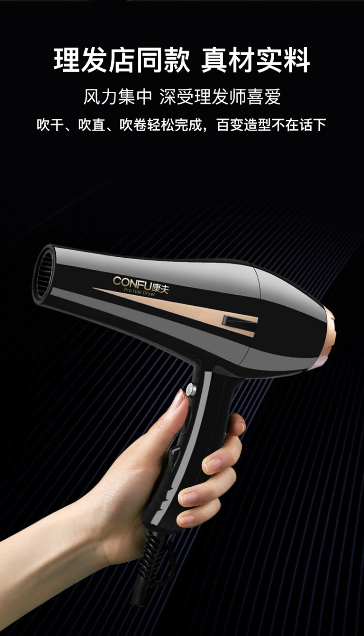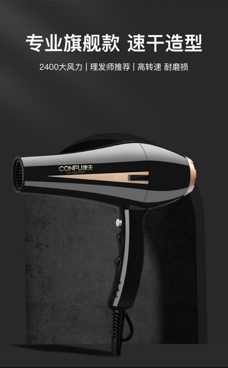 康夫电吹风机理发店家用大功率速干恒温冷热风发廊大风力吹风筒 黑色 康夫8894(2400w大功率线3.5米)
