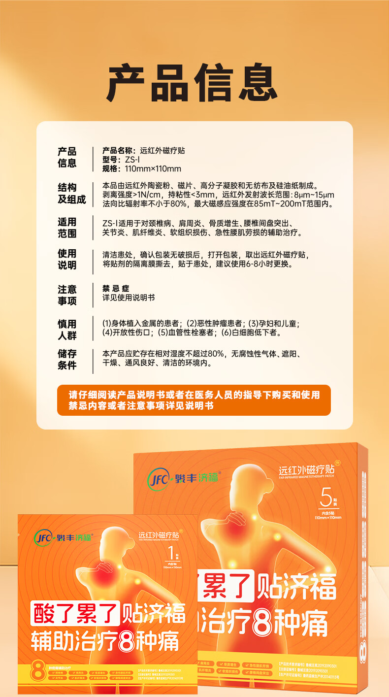 骏丰频谱济福远红外磁疗贴理疗贴肩周炎贴膏颈椎贴肩颈贴关节疼痛辅助治疗 5盒*5片 -【25片心动装】可试用一贴