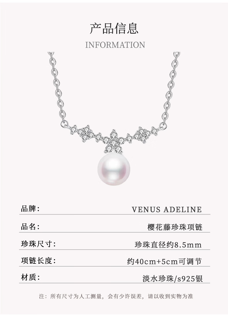 VENUS ADELINE珍珠项链女银淡水吊坠年轻款轻奢锁骨链女友老婆妈妈生日七夕礼物 七夕情人节生日礼物送女友老婆