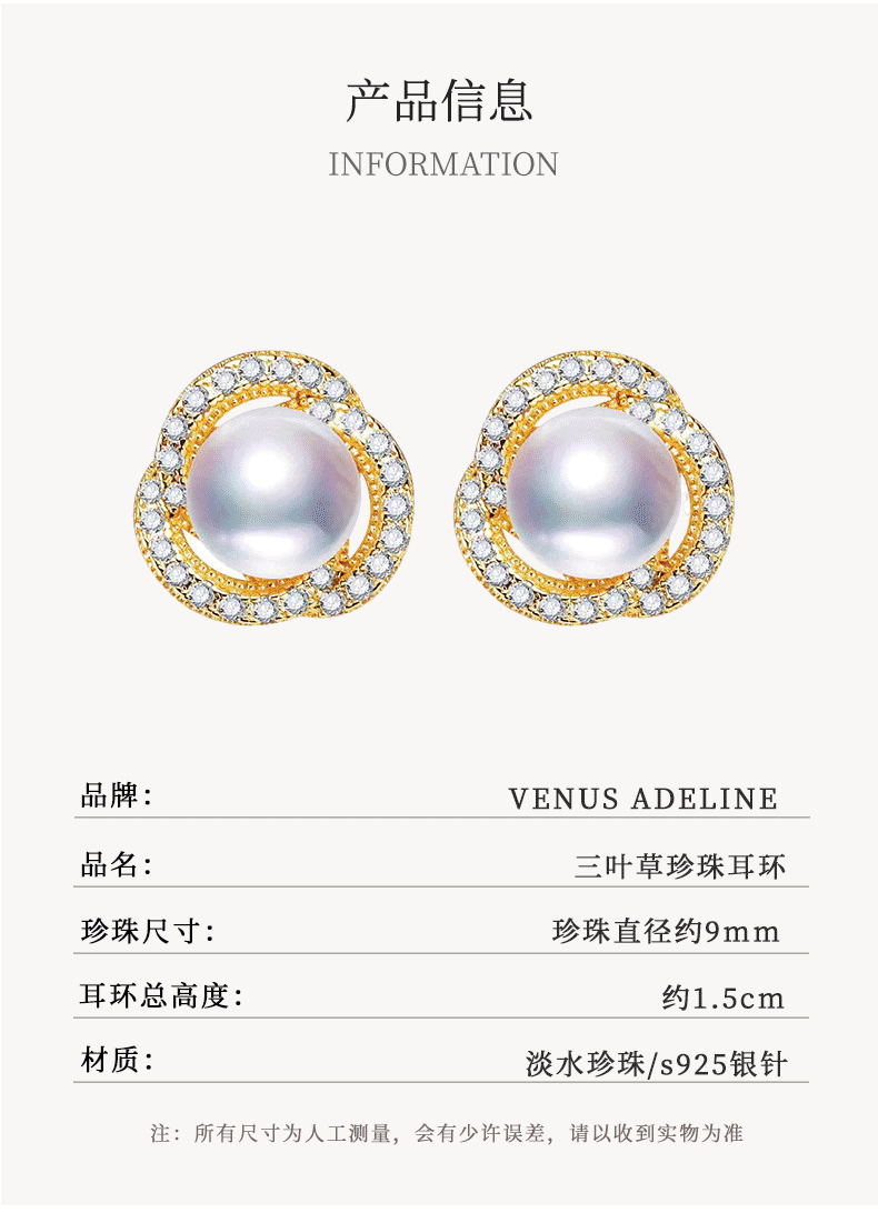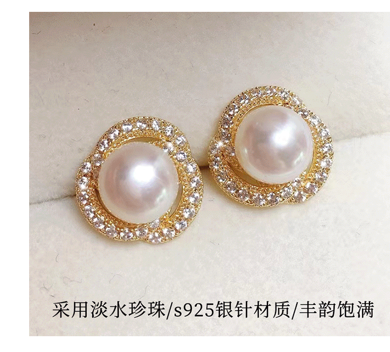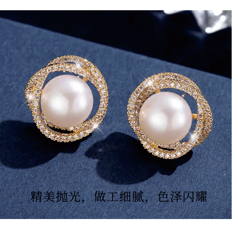 VENUS ADELINE淡水珍珠耳环女银针大颗螺旋轻奢高级感妈妈耳饰气质耳钉女友礼物 金色送女友老婆闺蜜实用圣诞礼盒