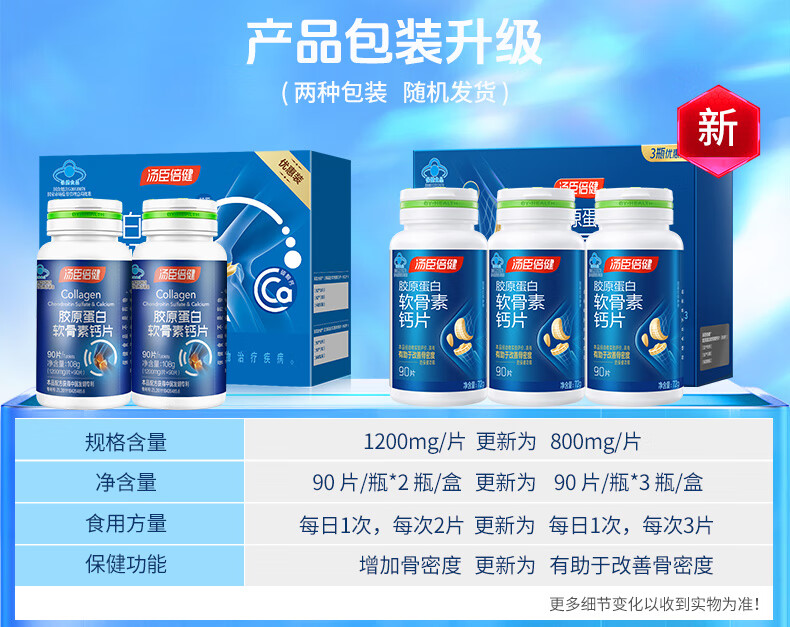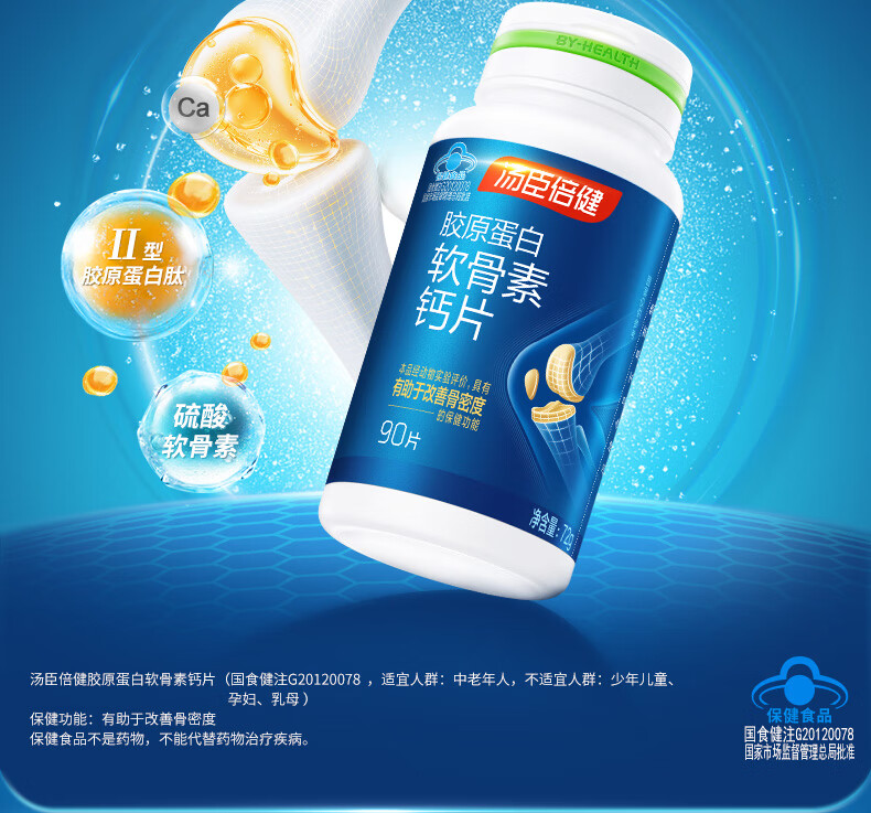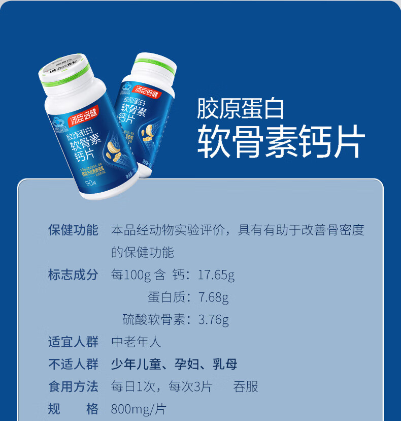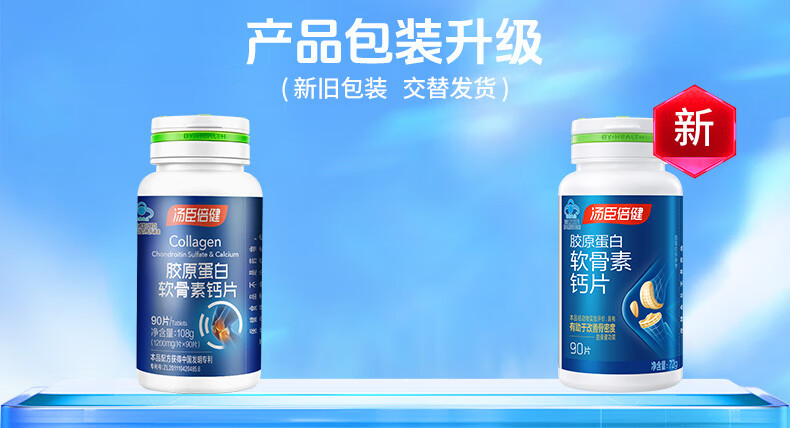 汤臣倍健270片】胶原蛋白软骨素钙片礼盒 成人中老年有助于改善骨密度补钙 胶原软骨素90片*3礼盒装