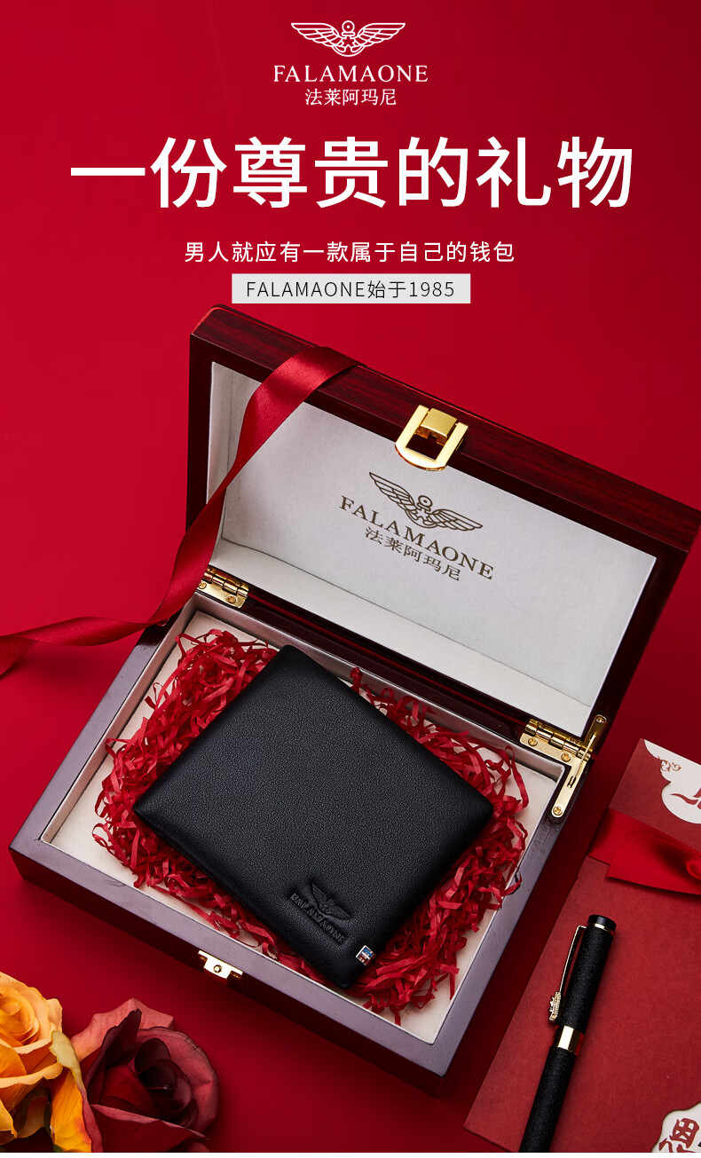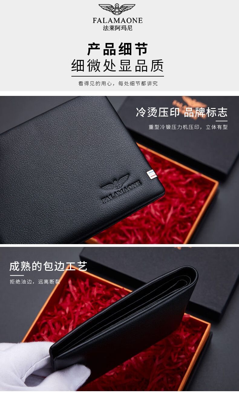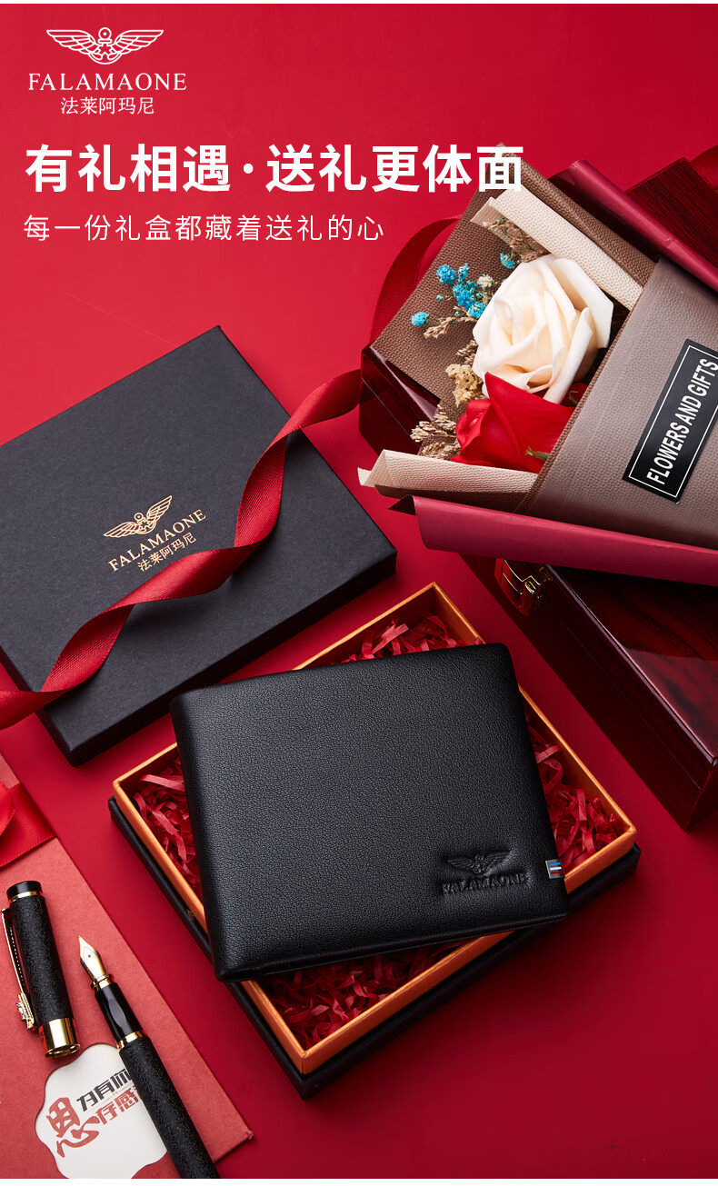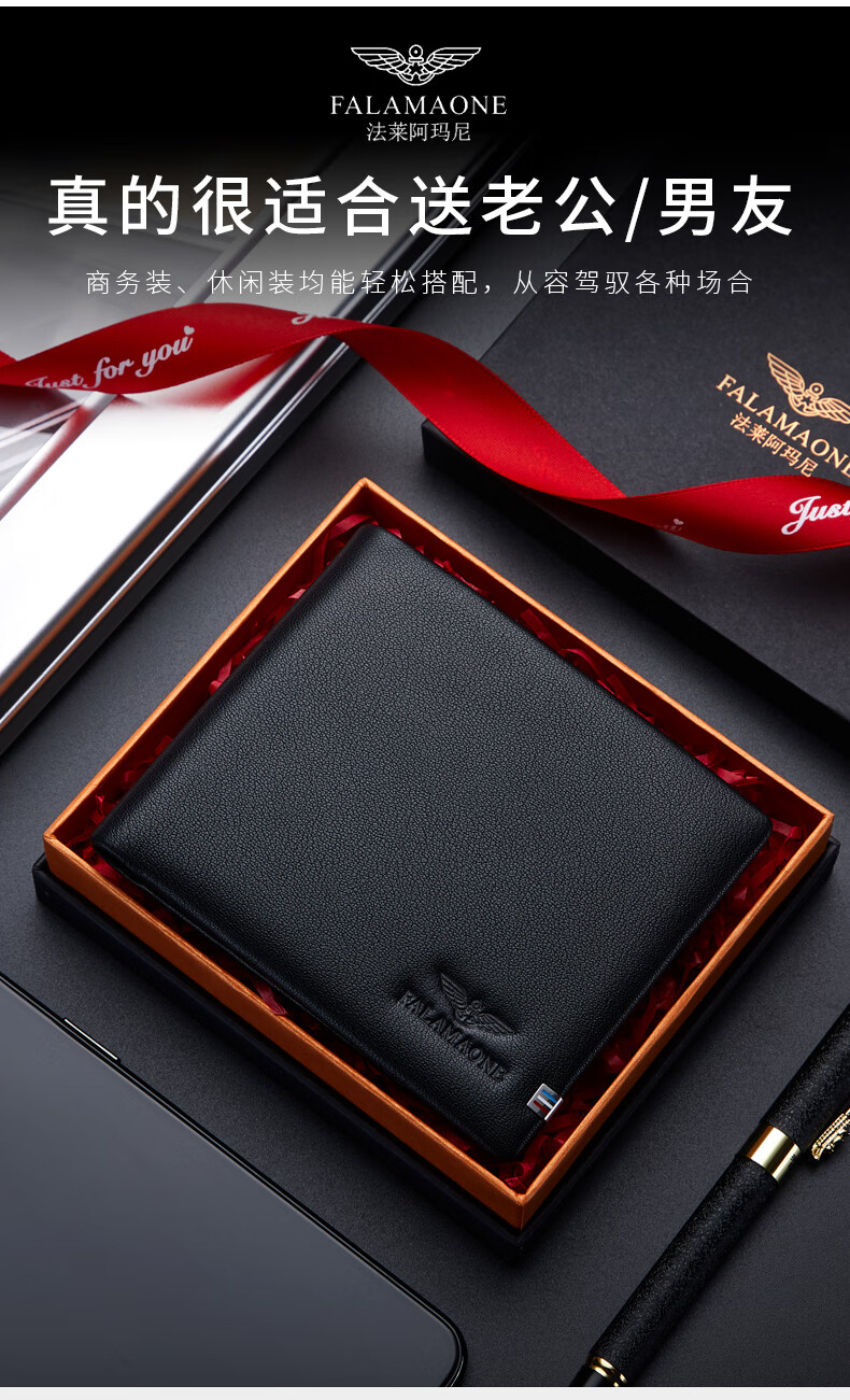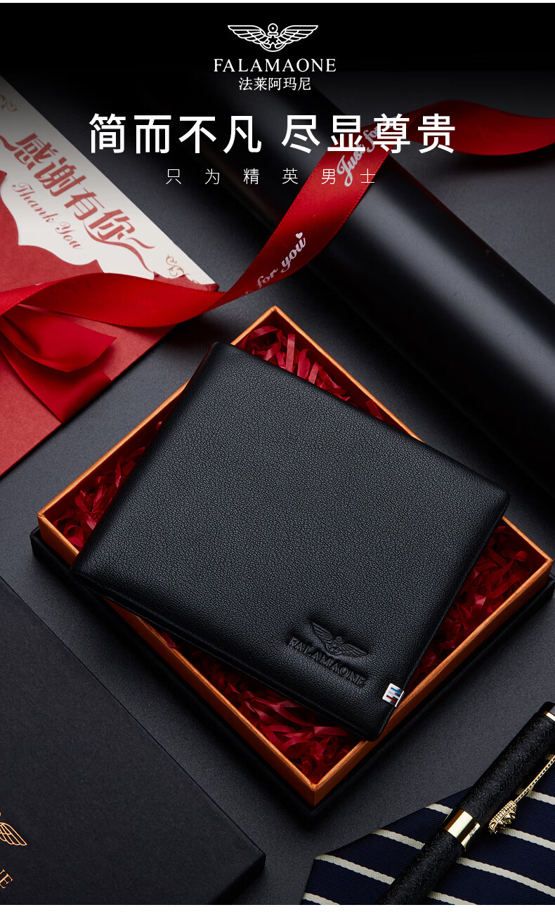法莱阿玛尼短款男士钱包真皮商务头层牛皮钱夹七夕礼物送男朋友老公兄弟朋友 QB202/顺丰空运【专柜礼盒】 代写贺卡打印照片联系客服