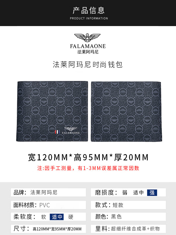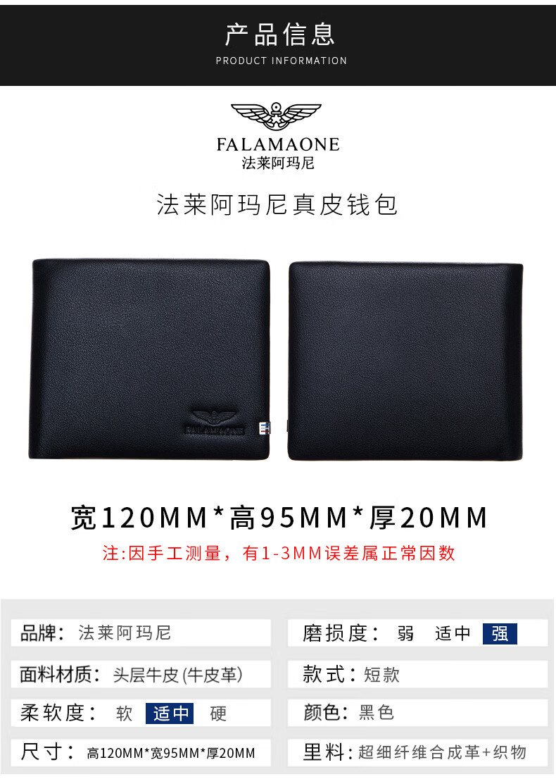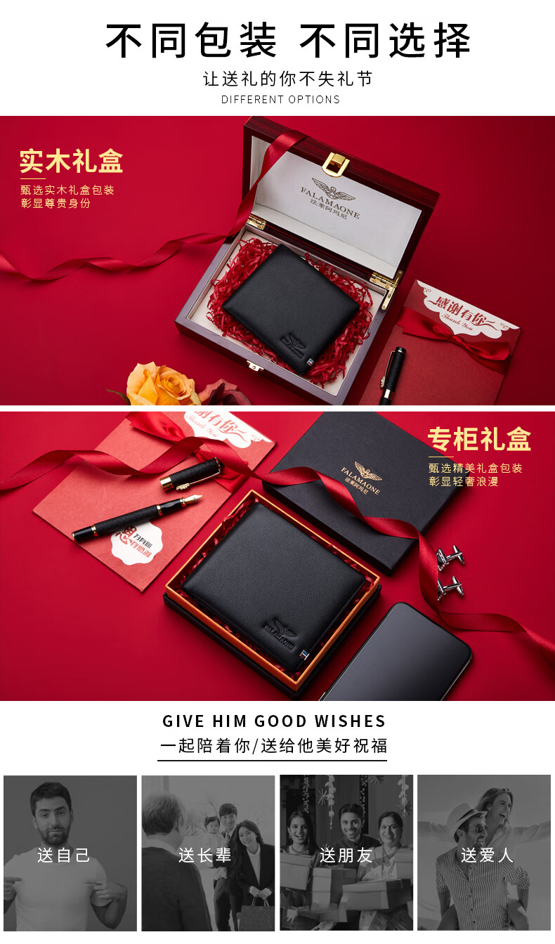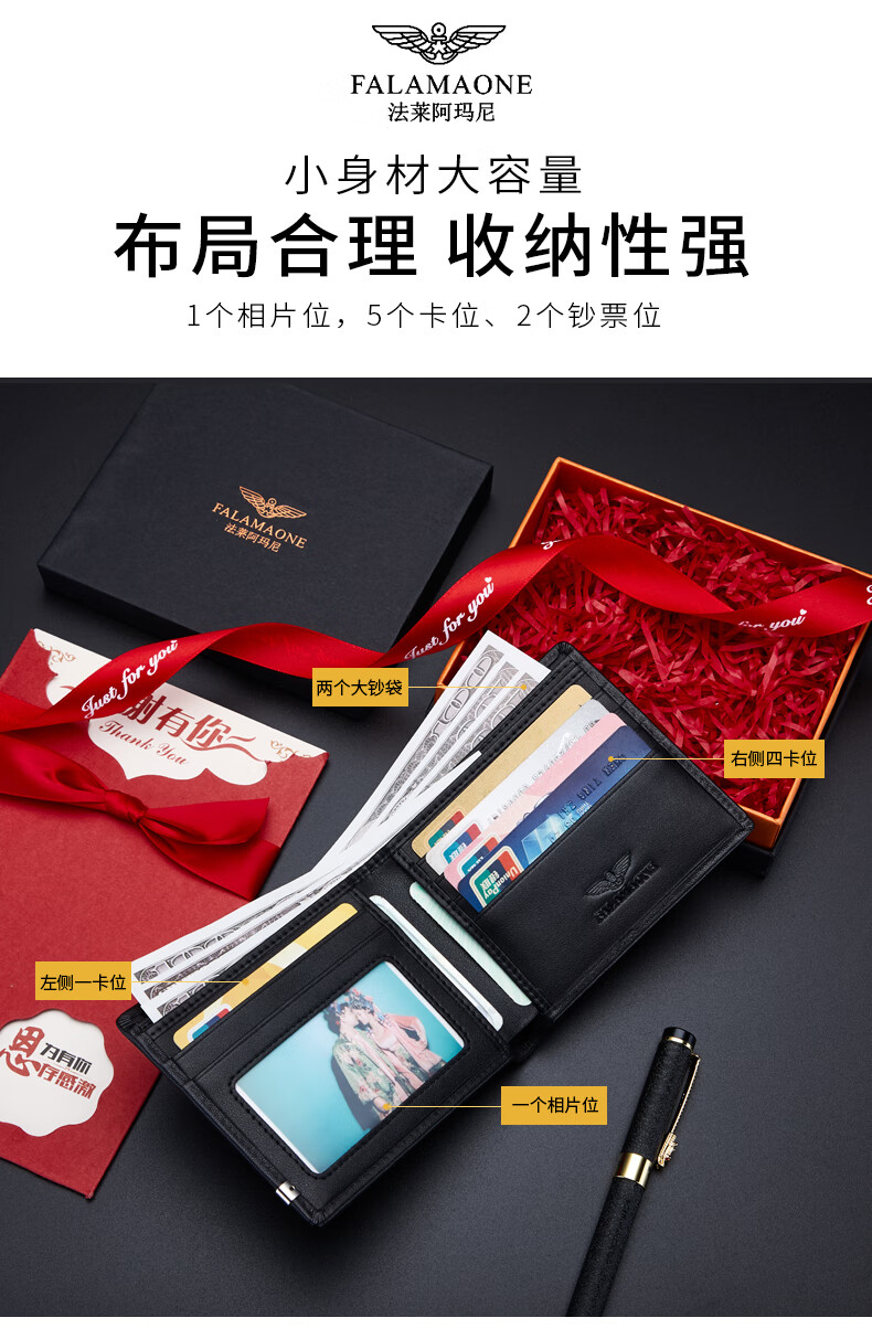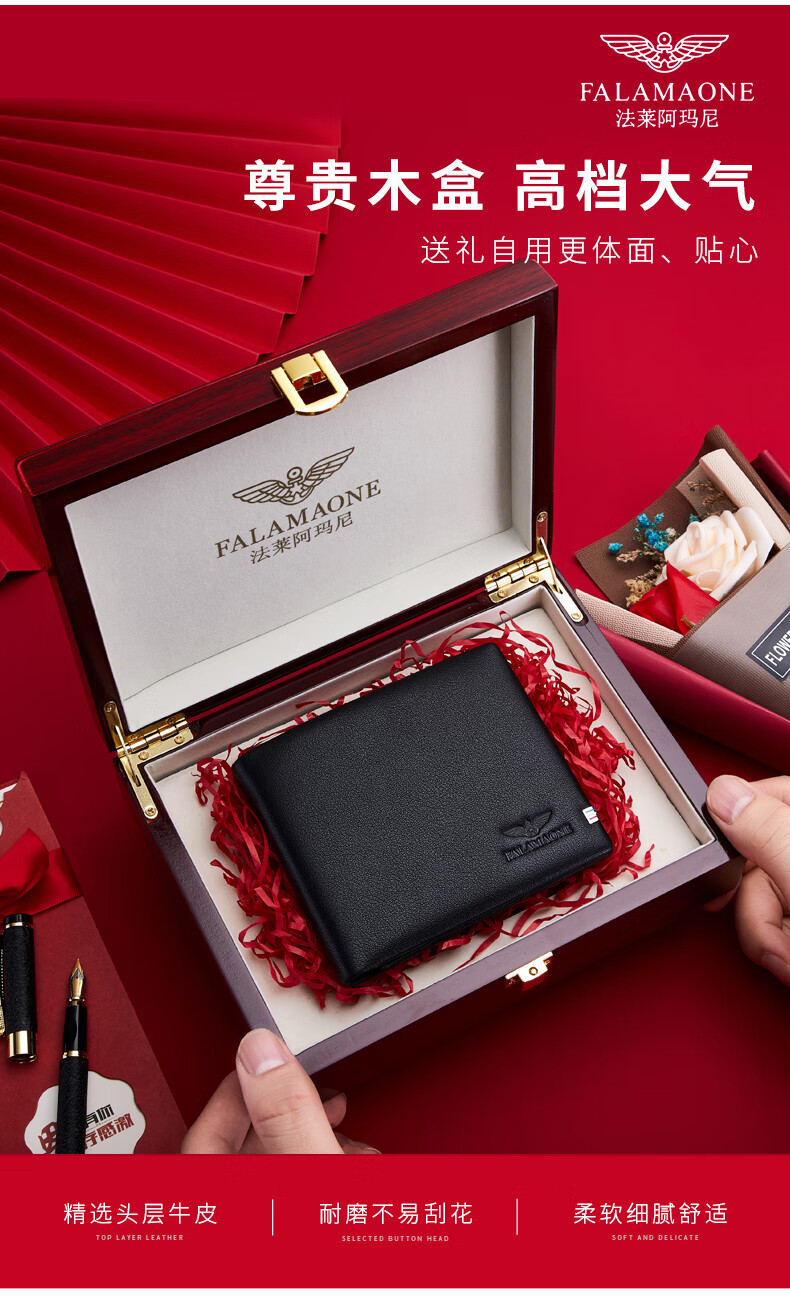 法莱阿玛尼短款男士钱包真皮商务头层牛皮钱夹七夕礼物送男朋友老公兄弟朋友 QB202/顺丰空运【专柜礼盒】 代写贺卡打印照片联系客服