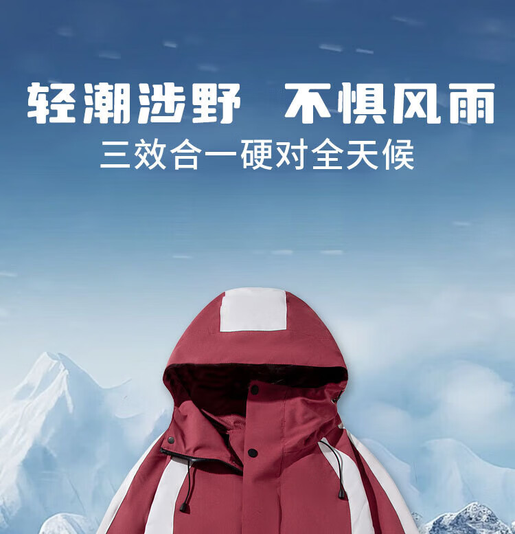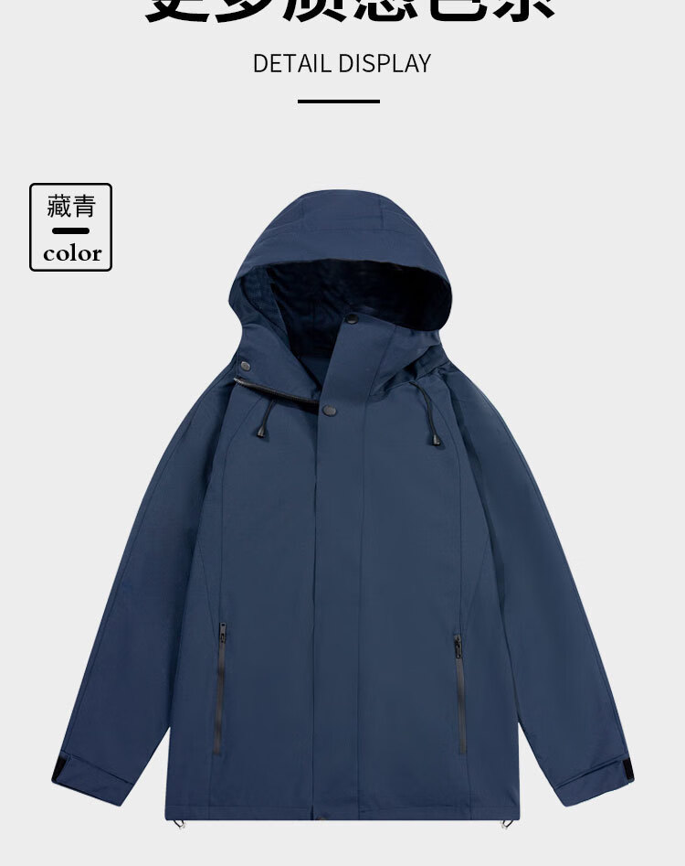 德尔.默克(Delmerk)冲锋上衣男女三合一可拆卸两件套防风登山滑雪外套团购定制 深蓝色三合一水貂绒内胆男女同款 XL