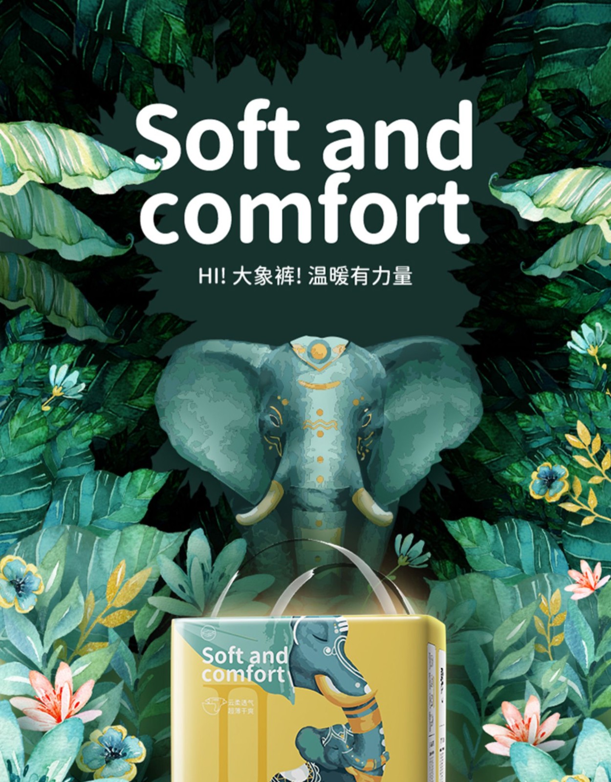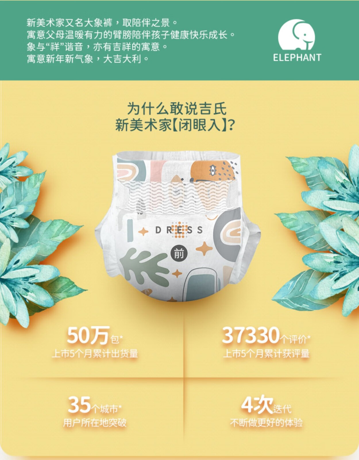 吉氏(DRESS)新美术家超薄大象纸尿裤柔软透气秋冬不闷干爽男女宝宝尿不湿 XL码20片*2包【12-17kg适用】