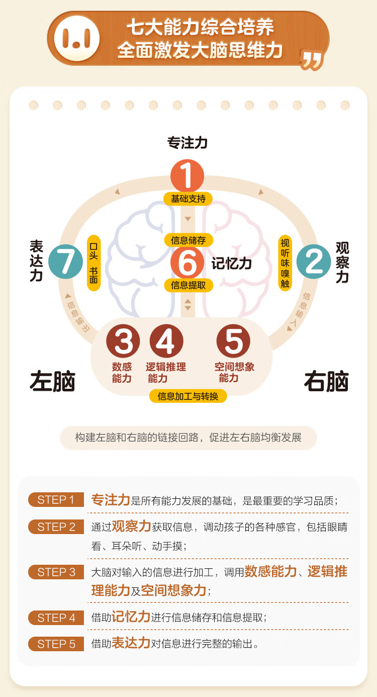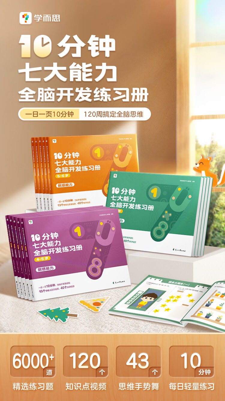 【学而思】10分钟七大能力全脑开发练习册学而思七大能力10分钟全脑开发练习册 儿童思维逻辑训练书幼儿园数学思维启蒙教材书小中大班幼小衔接必备书 全脑开发练习册 3本全套 10分钟七大能力