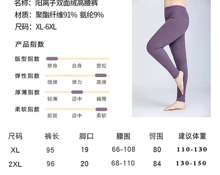 雅鹿女士德绒保暖裤大码高腰加肥加大修身中老年秋裤 黑色 6XL(195-220斤)