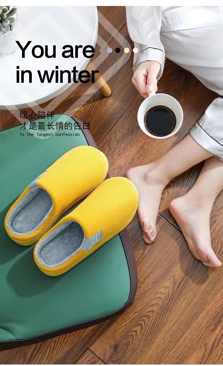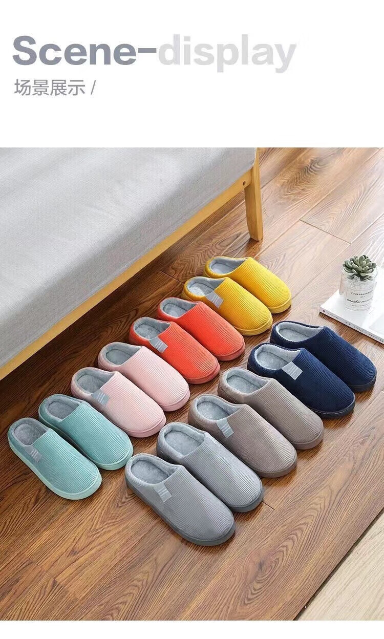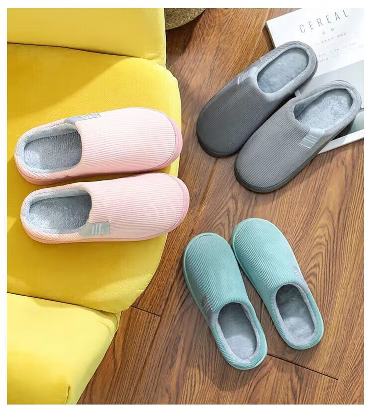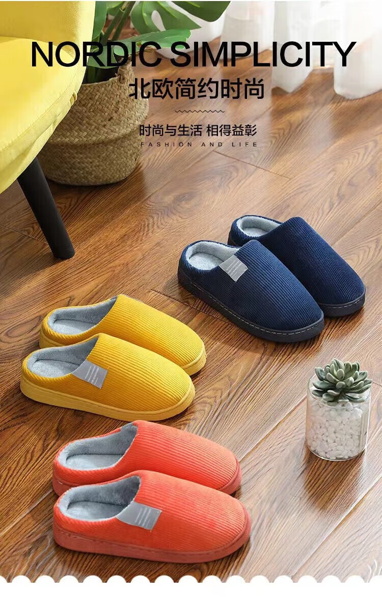 福虹辰棉拖鞋女冬季防滑家居家用居家室内保暖加绒加厚棉拖男ZZ 橘色(条纹棉拖) 36-37 适合35-36