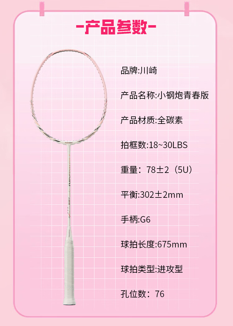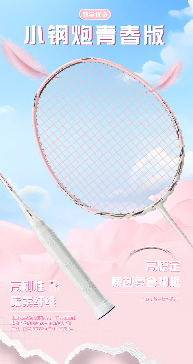 川崎小钢炮全碳素羽毛球拍弓箭5U单拍大学生男女比赛训练耐打羽球拍 小钢炮青春版【布鲁蓝】5U单拍 默认拉线26磅【可联系定制磅数】