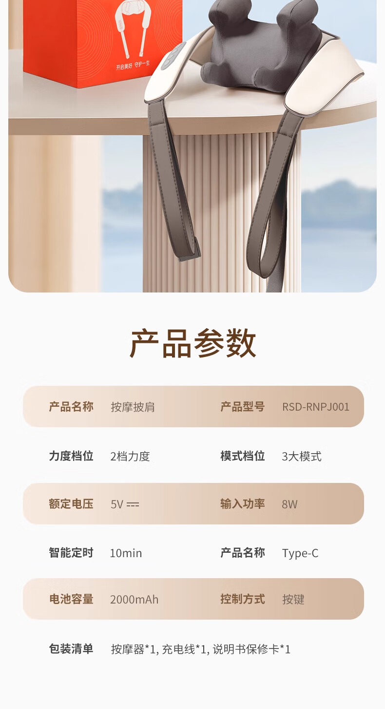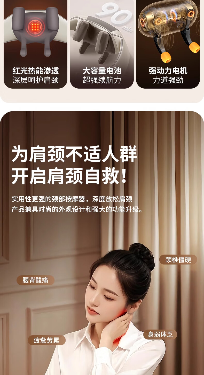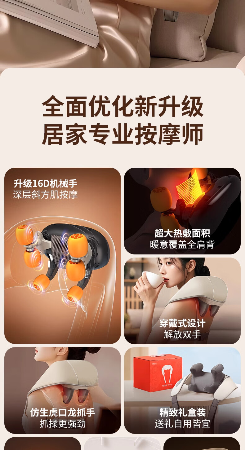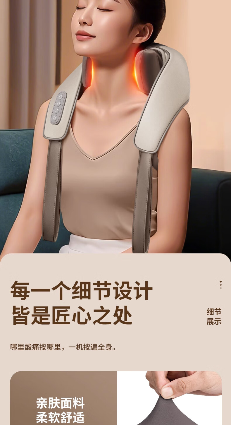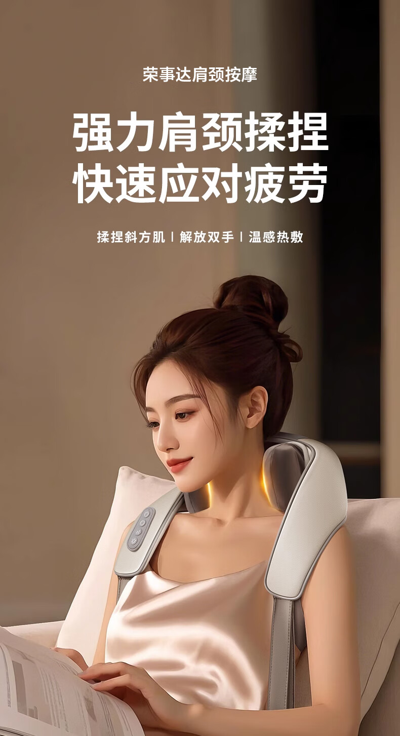 荣事达颈椎按摩器肩颈按摩器颈椎按摩仪颈椎肩颈腰部按摩仪颈部按摩仪腿部 生日礼物女妇女节礼物 【基础款】16D软胶按摩头+长续航