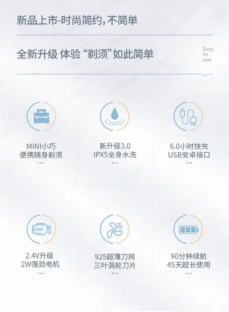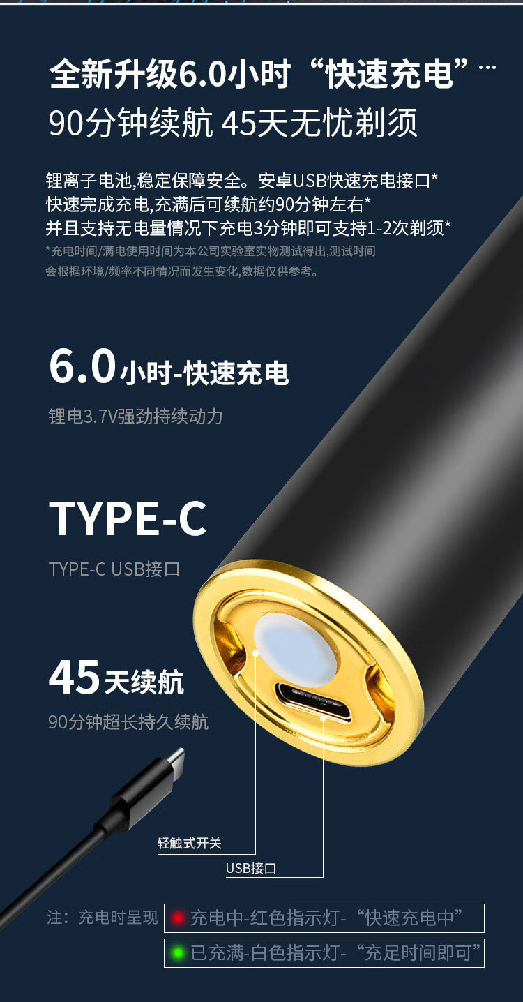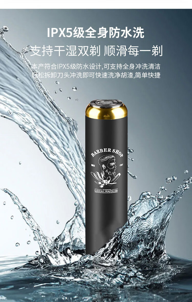 【优选百货】剃须刀男士电动德国精工全身水洗迷你旅行新款便携刮 黑色盘龙ABS剃须刀-新款