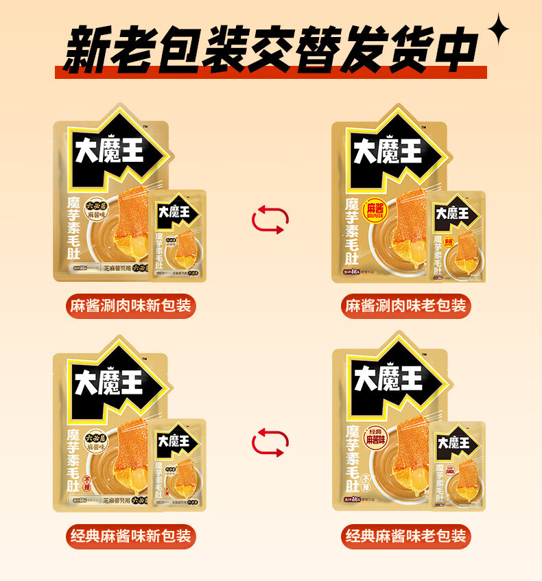 盐津铺子大魔王Q爽魔芋爽麻酱味麻辣素毛肚火锅零食小吃休闲 大礼包解馋 麻酱不辣+麻酱涮肉(共450g/50包)