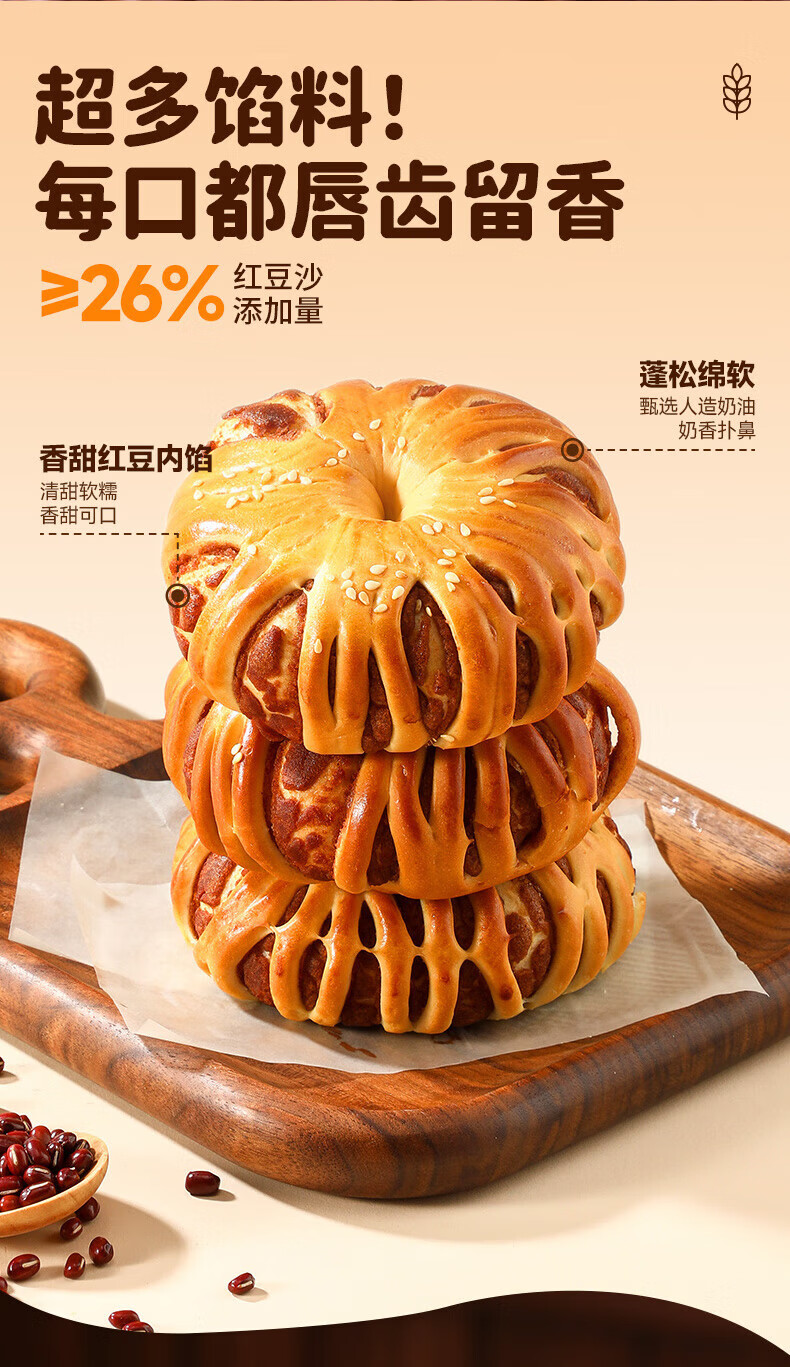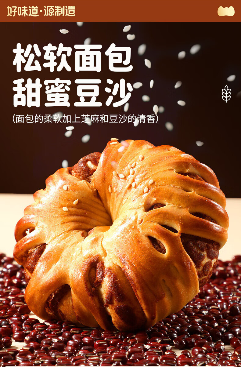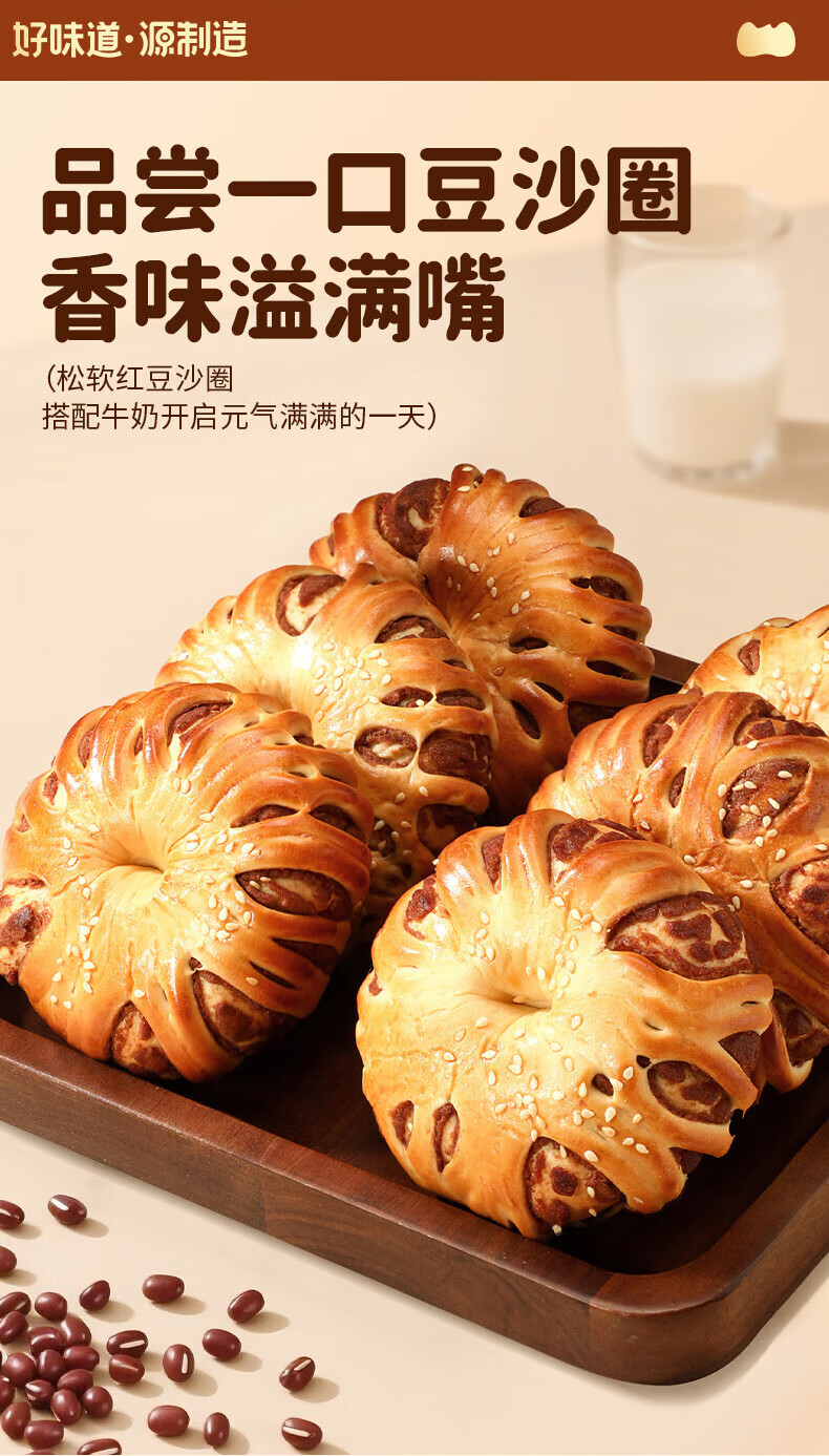 味滋源豆沙圈面包传统糕点老式红豆沙夹心面包怀旧休闲零食点心办公早餐 豆沙圈面包350g*3箱