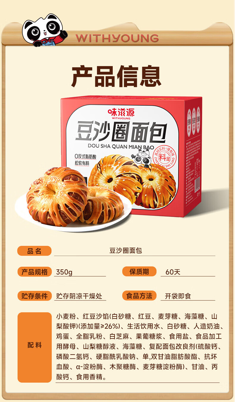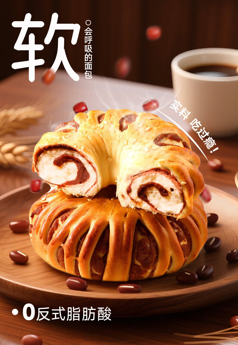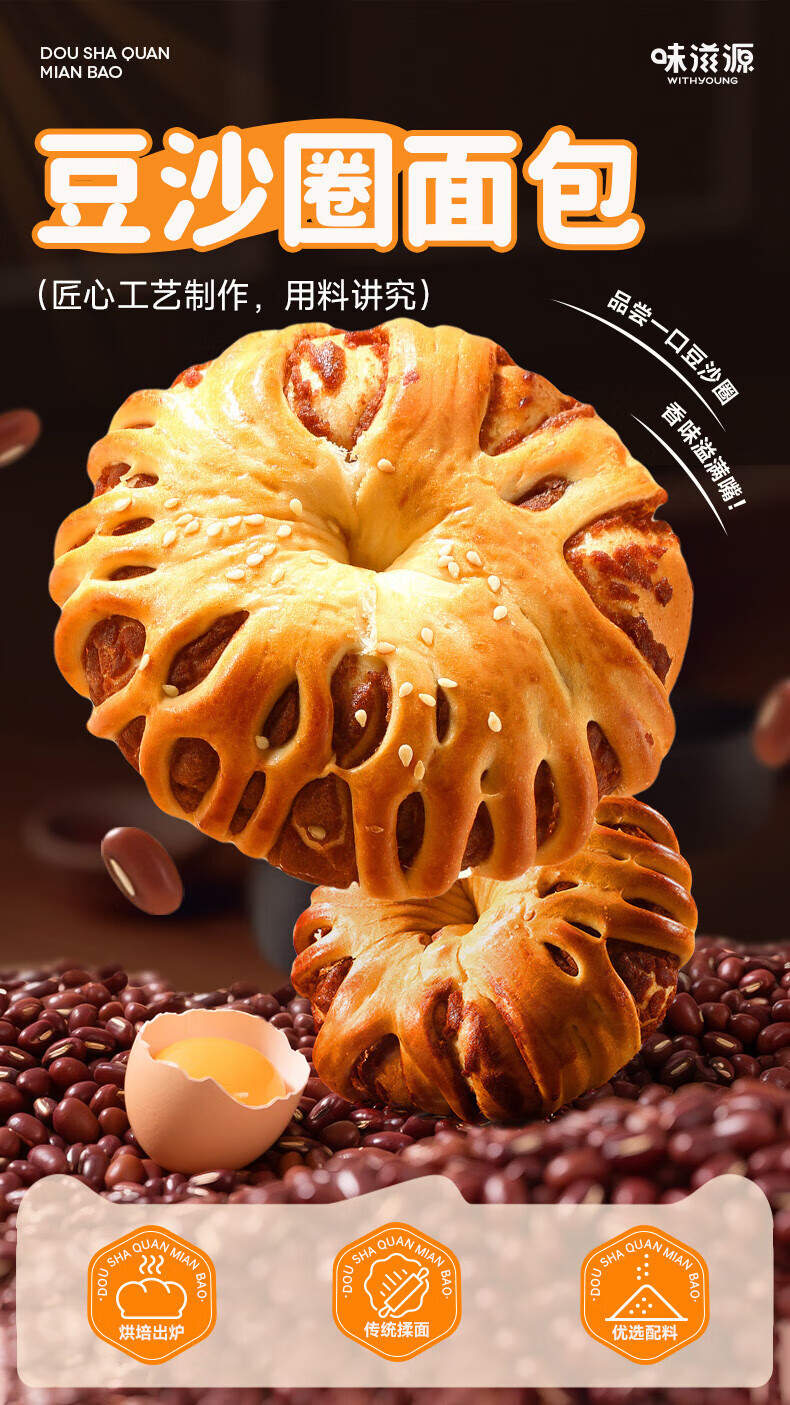味滋源豆沙圈面包传统糕点老式红豆沙夹心面包怀旧休闲零食点心办公早餐 豆沙圈面包350g*3箱