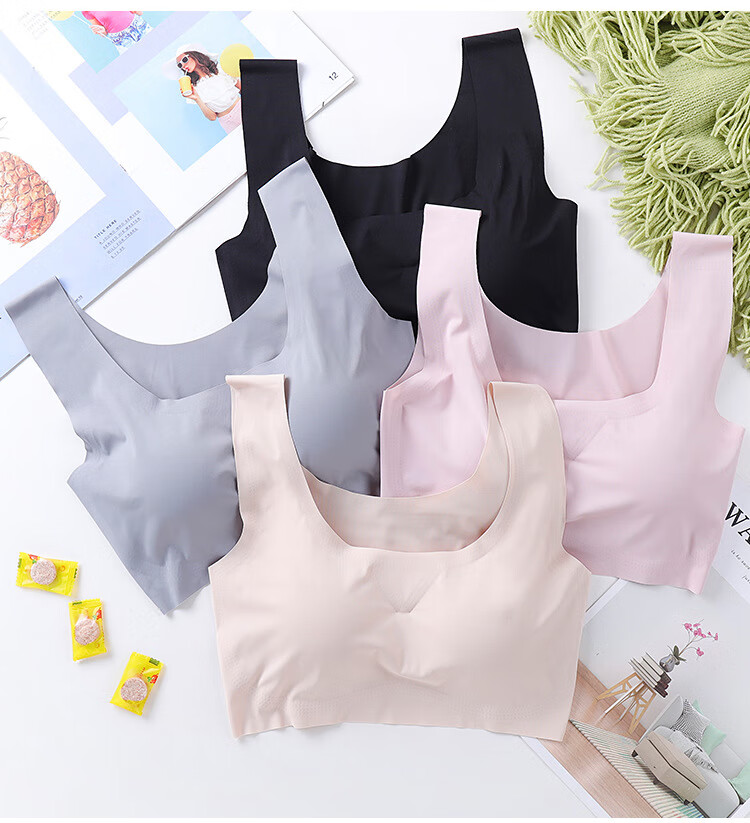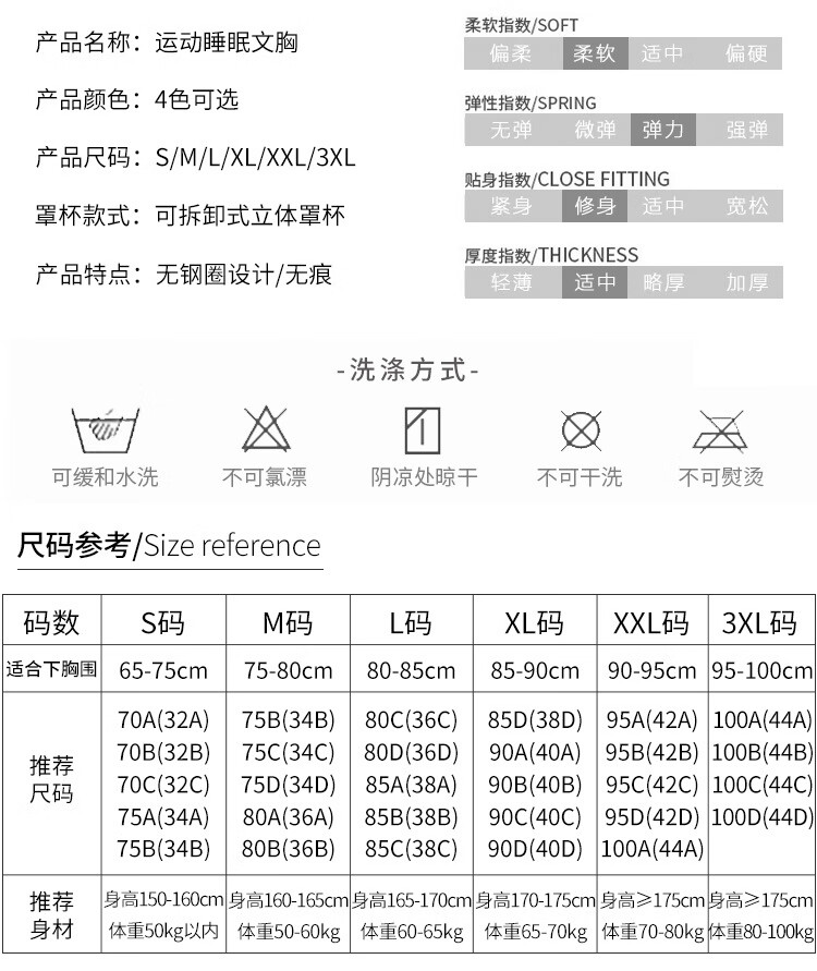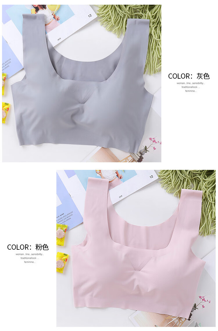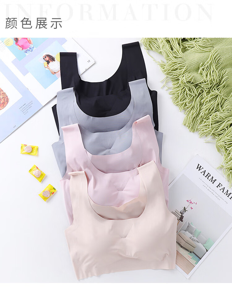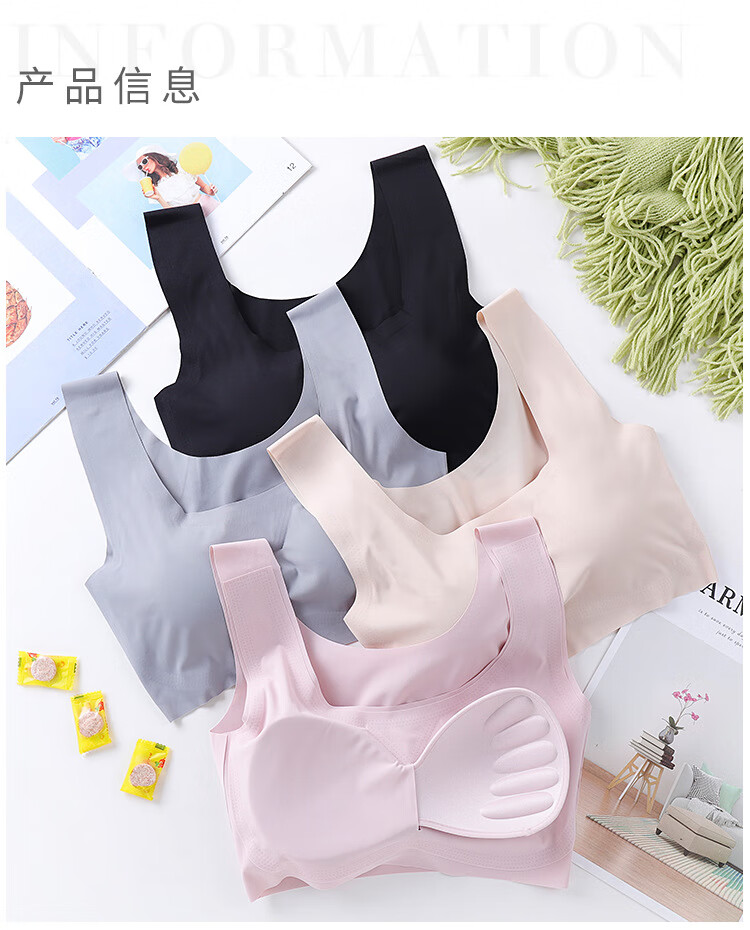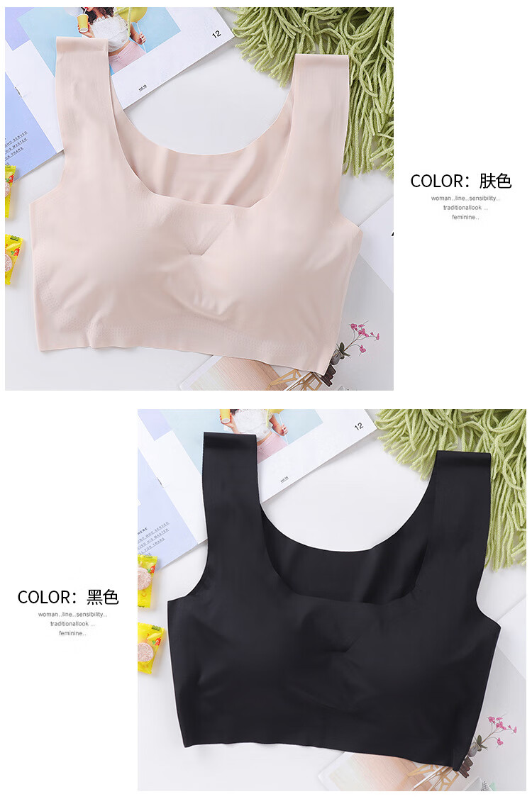 【现货直发】文胸罩无钢圈一片式大码胖无痕运动内衣女 黑色 S (95斤以下