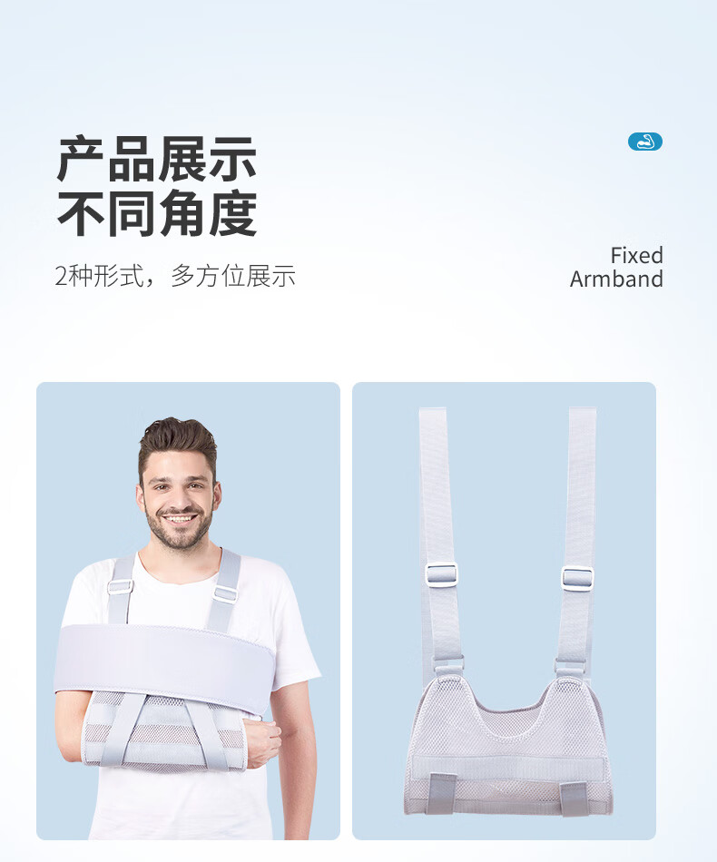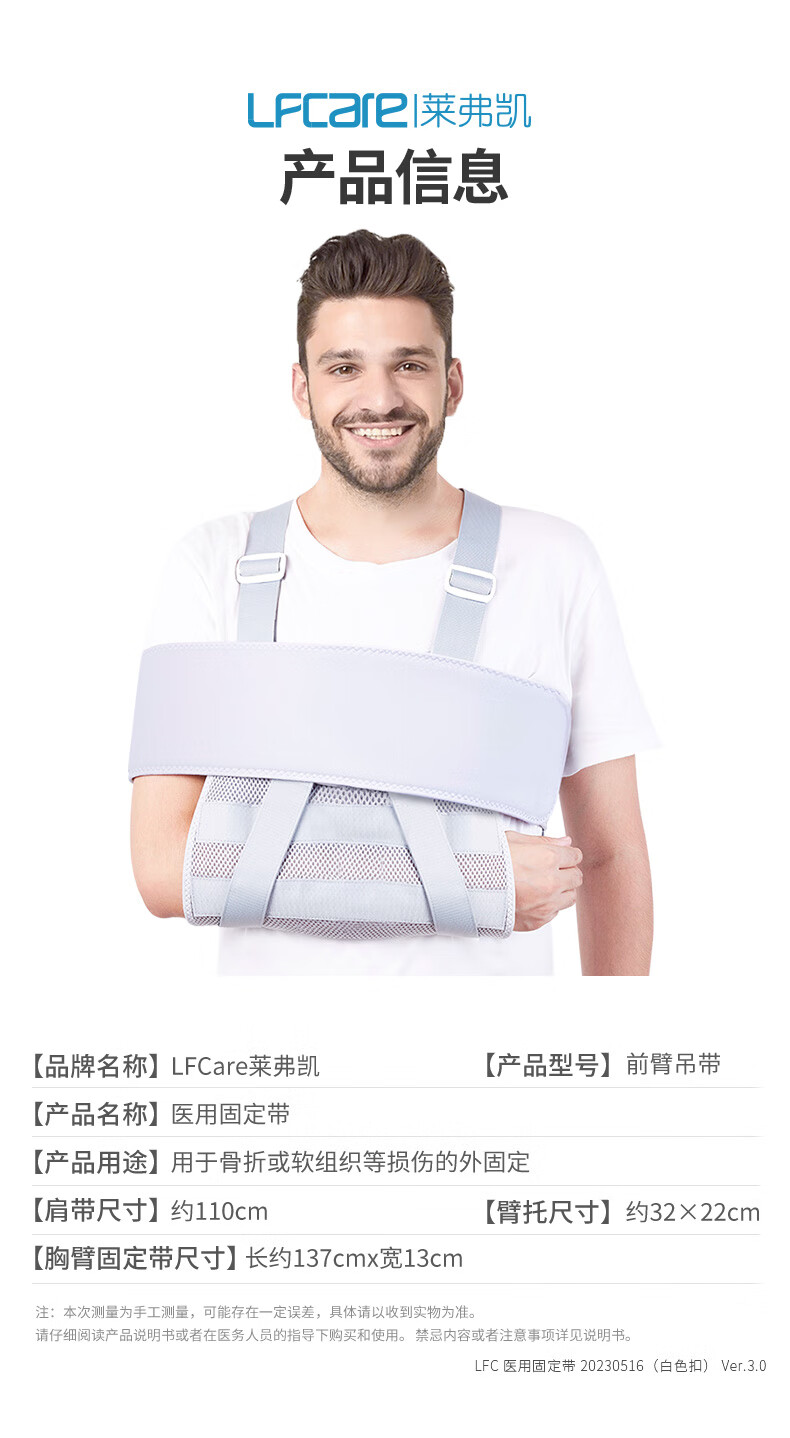 莱弗凯【成人手臂骨折吊带】前臂固定带 胳膊固定护具 手腕肘关节支具 灰色