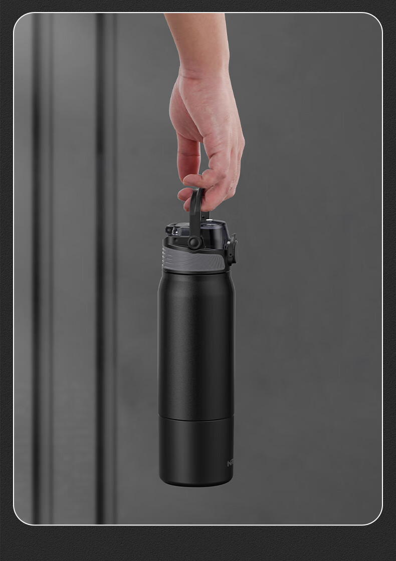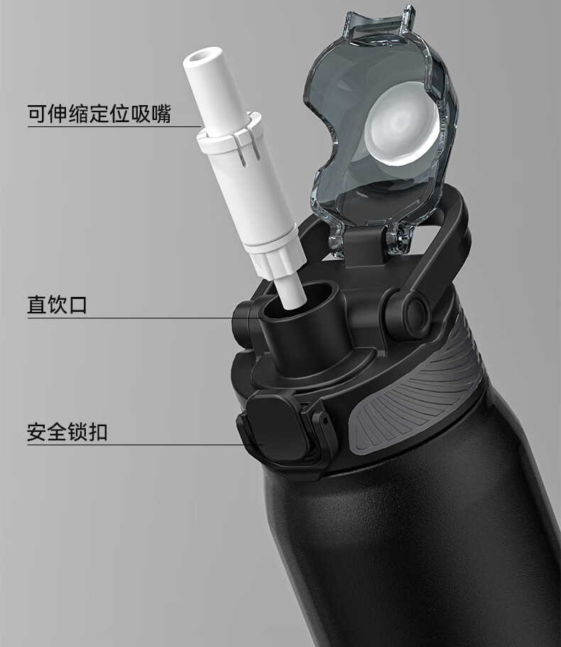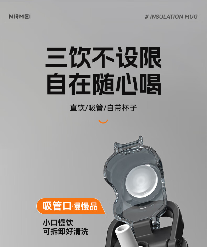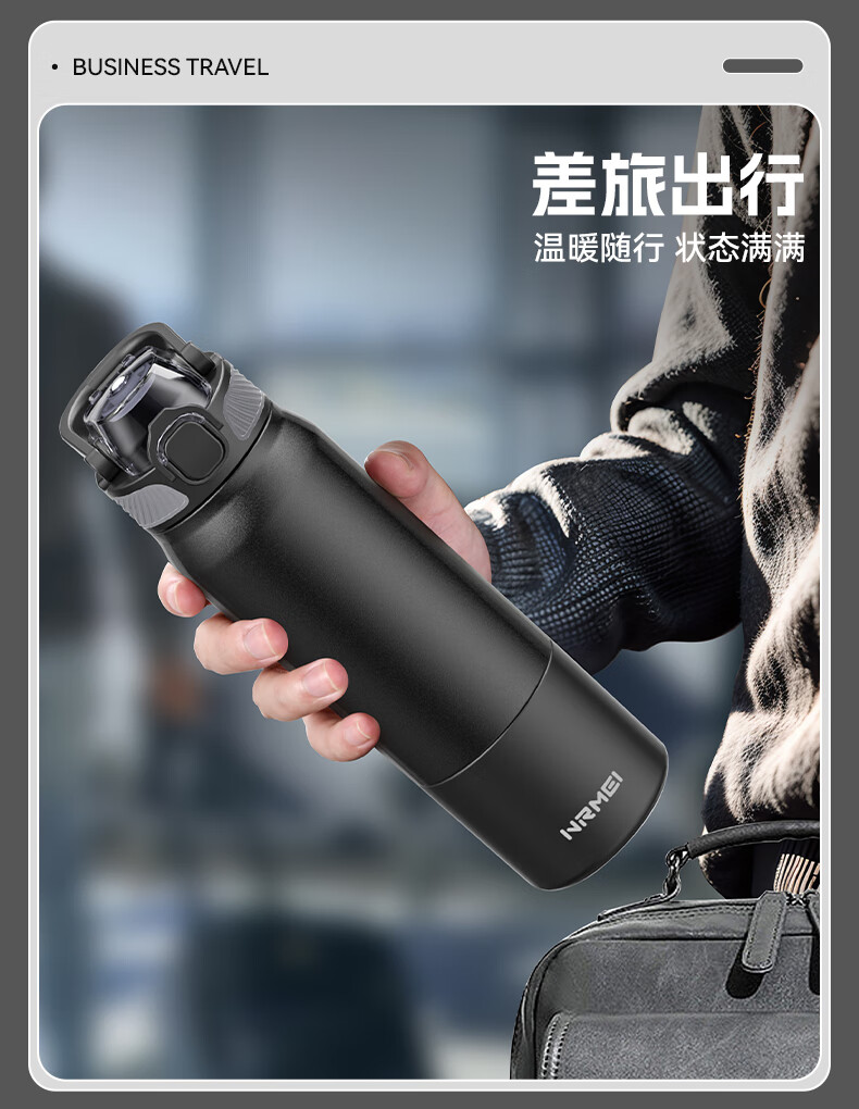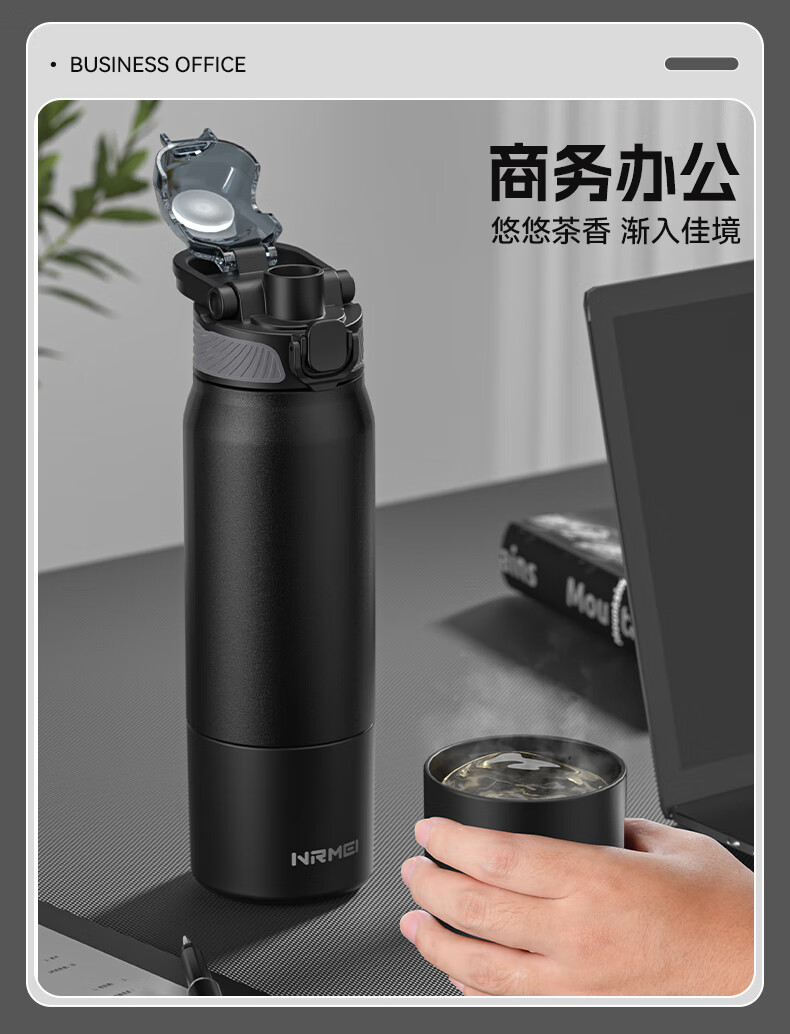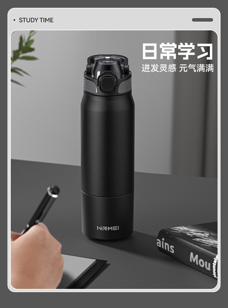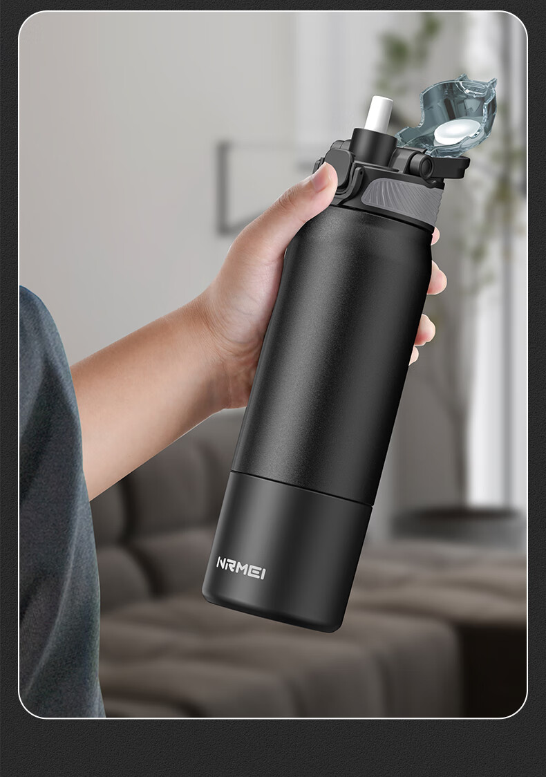 恩尔美(nRMEi)保温杯男女大容量316不锈钢吸管水杯学生便携车载喝水杯子 黑色800ML【抗菌316/旋转分享盖】