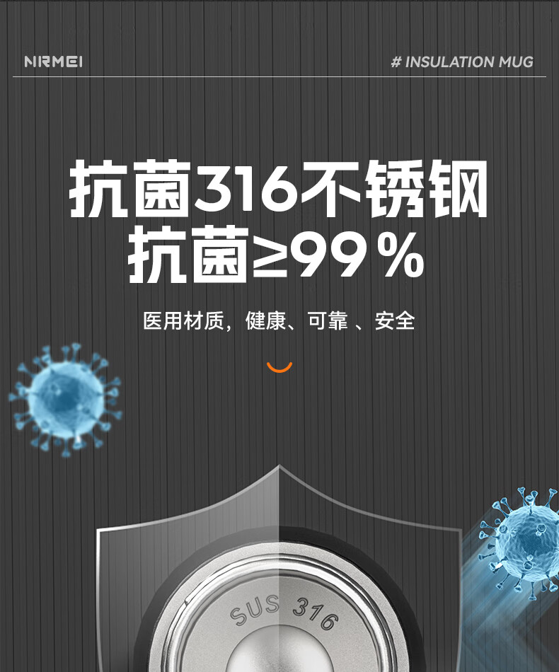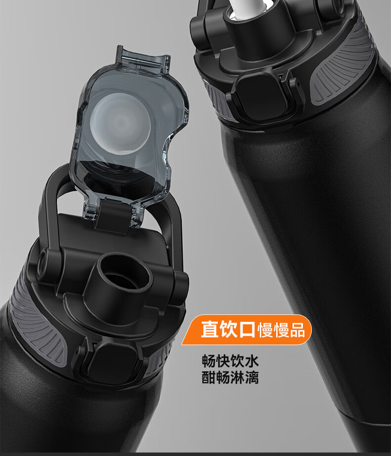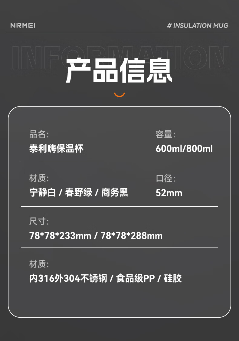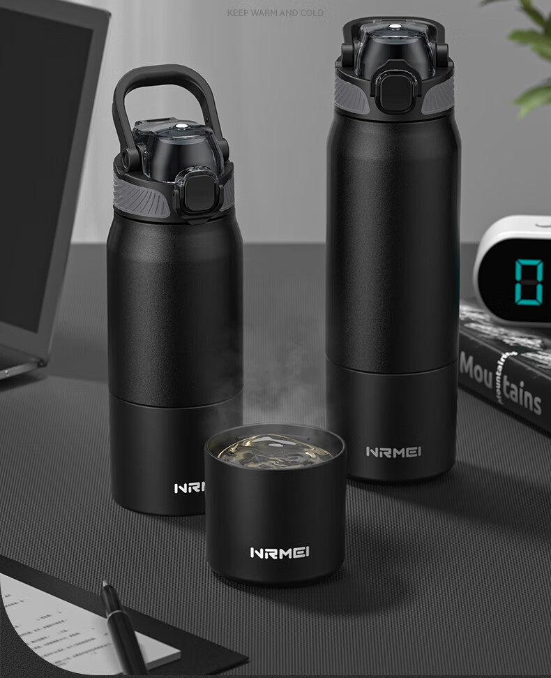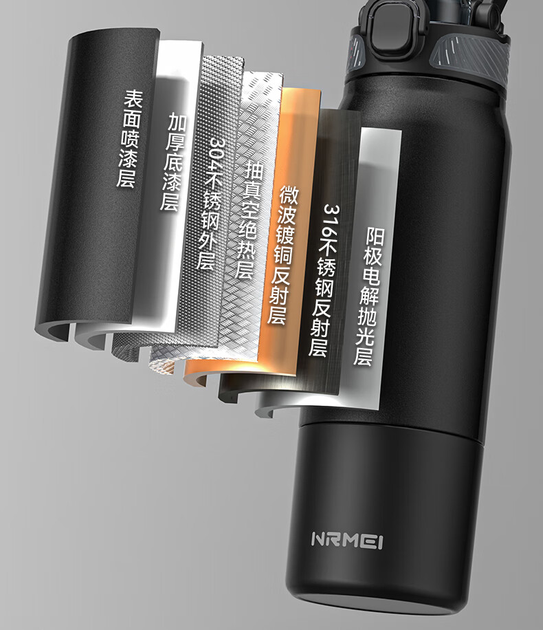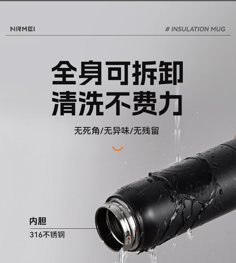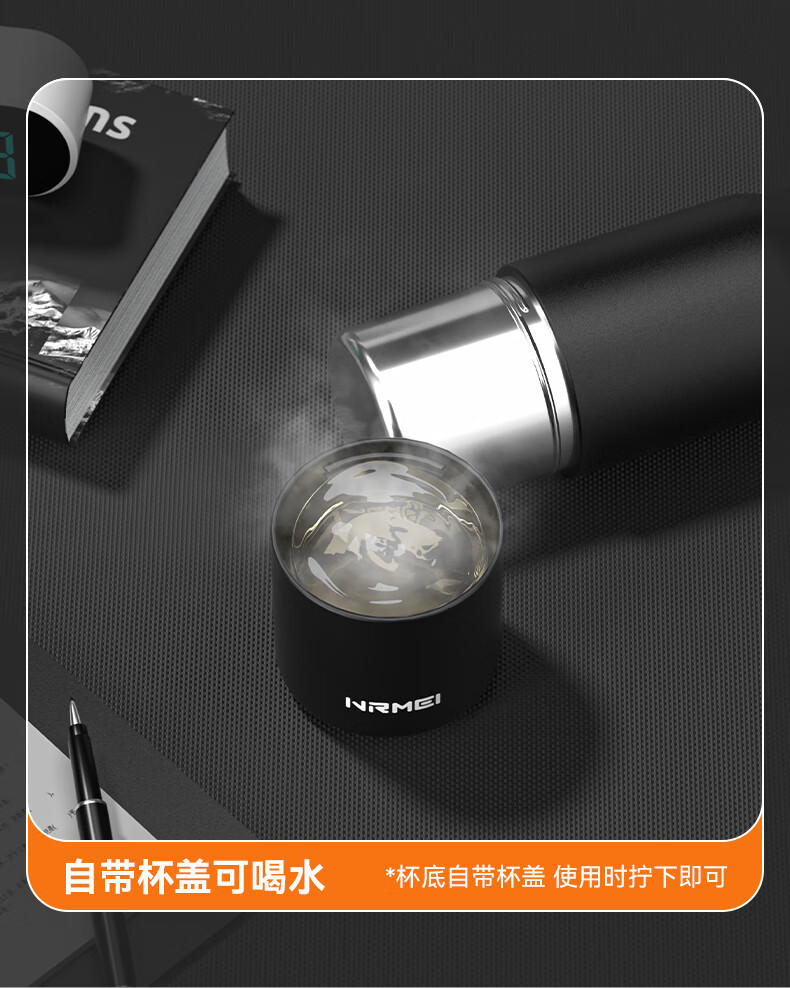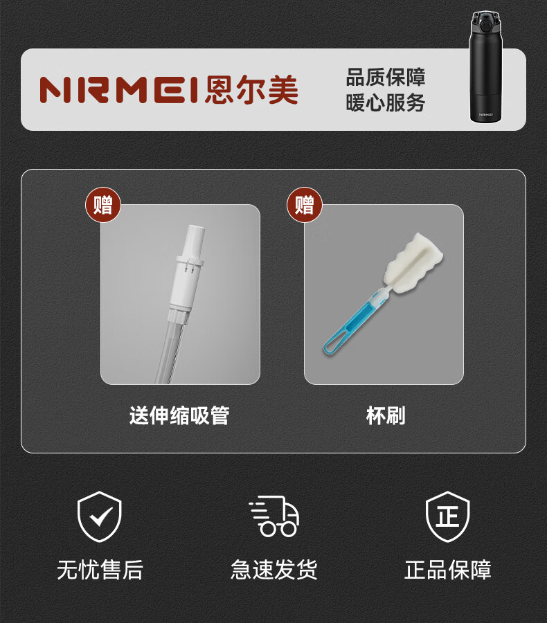 恩尔美(nRMEi)保温杯男女大容量316不锈钢吸管水杯学生便携车载喝水杯子 黑色800ML【抗菌316/旋转分享盖】