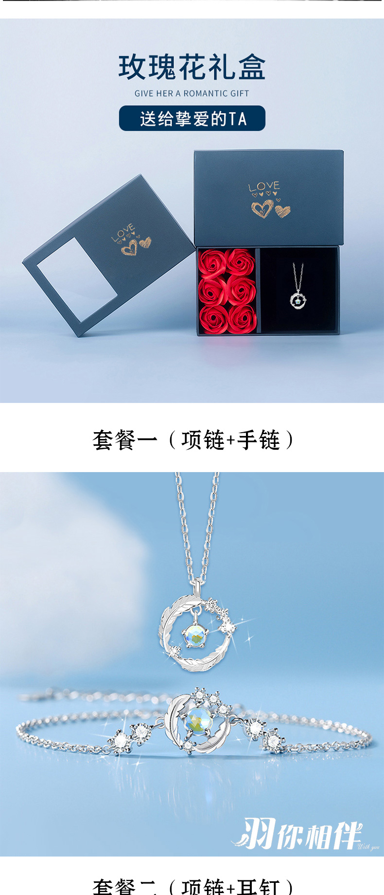 缔晶浅羽银项链女高级感轻奢2025新款吊坠生日礼物送女朋友锁骨链首饰 【浅羽项链】玫瑰礼盒-D1227