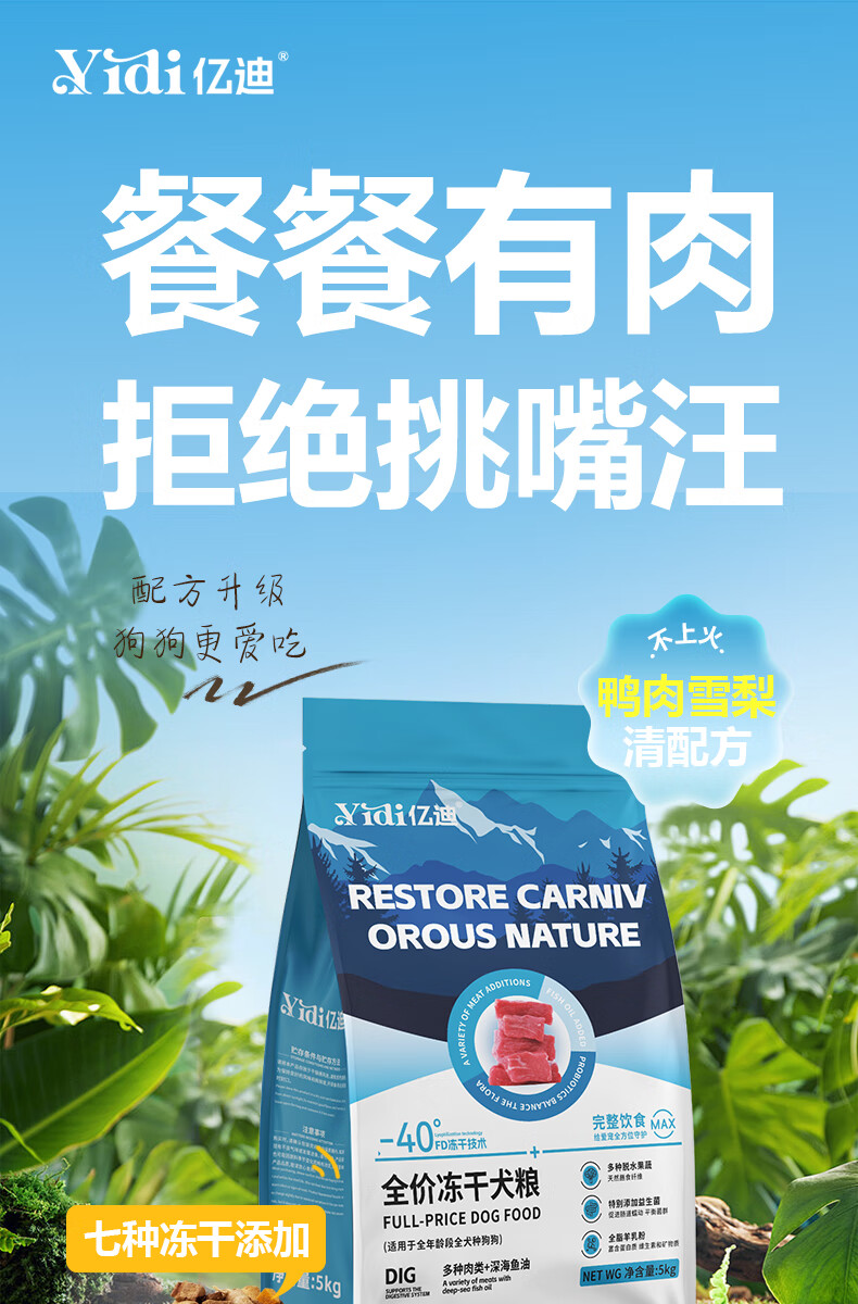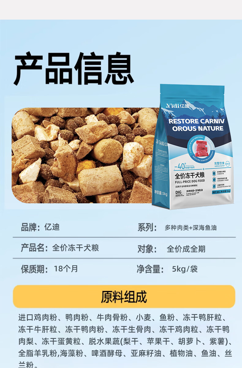 亿迪狗粮冻干成犬幼犬全价生骨肉金毛泰迪5kg中小型犬全阶段通用10斤