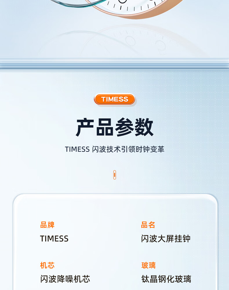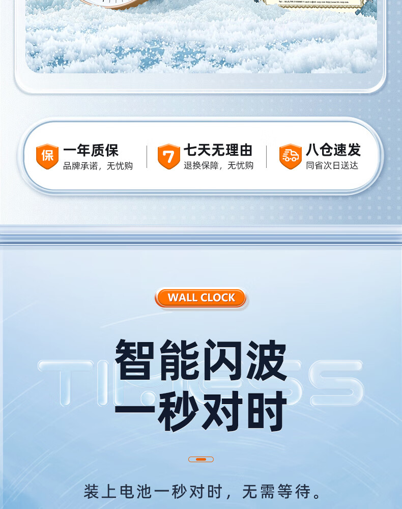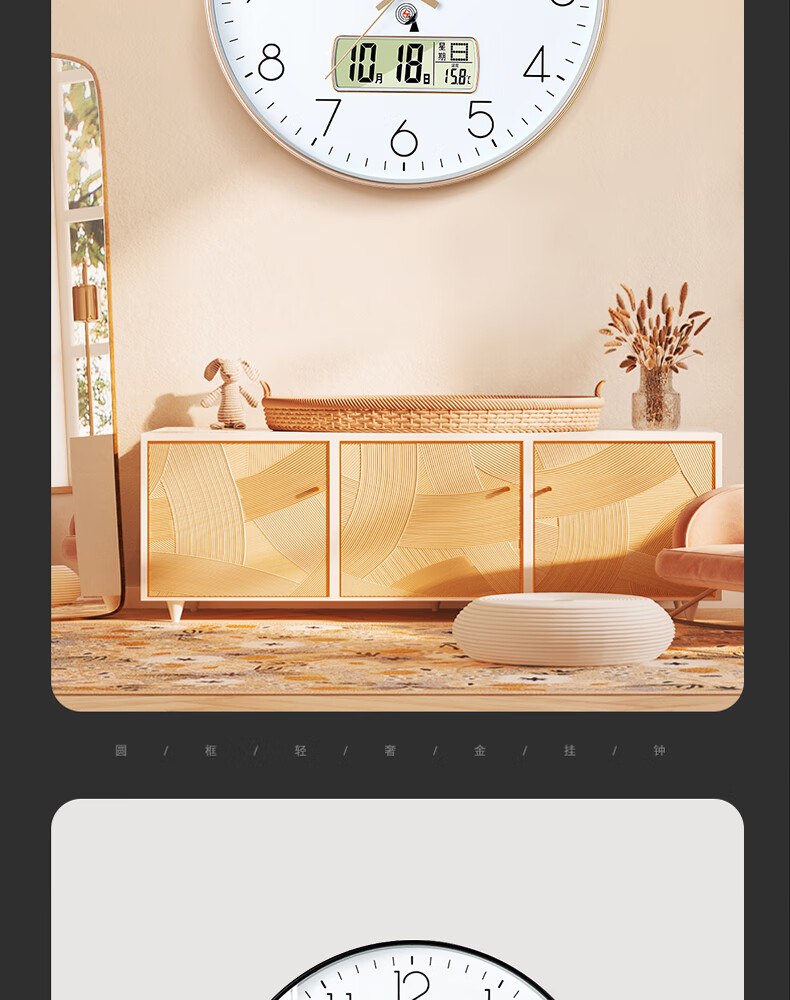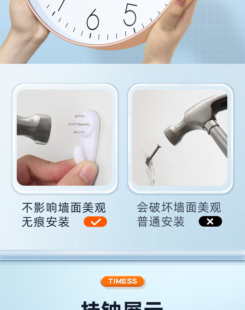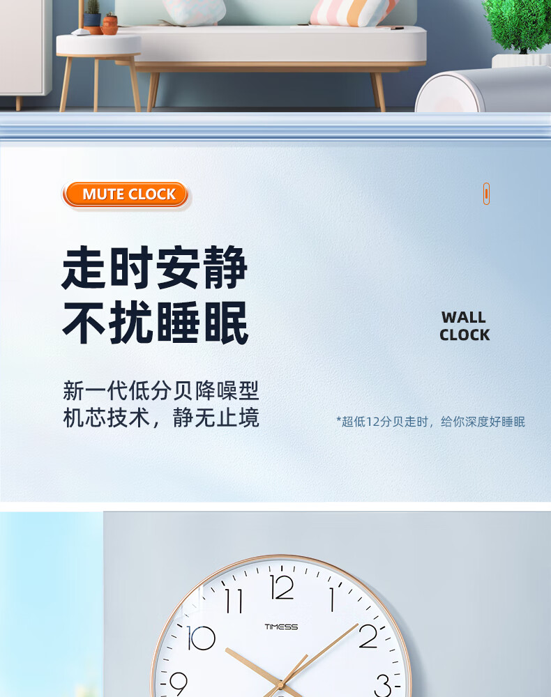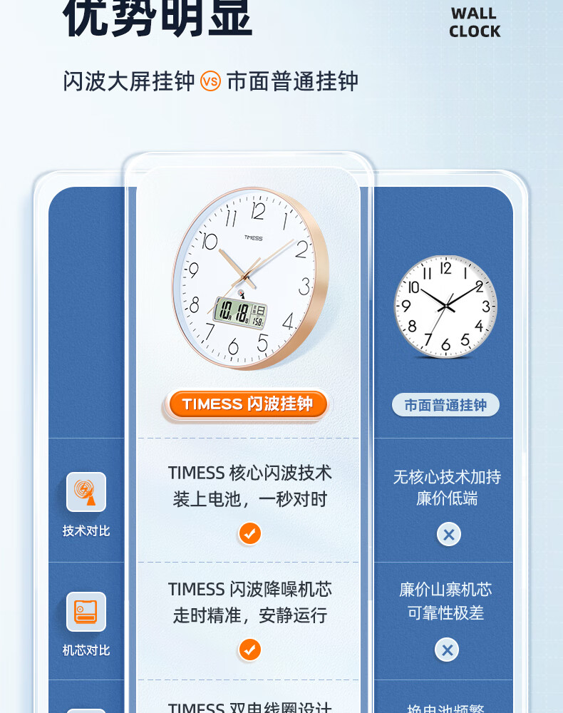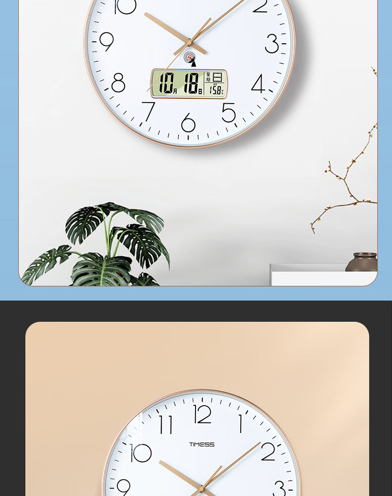 Timess电波钟自动对时挂钟客厅钟表2025新款温度日历免打孔表挂墙35cm