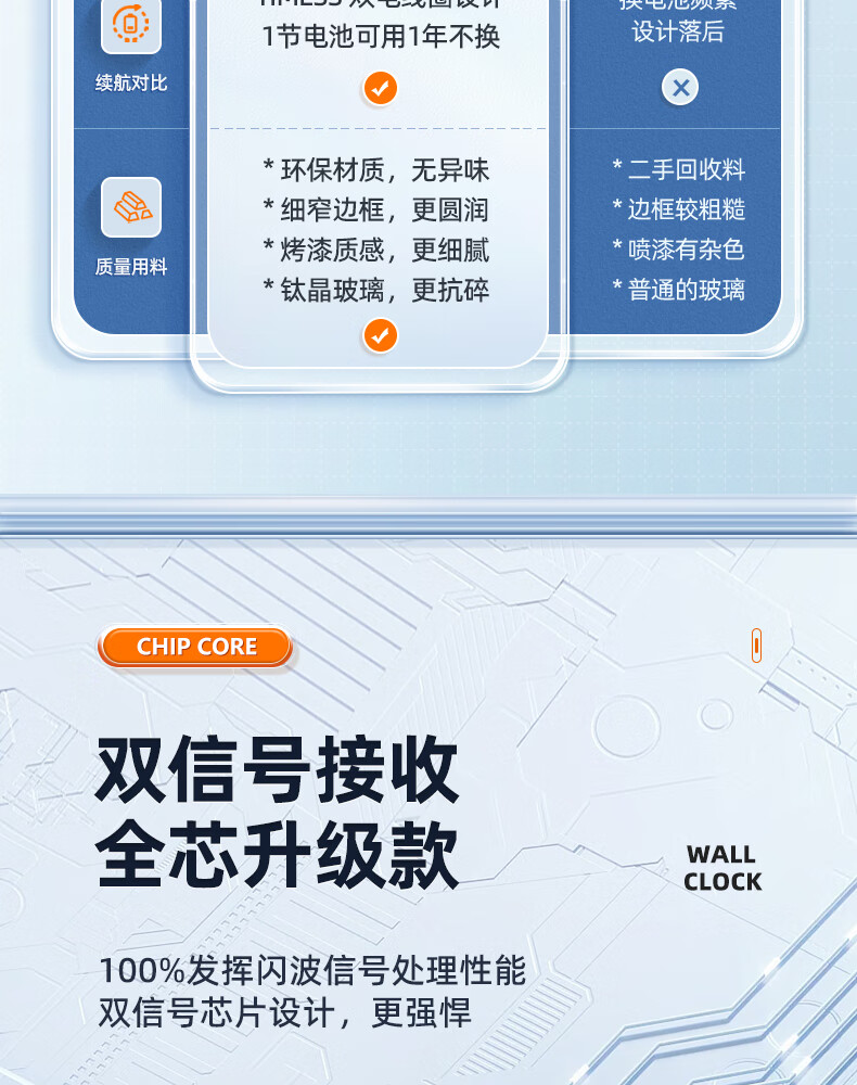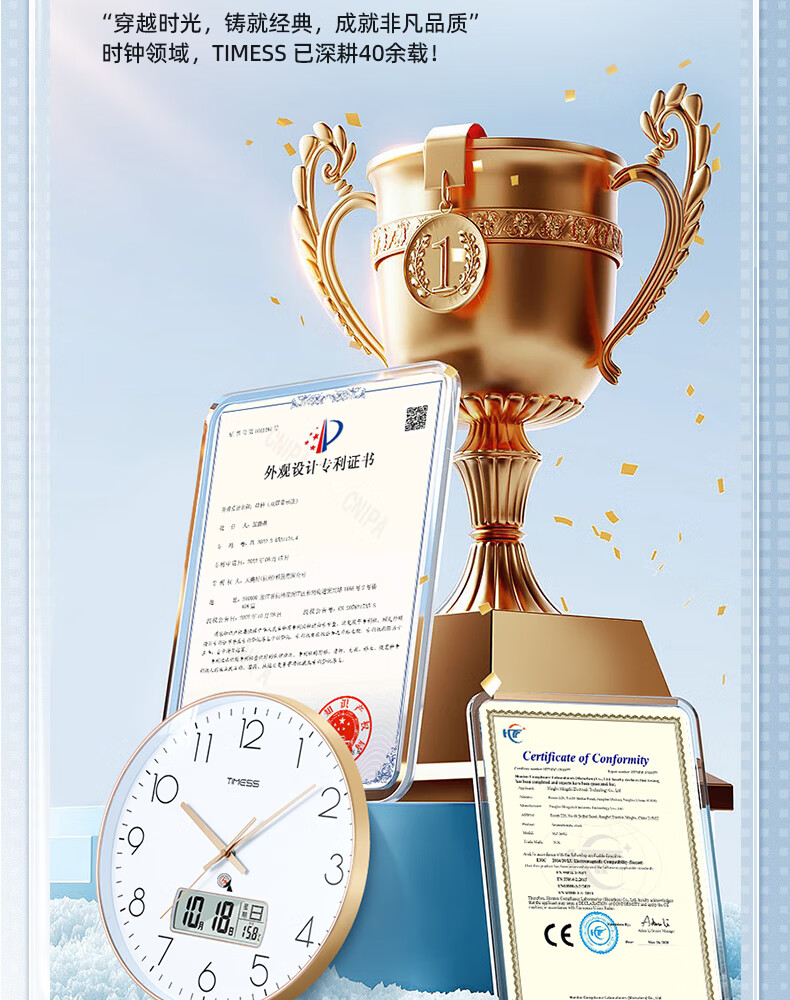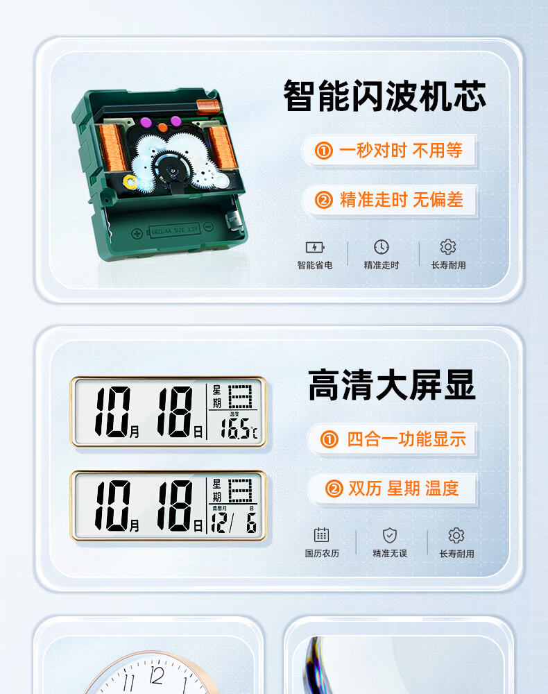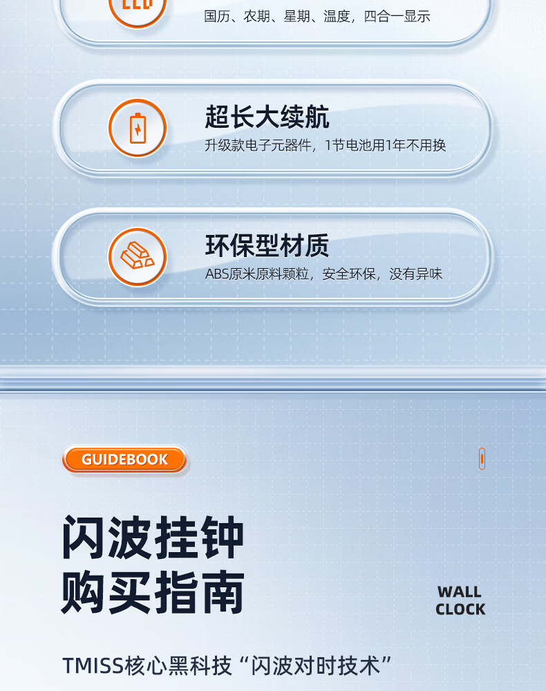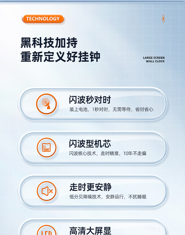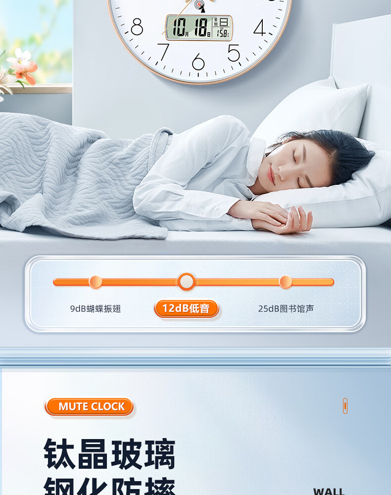 Timess电波钟自动对时挂钟客厅钟表2025新款温度日历免打孔表挂墙35cm