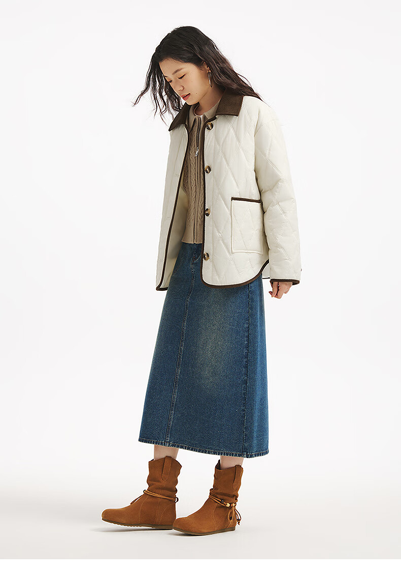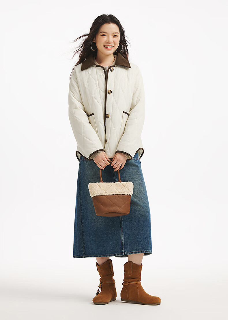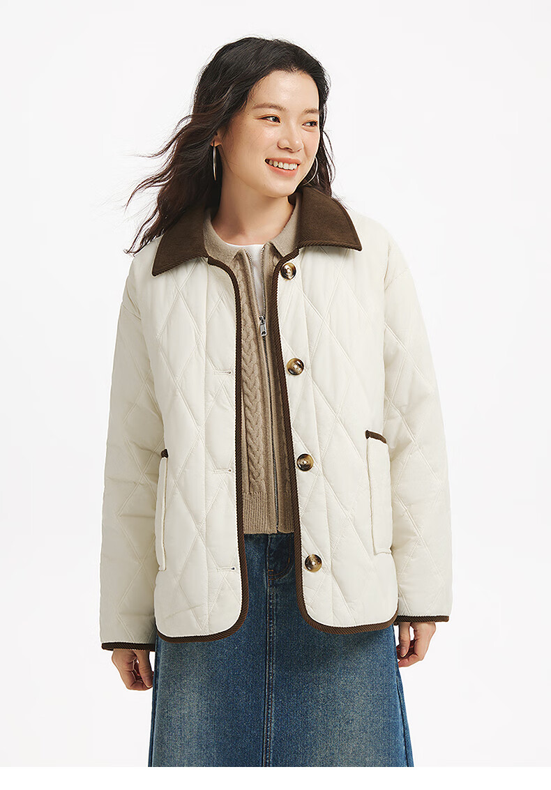 热风(Hotwind)女士夹棉外套棉服2025年冬季新款保暖菱格绗缝棉服巴恩风外套 03米色 M
