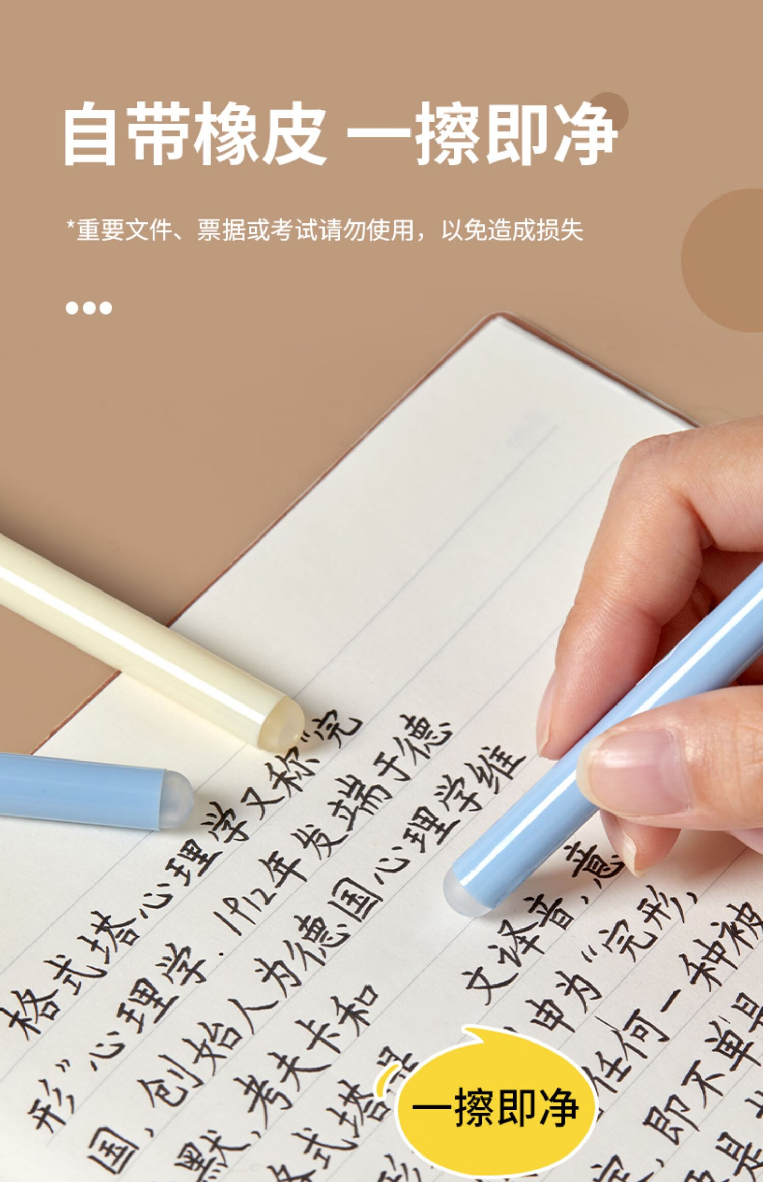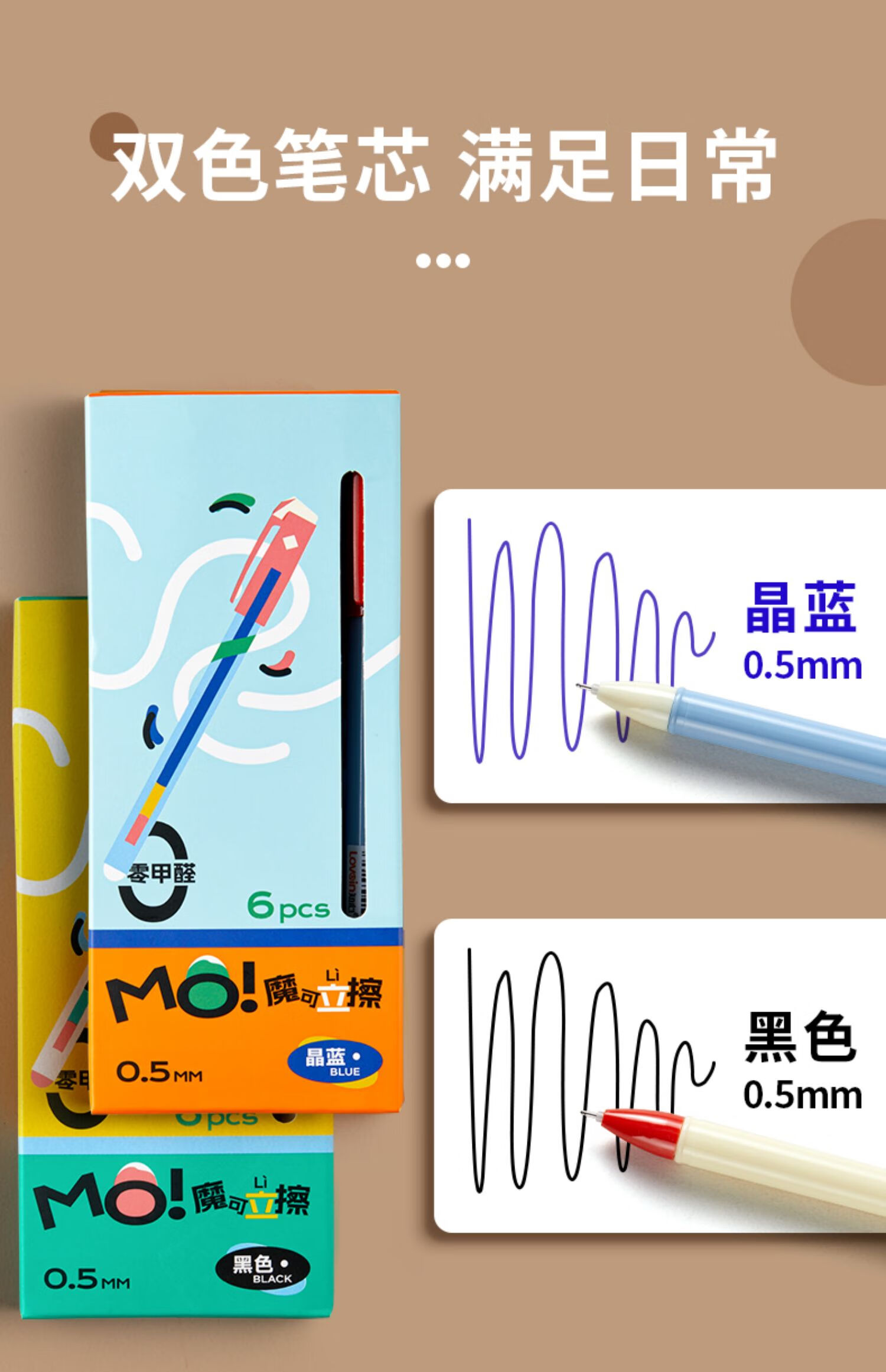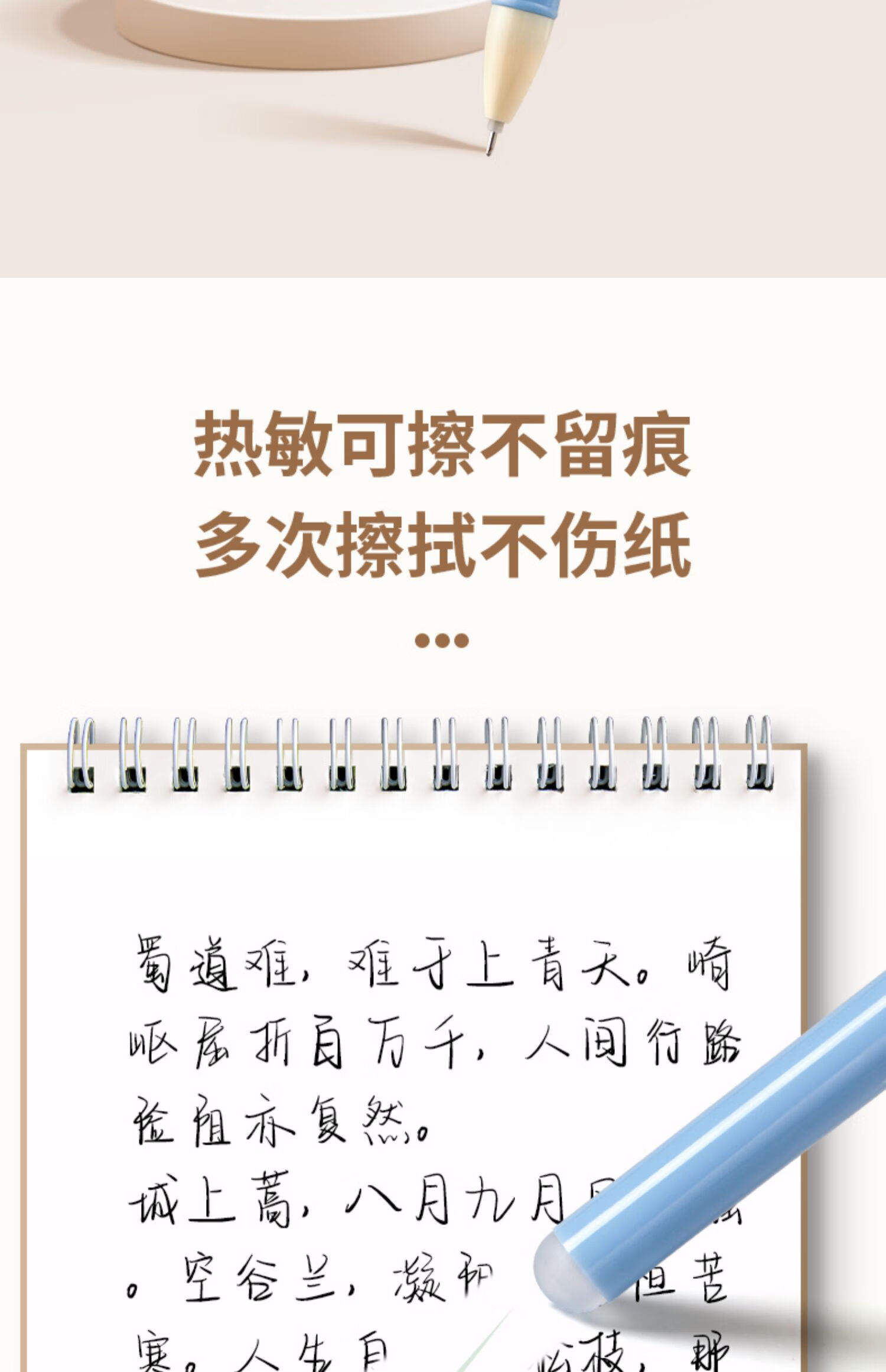 六品堂热敏可擦中性笔三年级专用0.5mm中性笔黑色男女孩高颜值ins易擦笔芯软胶笔握3-5年级学生文具 可擦中性笔-黑色*3支 0.5+mm