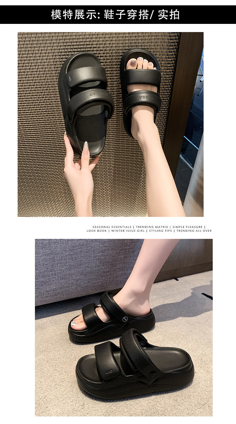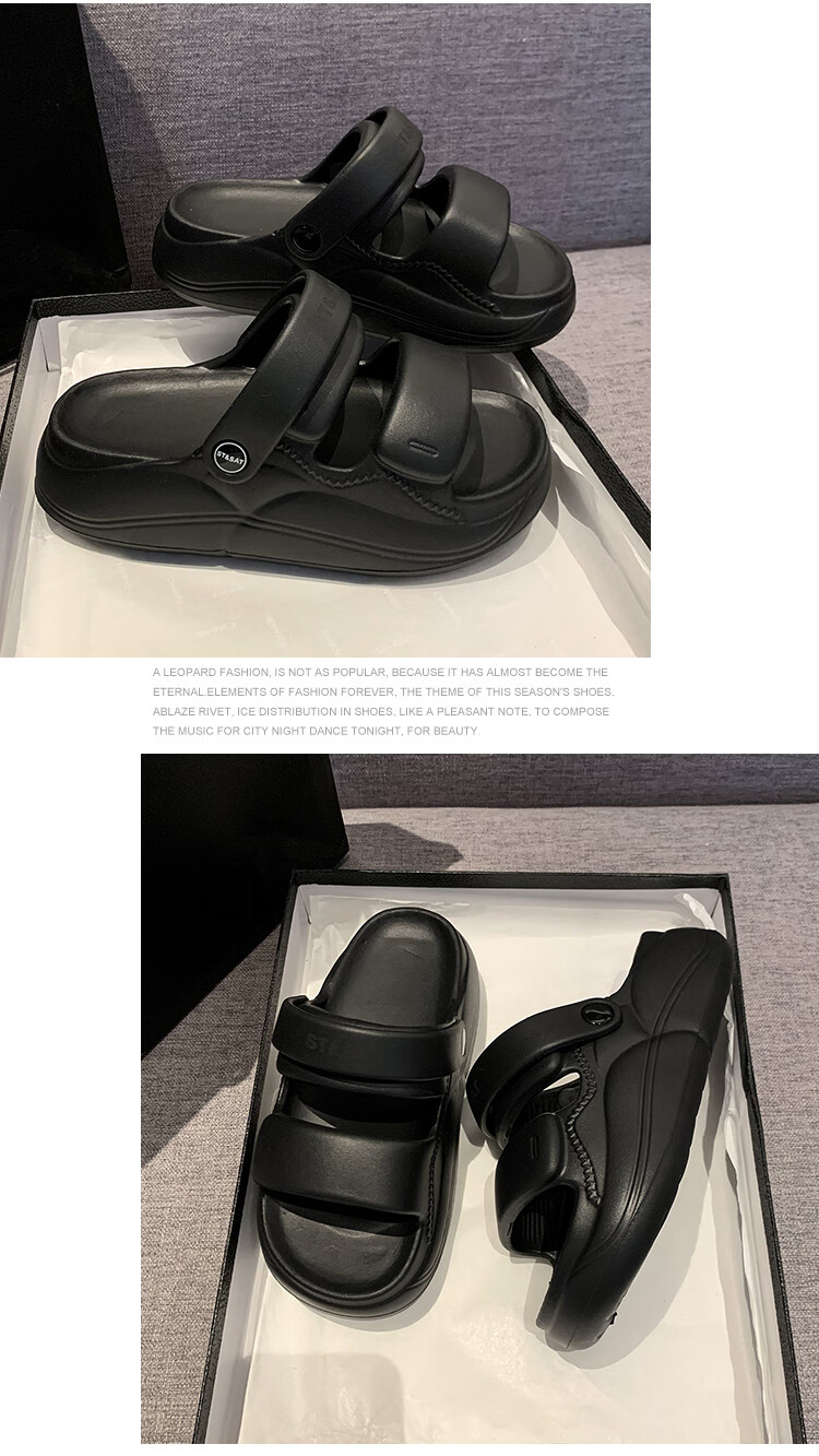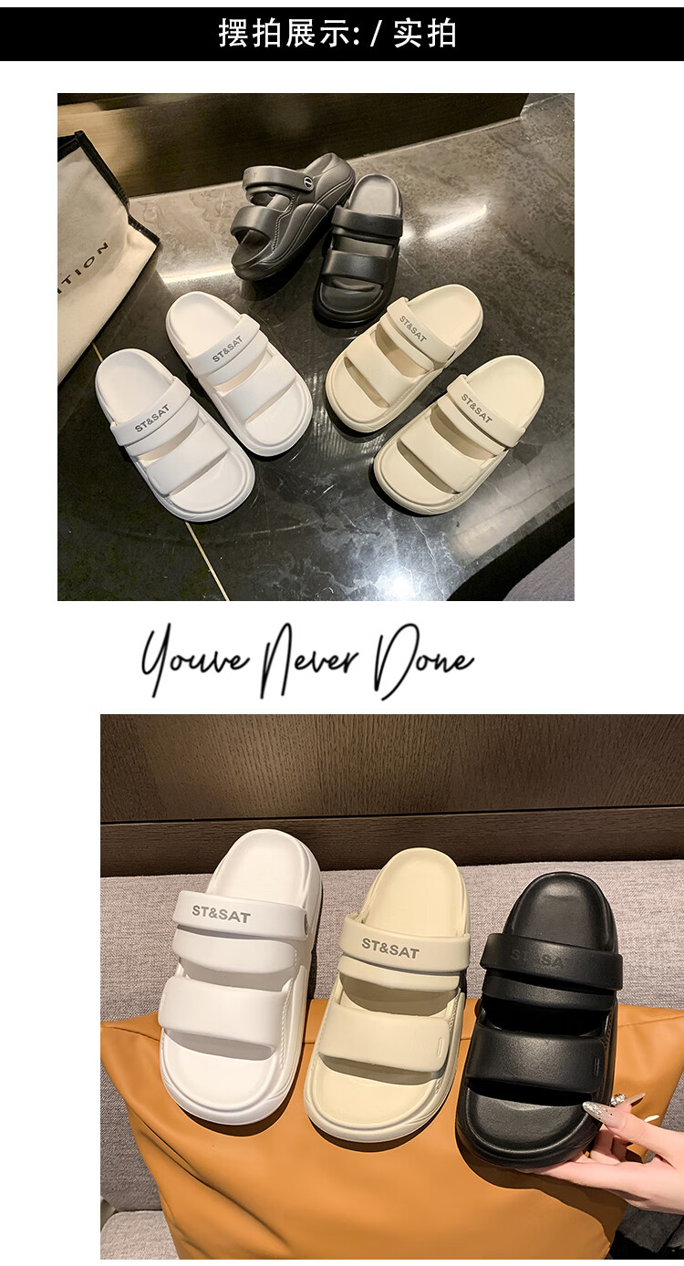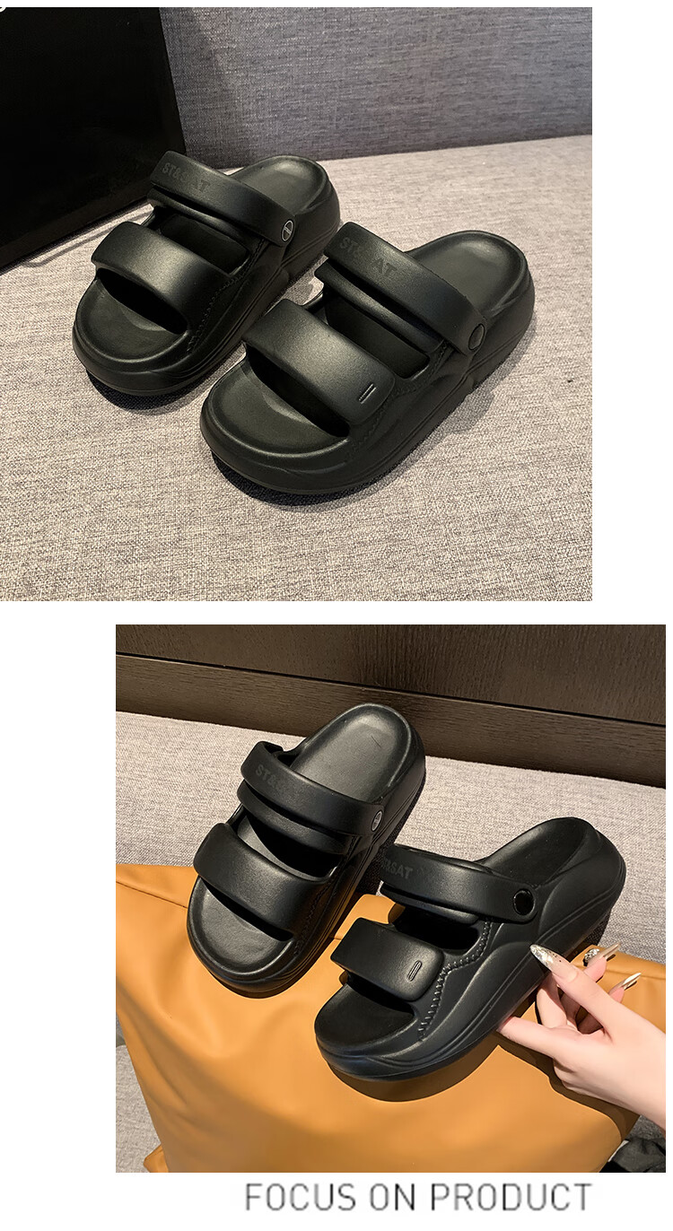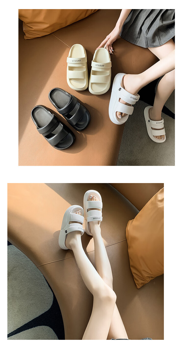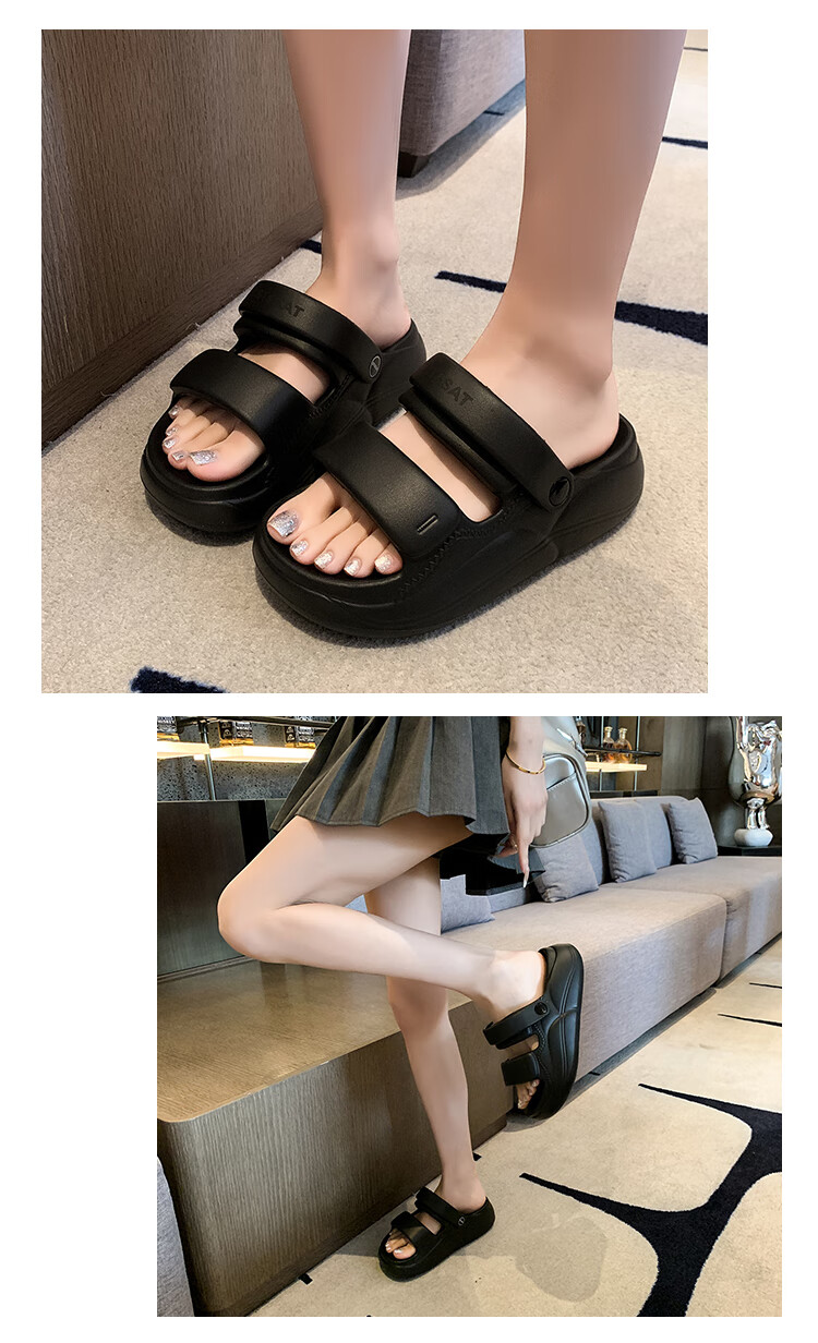 星期六(St&Sat)夏季舒适露趾拖鞋厚底增高凉拖鞋休闲女凉鞋家居拖鞋WKSSD2110F7A 黑色 36-37