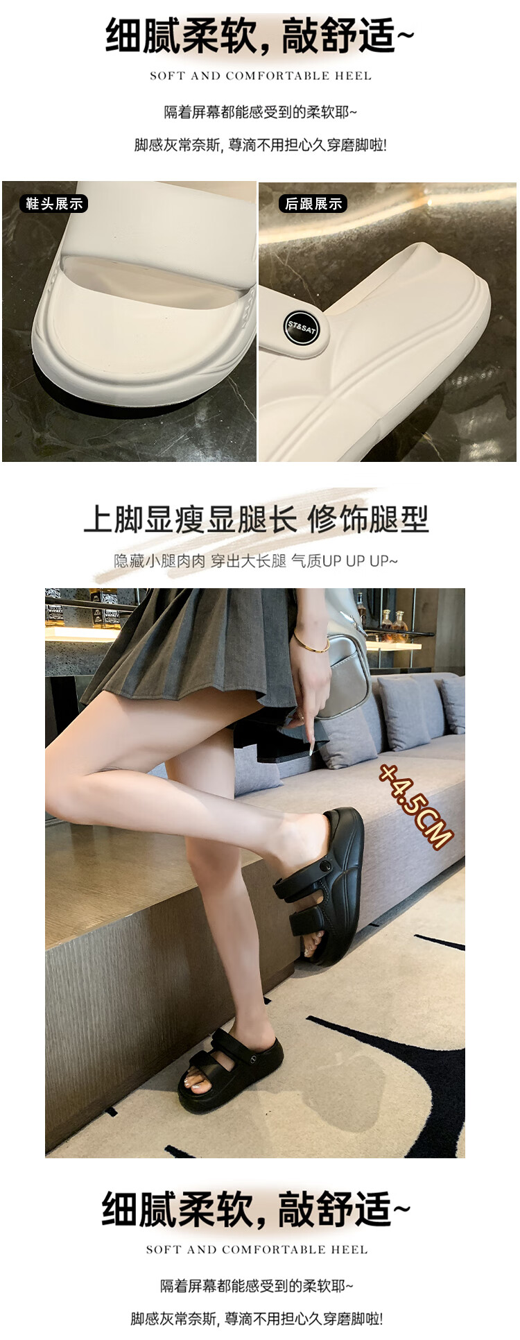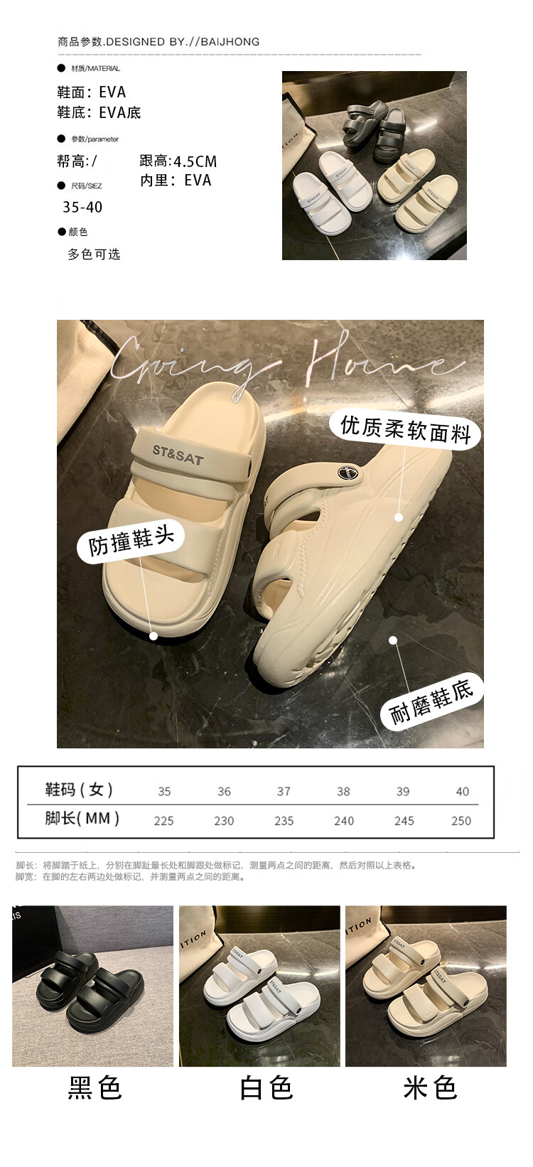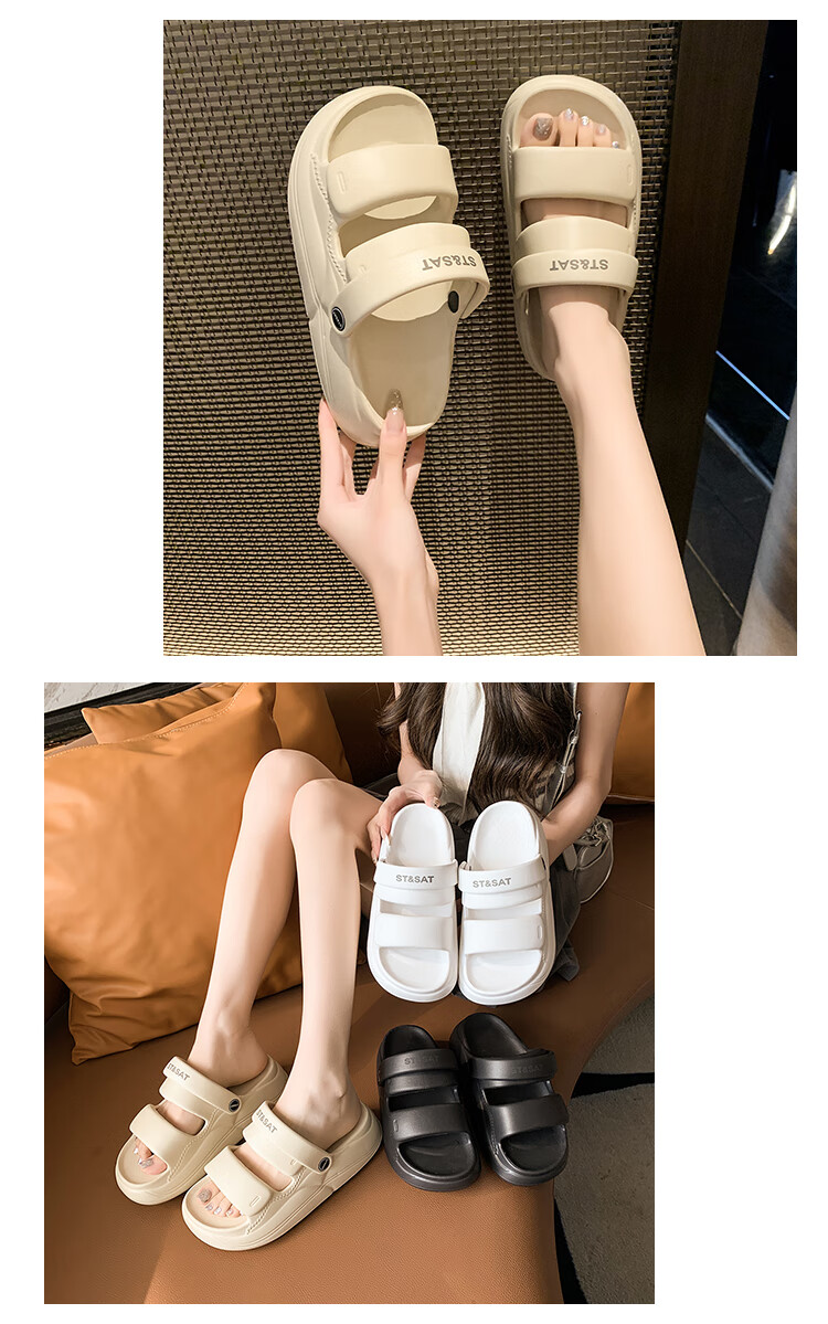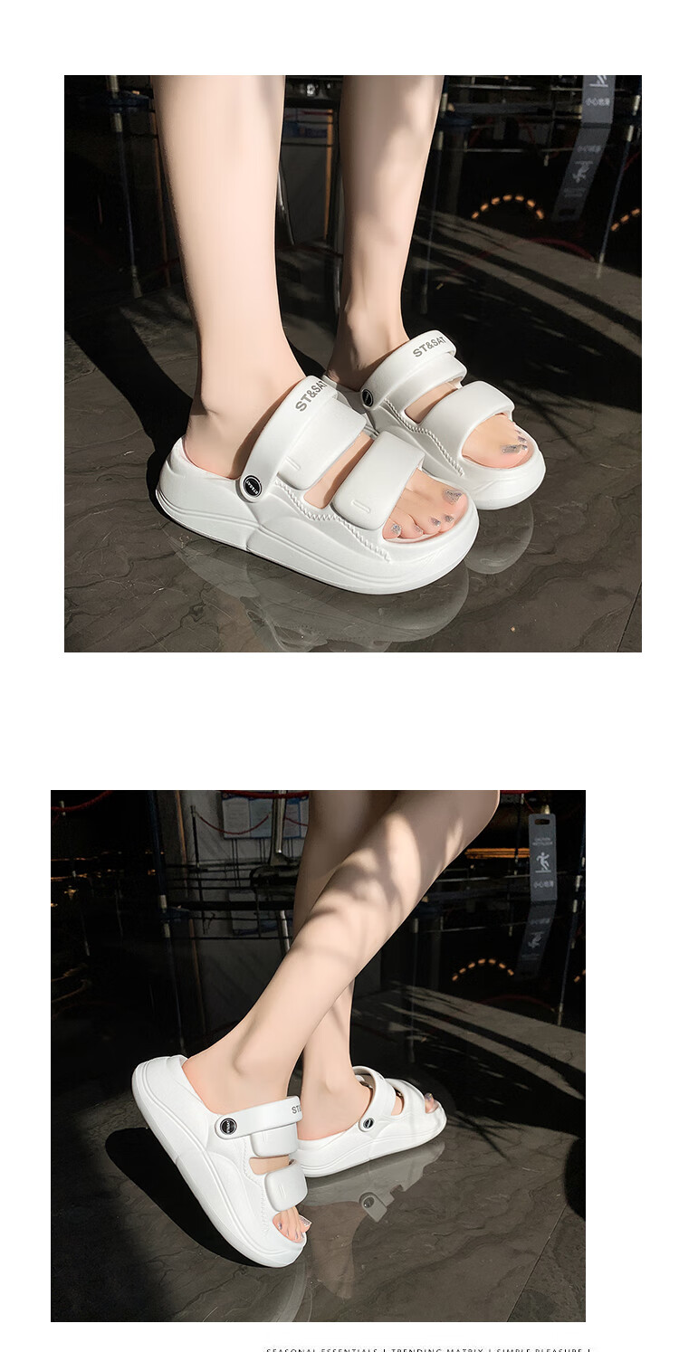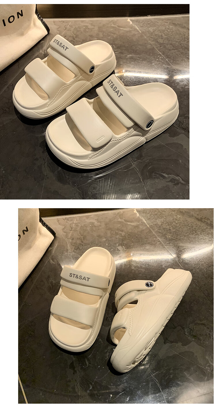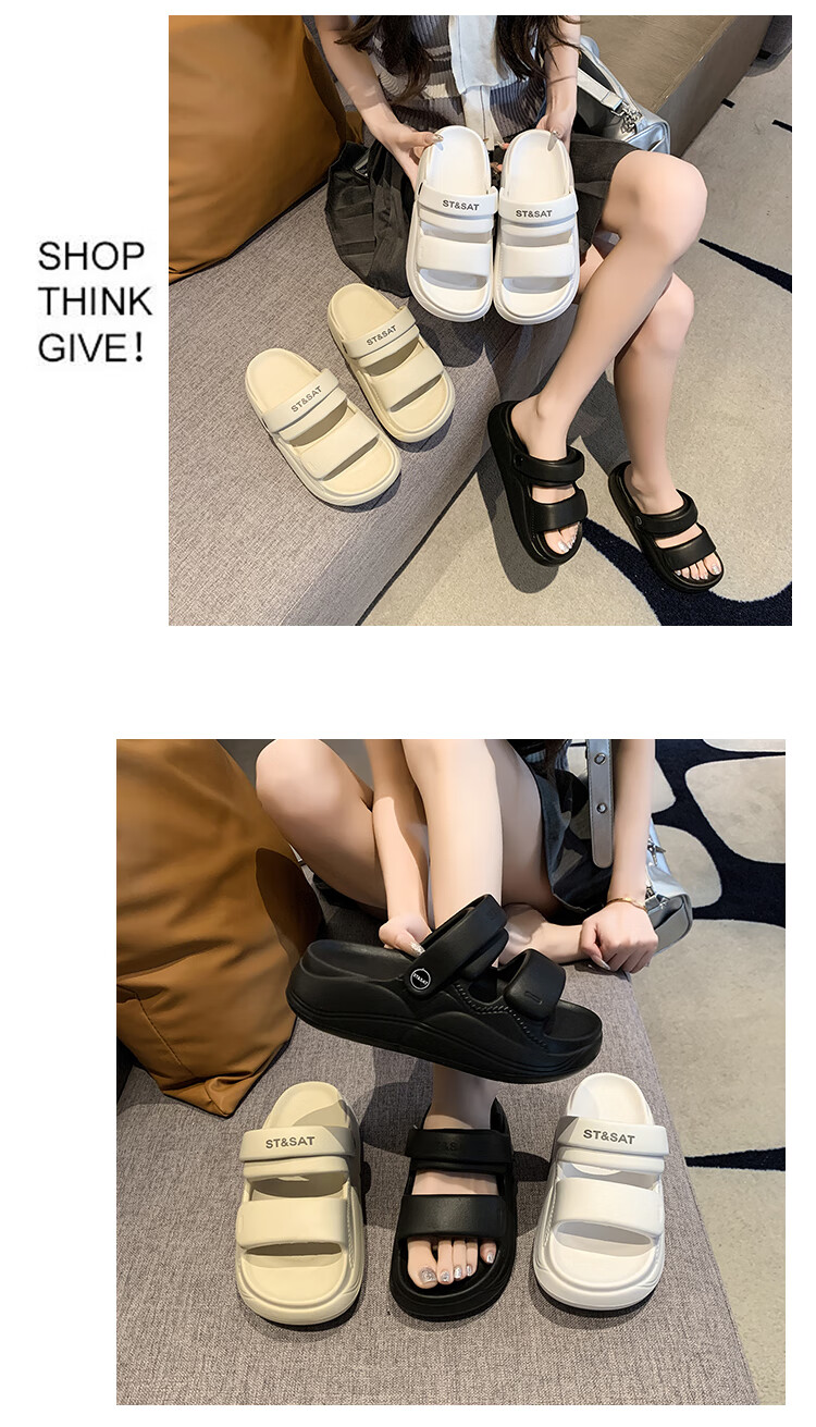 星期六(St&Sat)夏季舒适露趾拖鞋厚底增高凉拖鞋休闲女凉鞋家居拖鞋WKSSD2110F7A 黑色 36-37