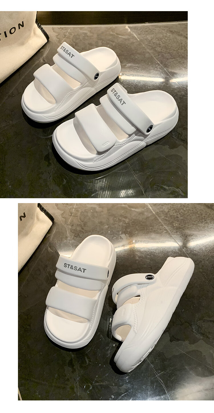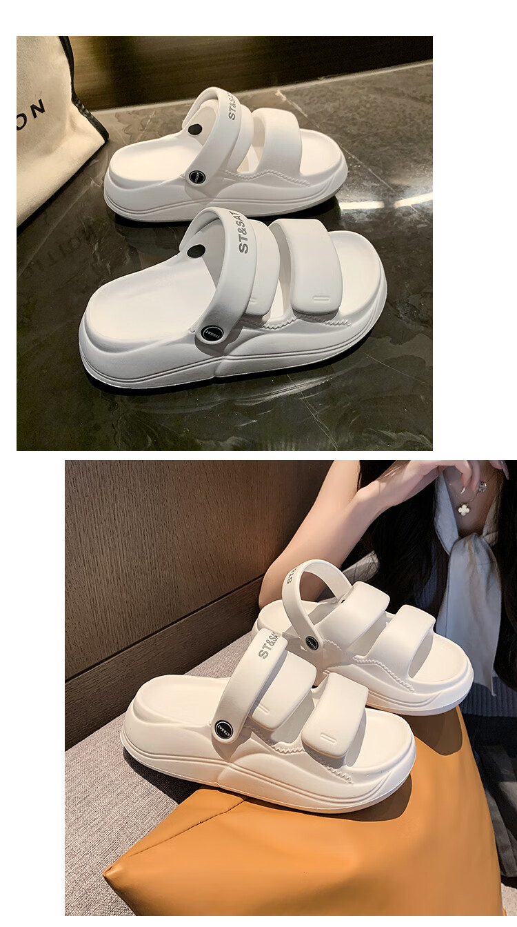 星期六【踩屎感软底】洞洞鞋厚底女鞋包头半拖沙滩凉鞋百搭凉拖鞋女外穿 白色 36