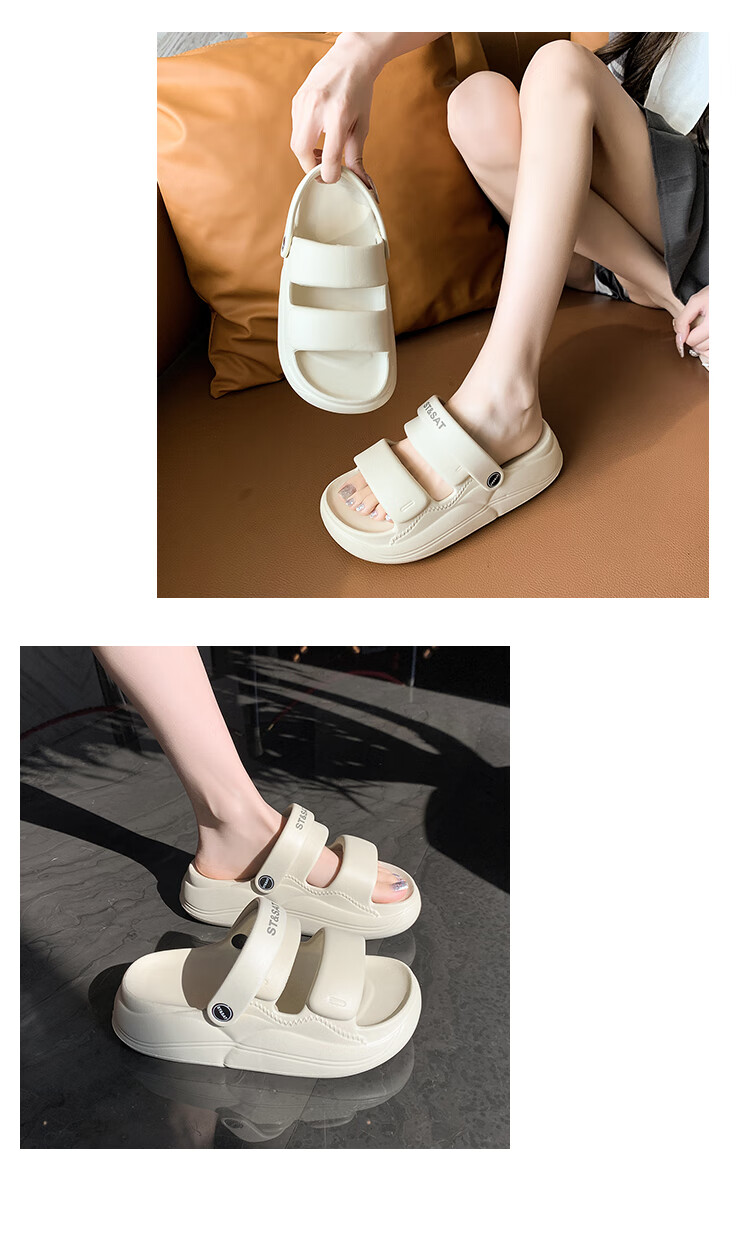 星期六【增高6公分】洞洞鞋踩屎感软底夏季2025新款舒适防滑百搭女凉鞋 乳白 37