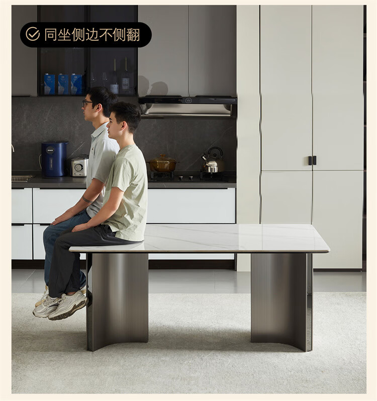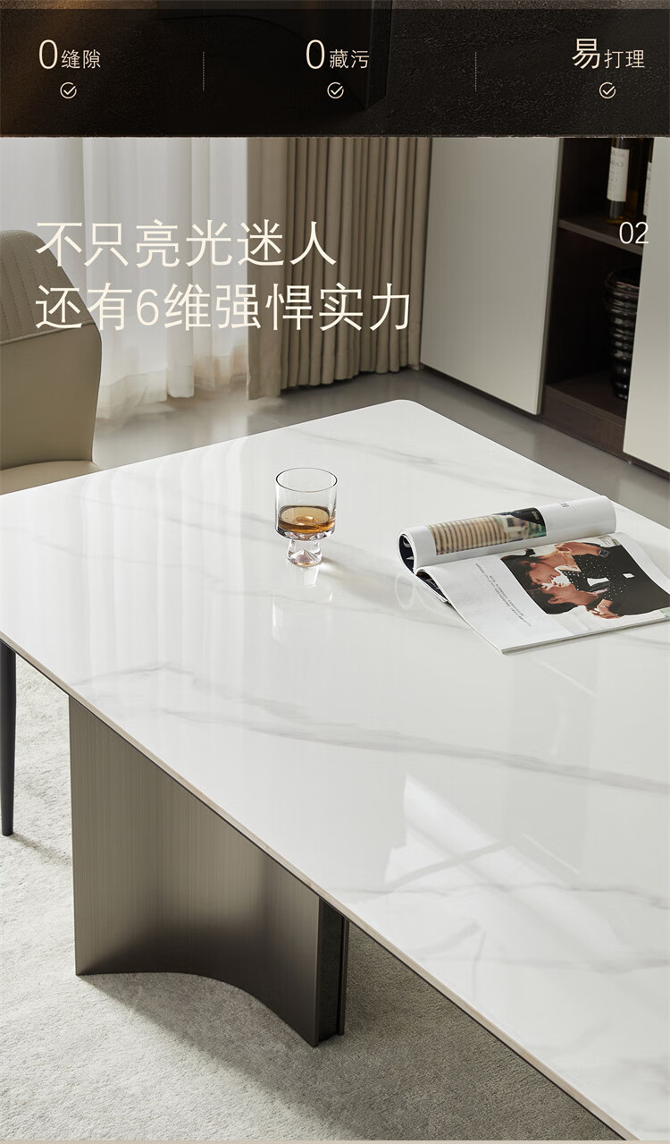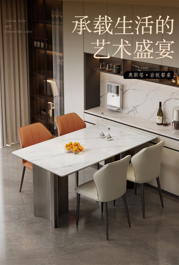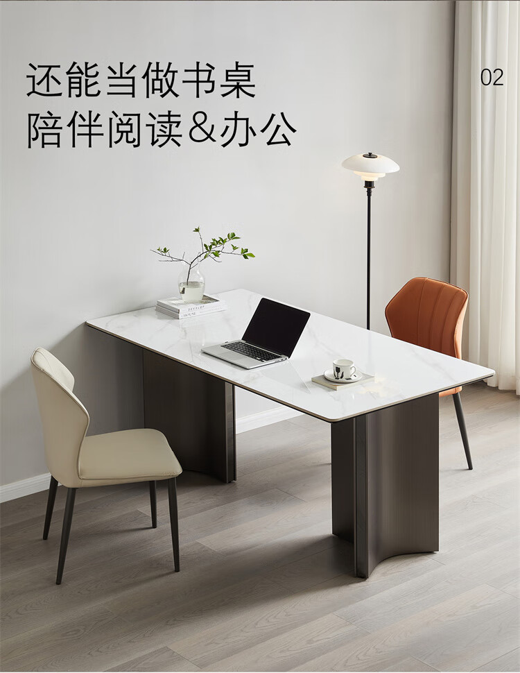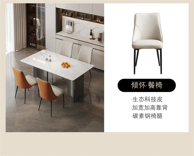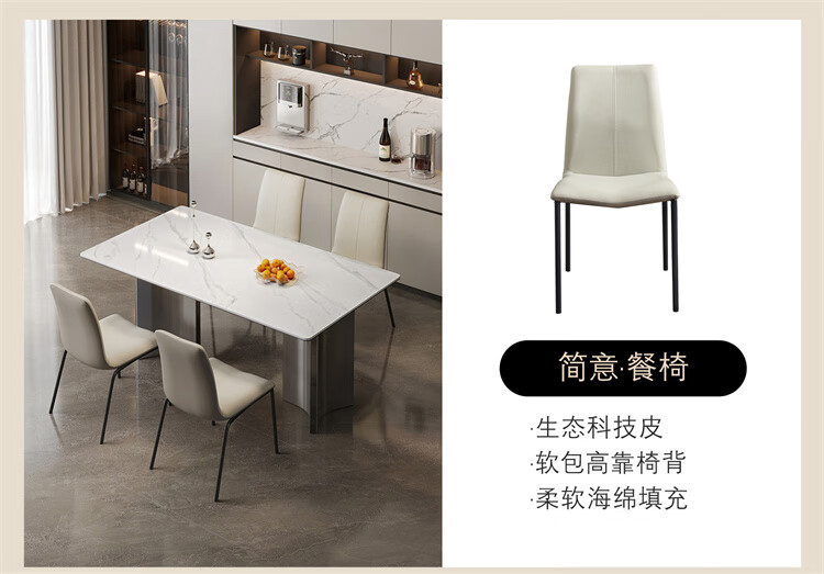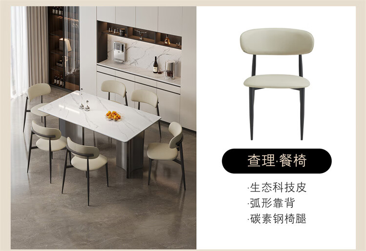 全友家居现代简约餐桌轻奢2025新款岩板台面餐桌椅套装一桌六椅吃饭桌 【岩板】1.4米餐桌+80餐椅(米色*4)