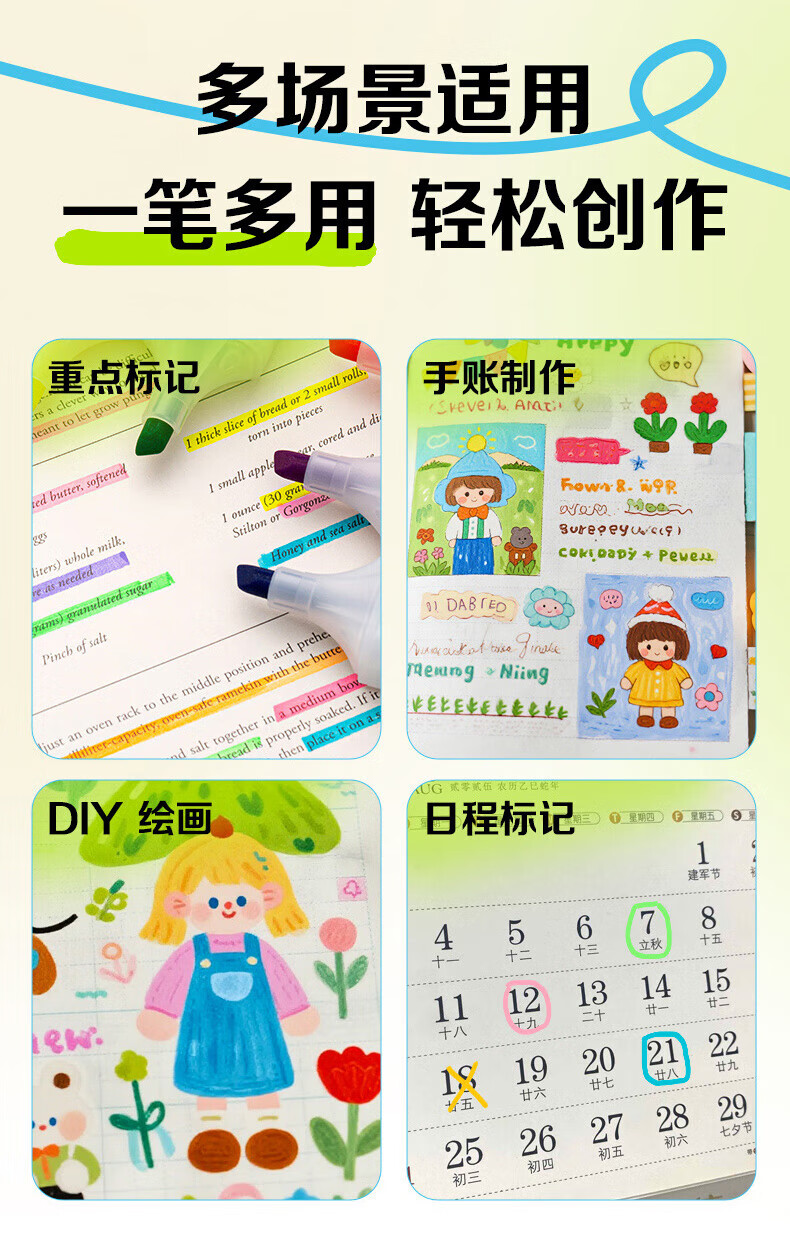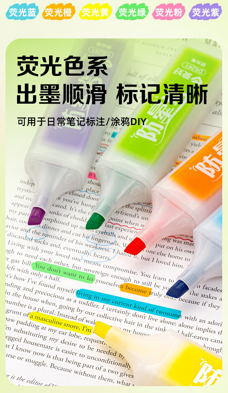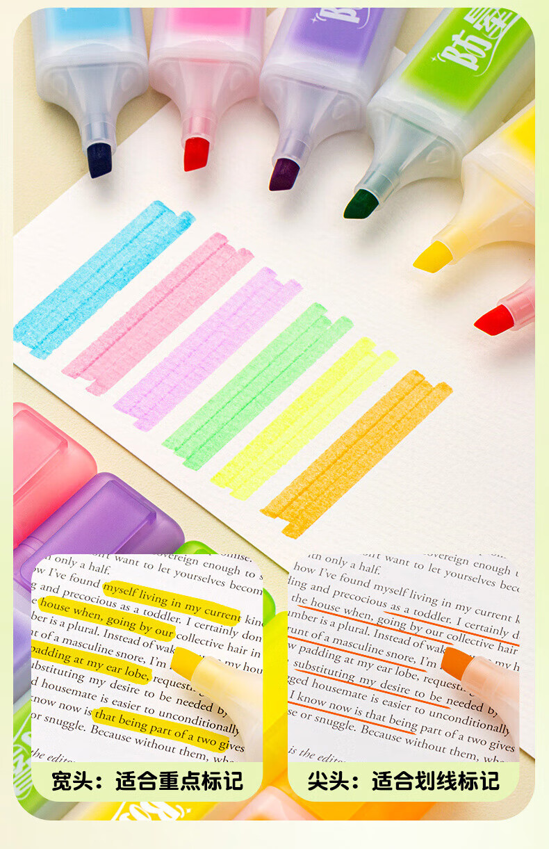 爱好荧光笔防晕染大容量彩色标记笔划重点笔做笔记彩色荧光笔 【大容量防晕染】6支