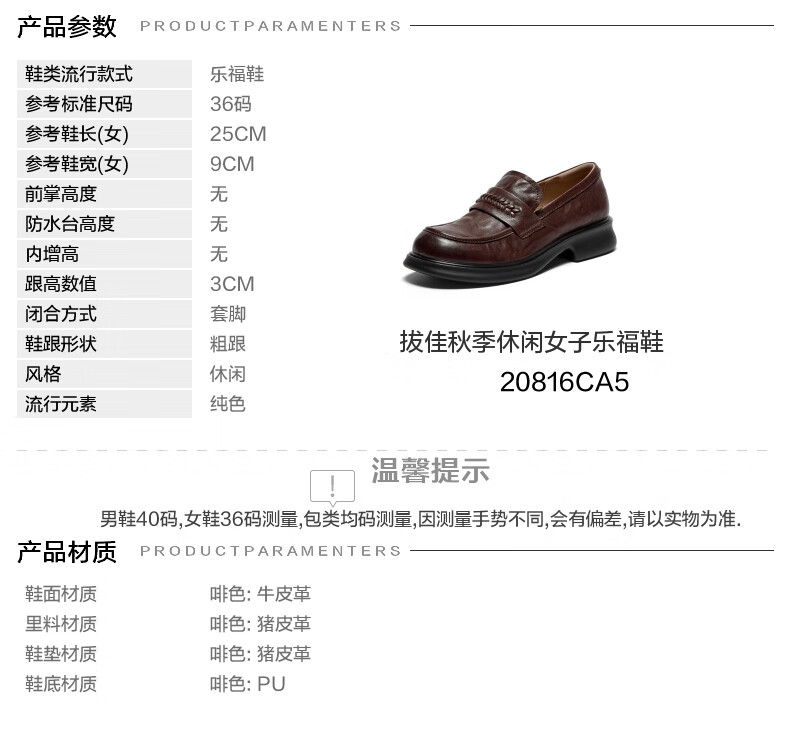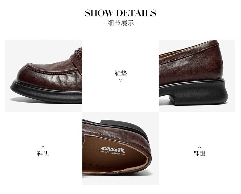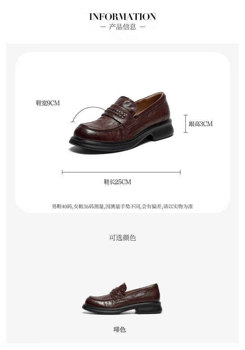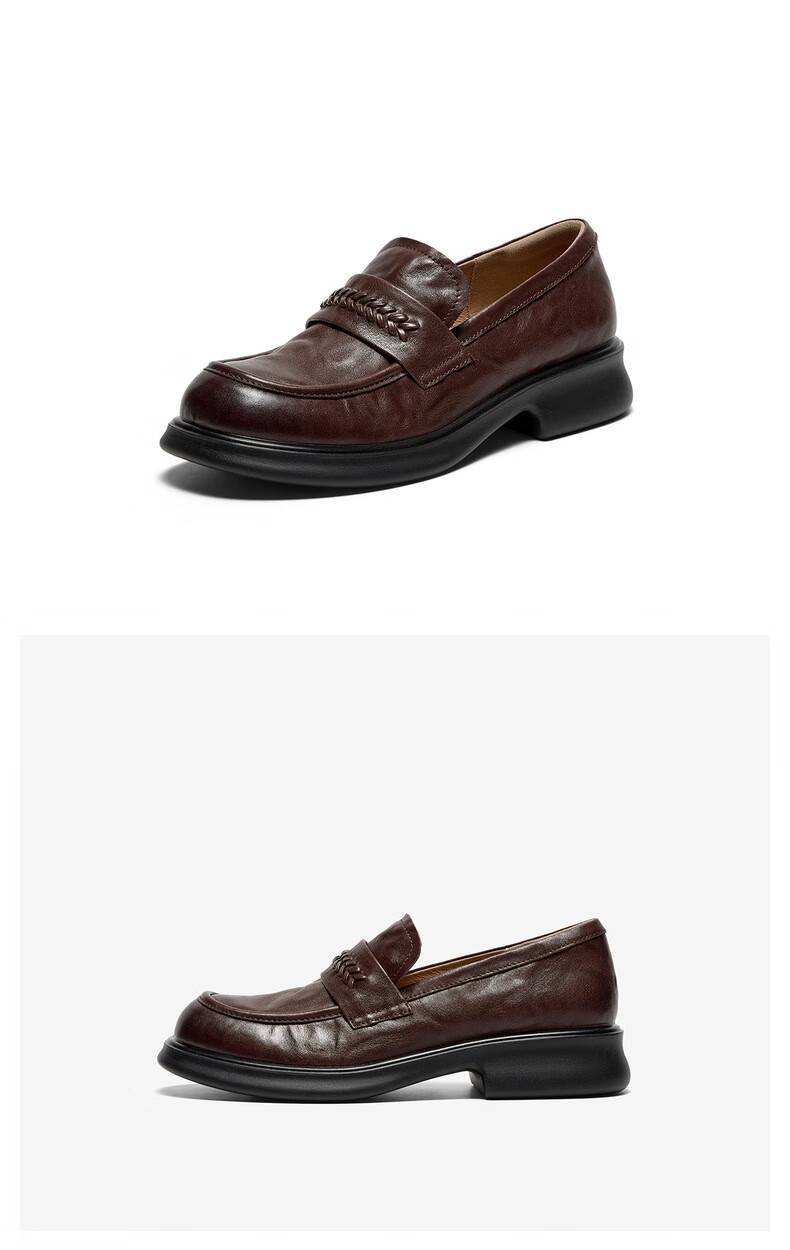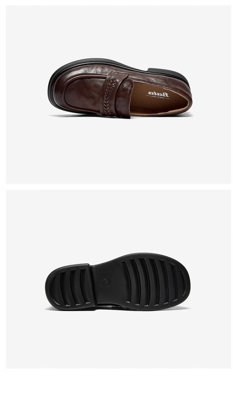 Bata乐福鞋女2025秋季商场新款牛皮纹理粗跟通勤一脚蹬20816CA5 啡色 38
