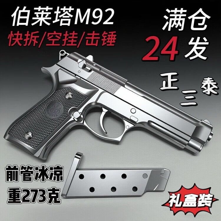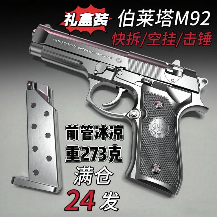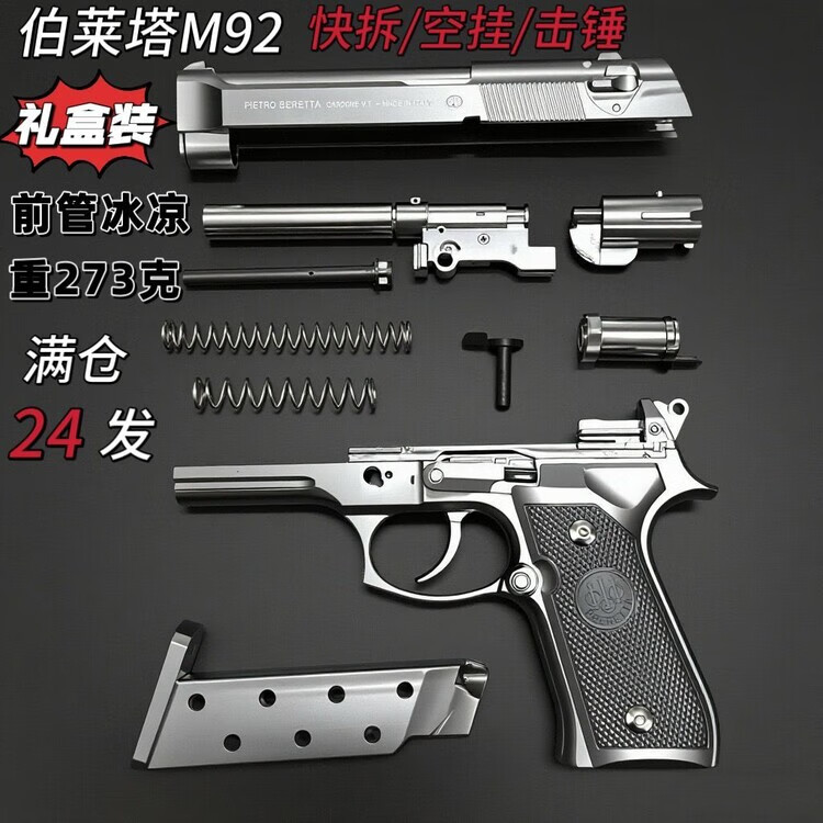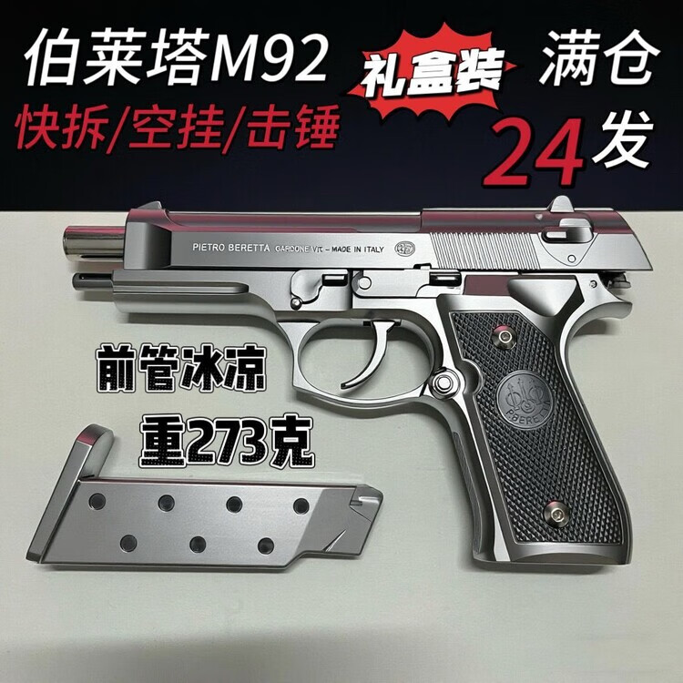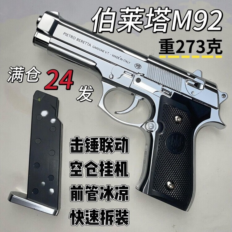 脘铼空挂柏莱塔三代M92快拆镜面银玩具童年回忆下供6模型 【快拆/空挂】伯莱塔M92F墨色(五百弹) 官方标配(一弹夹)