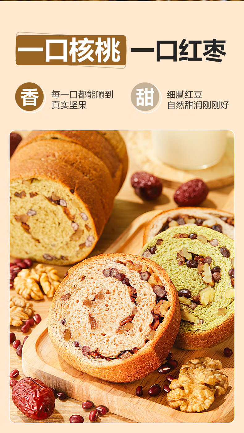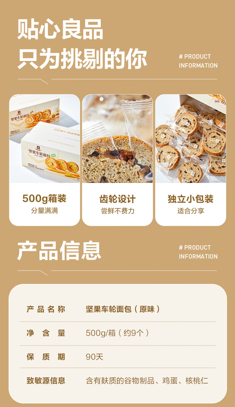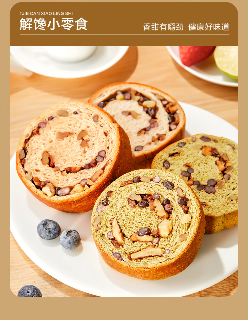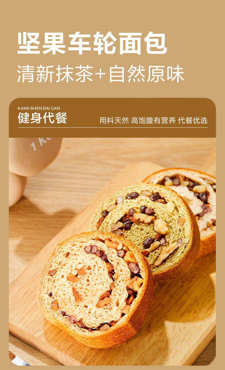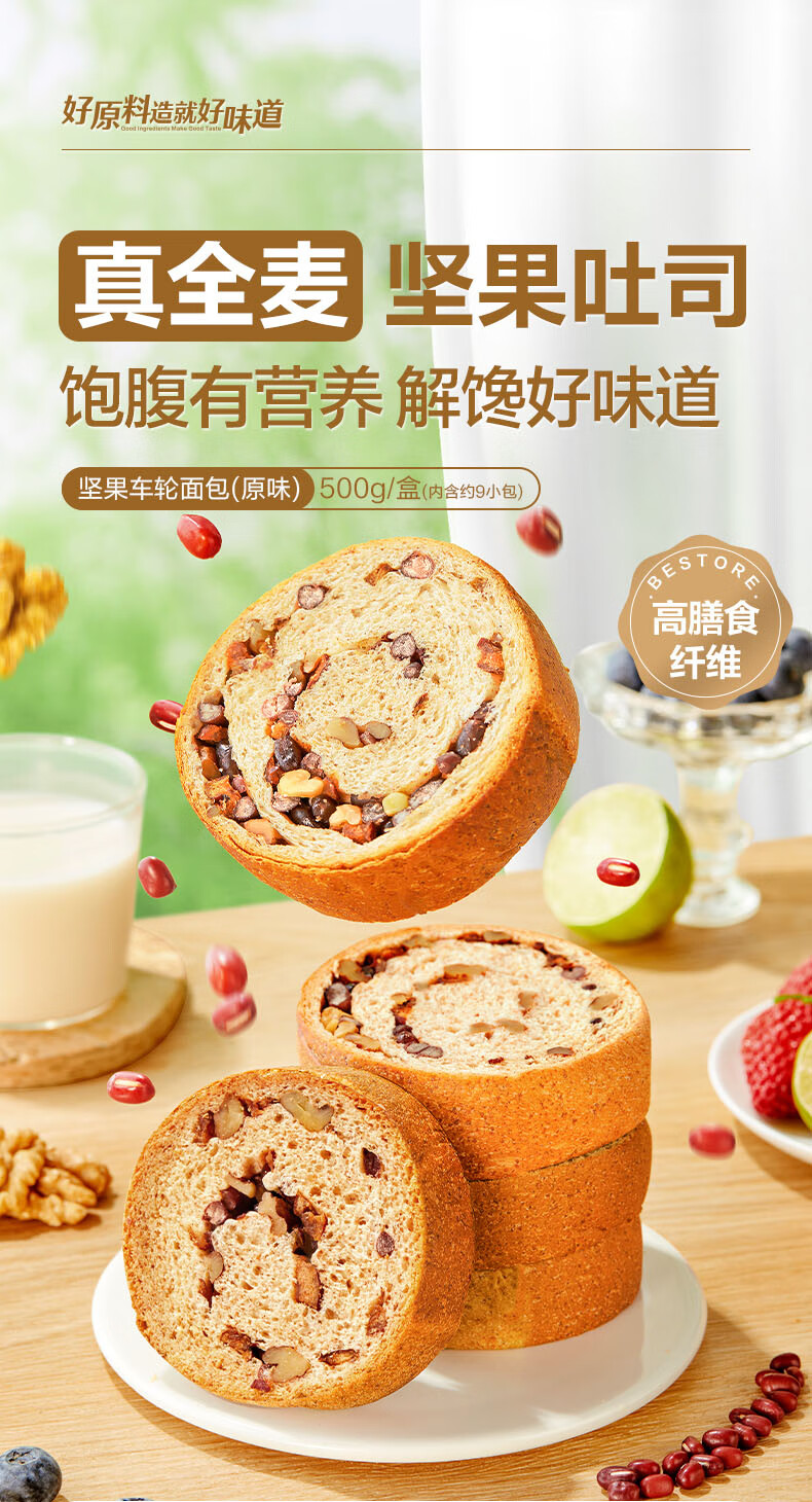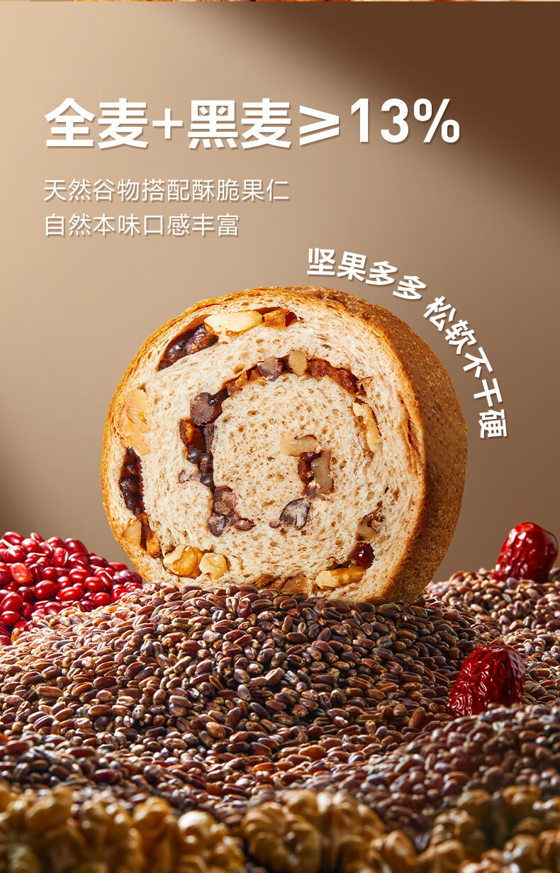 良品铺子全麦黑麦坚果车轮面包早餐大列巴面包吐司欧包代餐500g(原味)