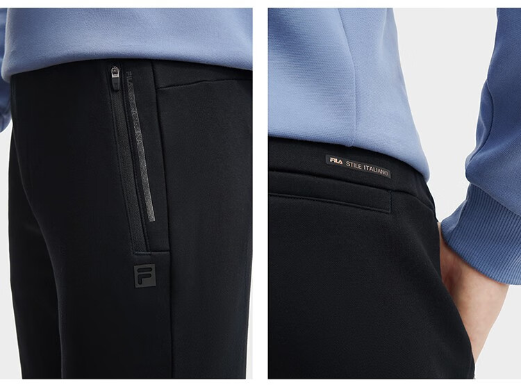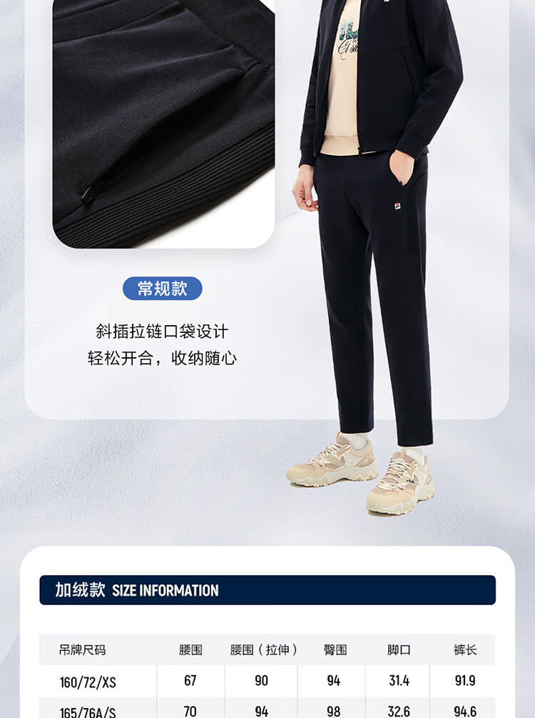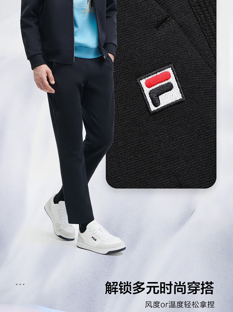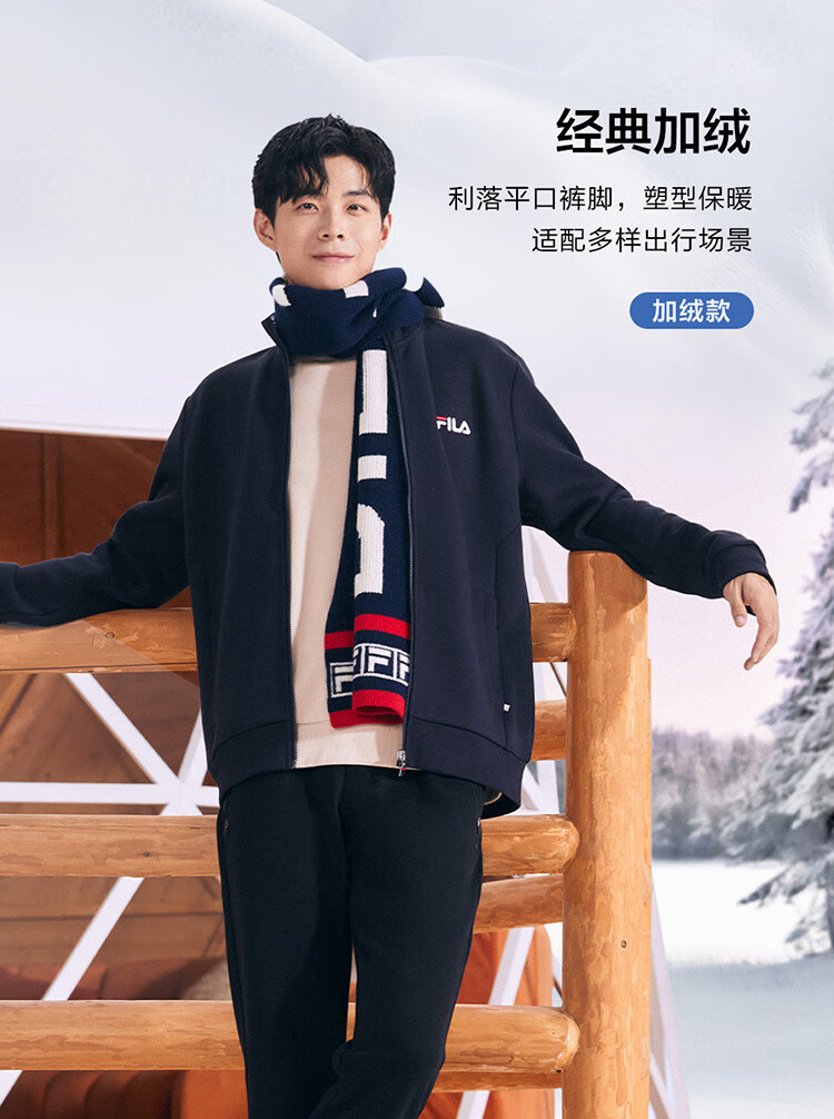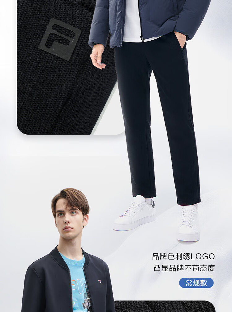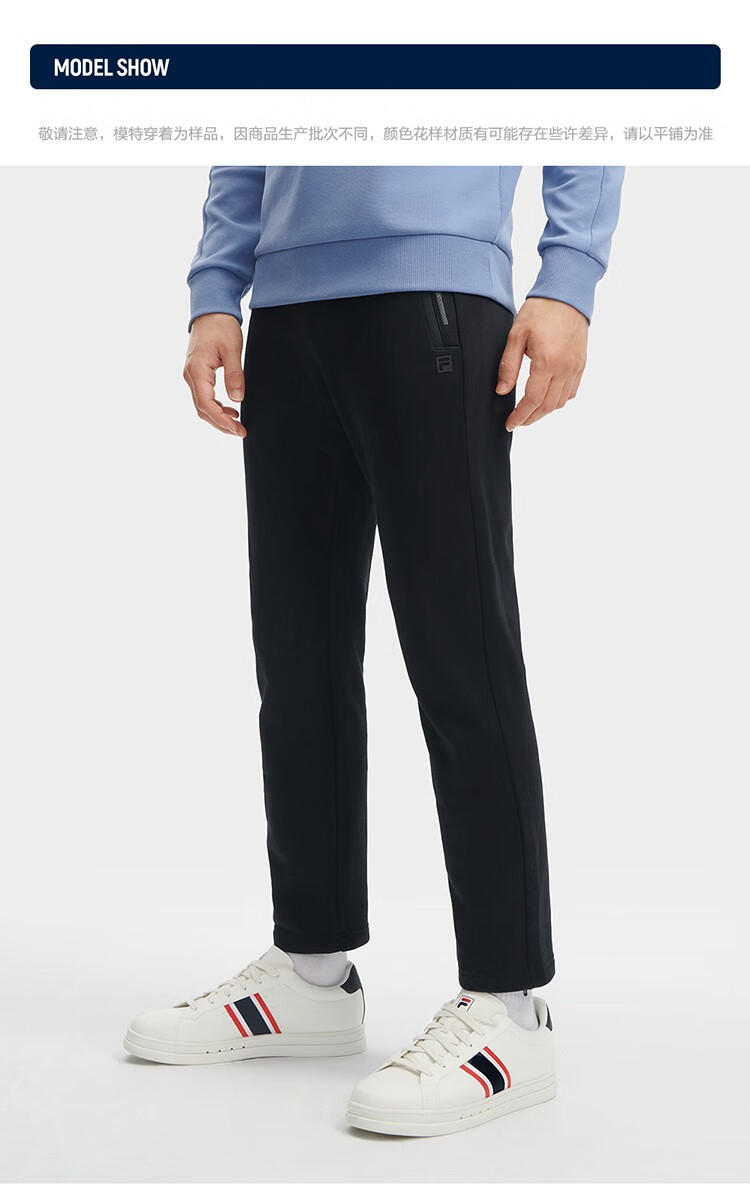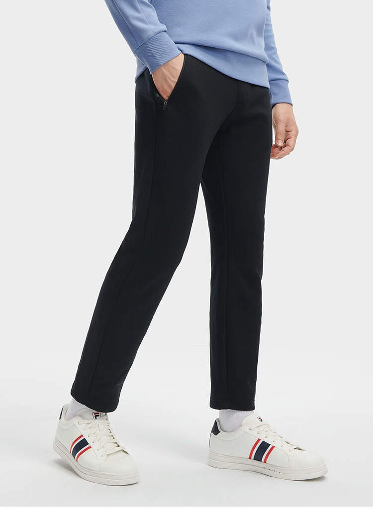 斐乐(FILA)官方冬季新款男子加绒保暖长裤针织直筒运动裤子百搭通勤休闲长裤 【加绒版】正黑色-BK L 175/84A